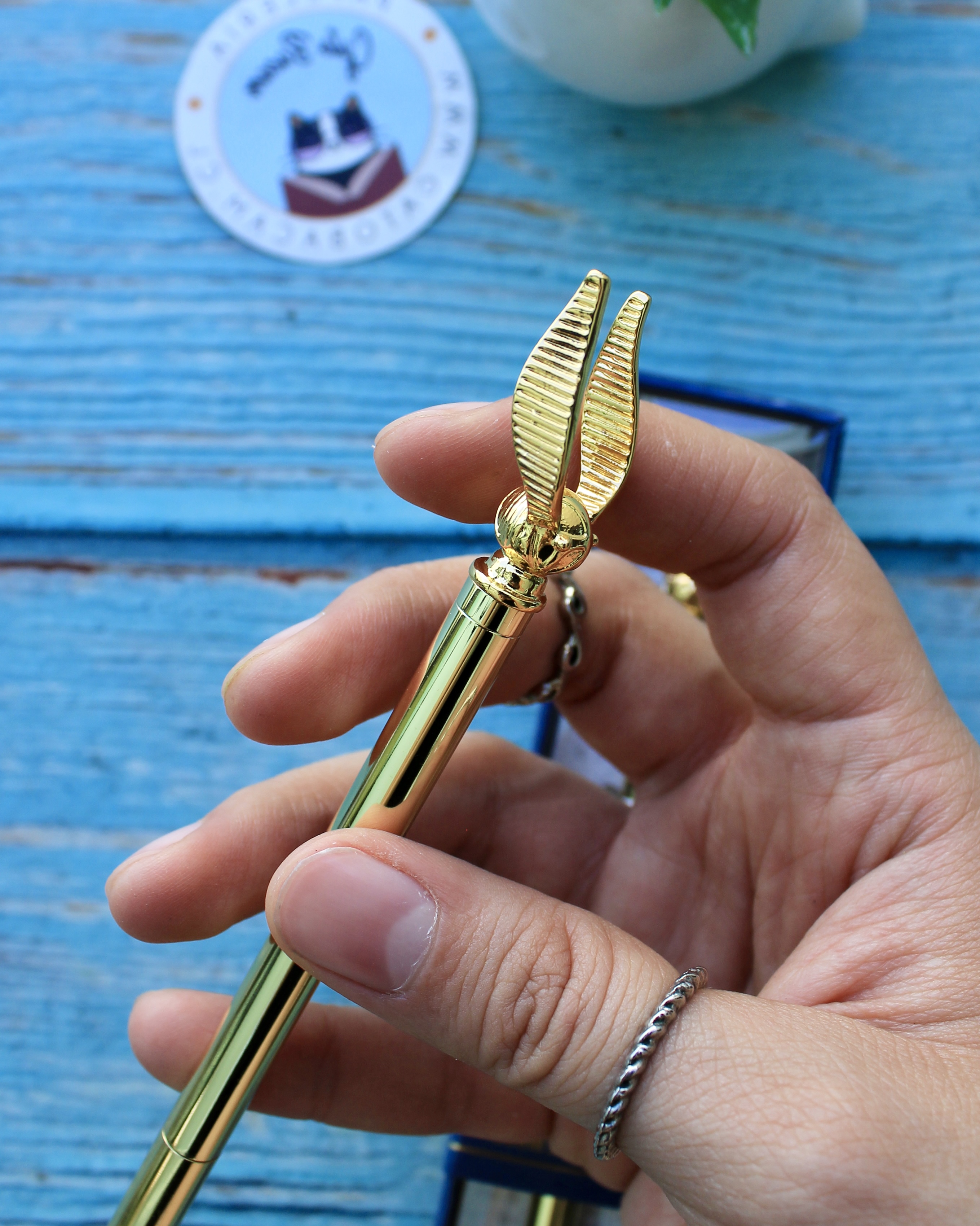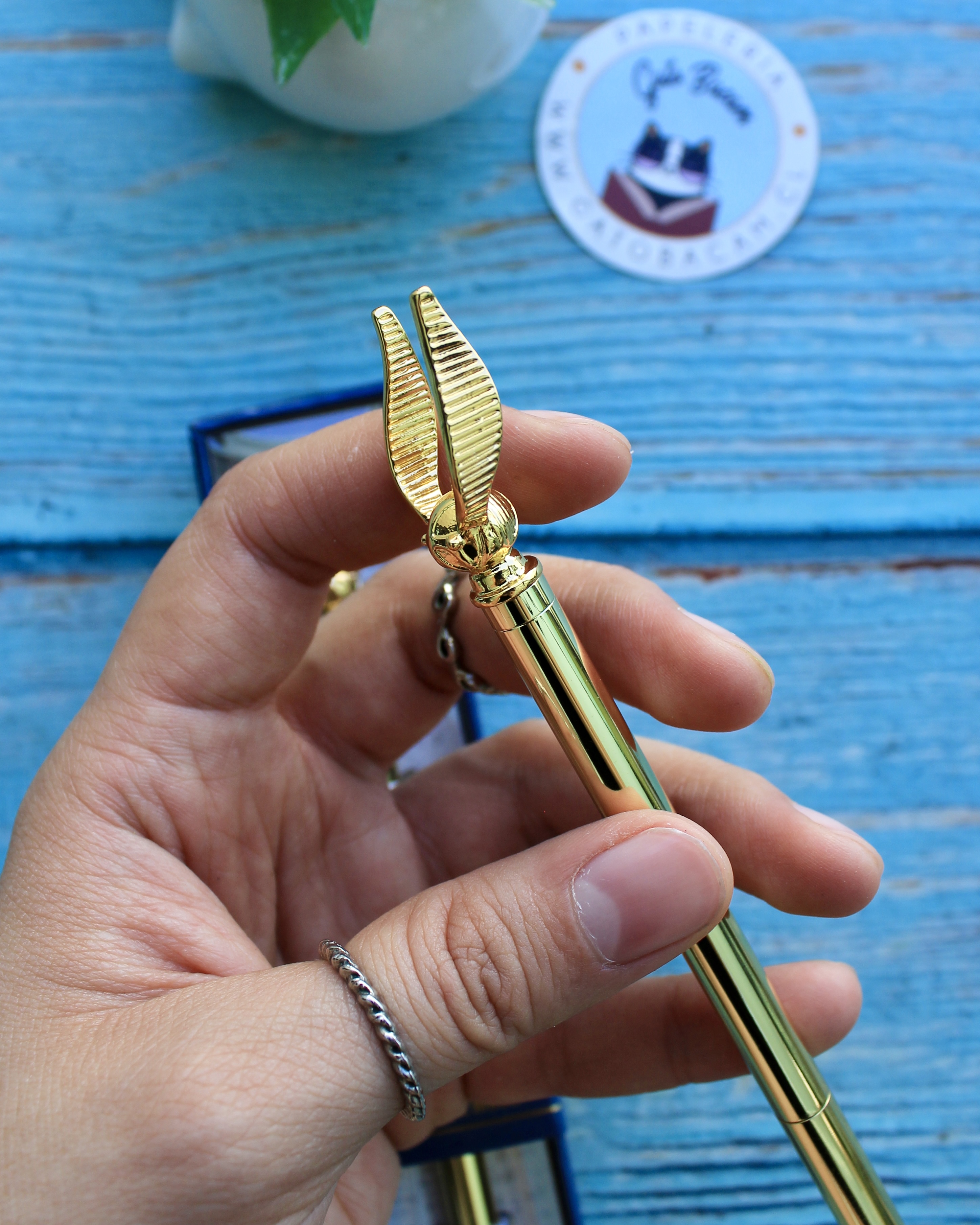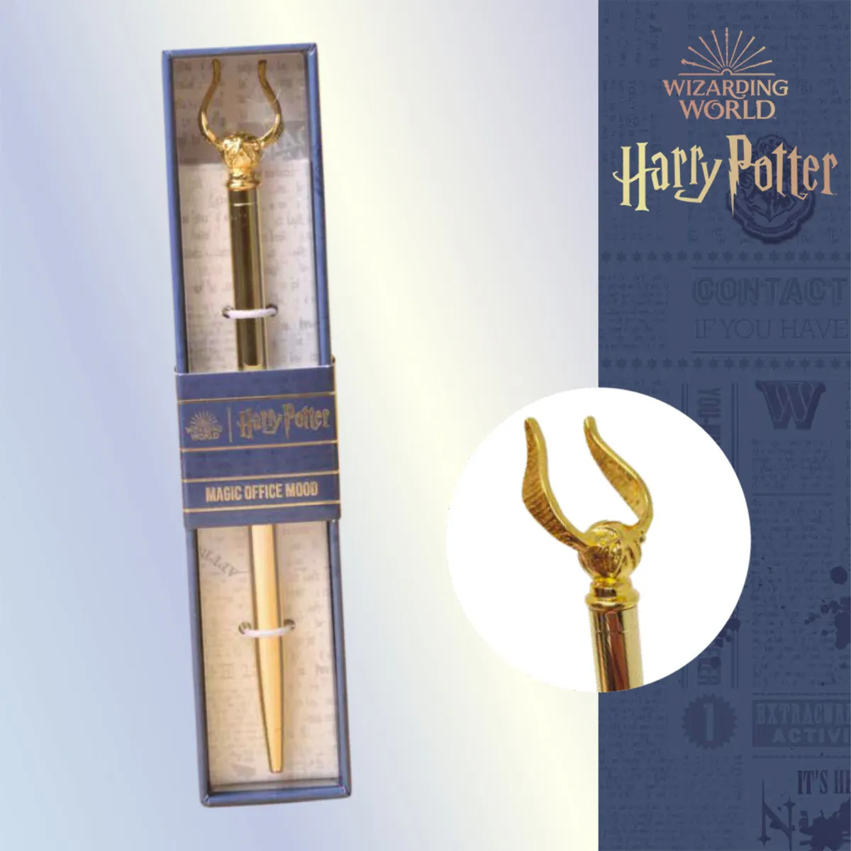 Bolígrafo temático Harry PotterColor de tinta: AzulCuerpo metálico dorado