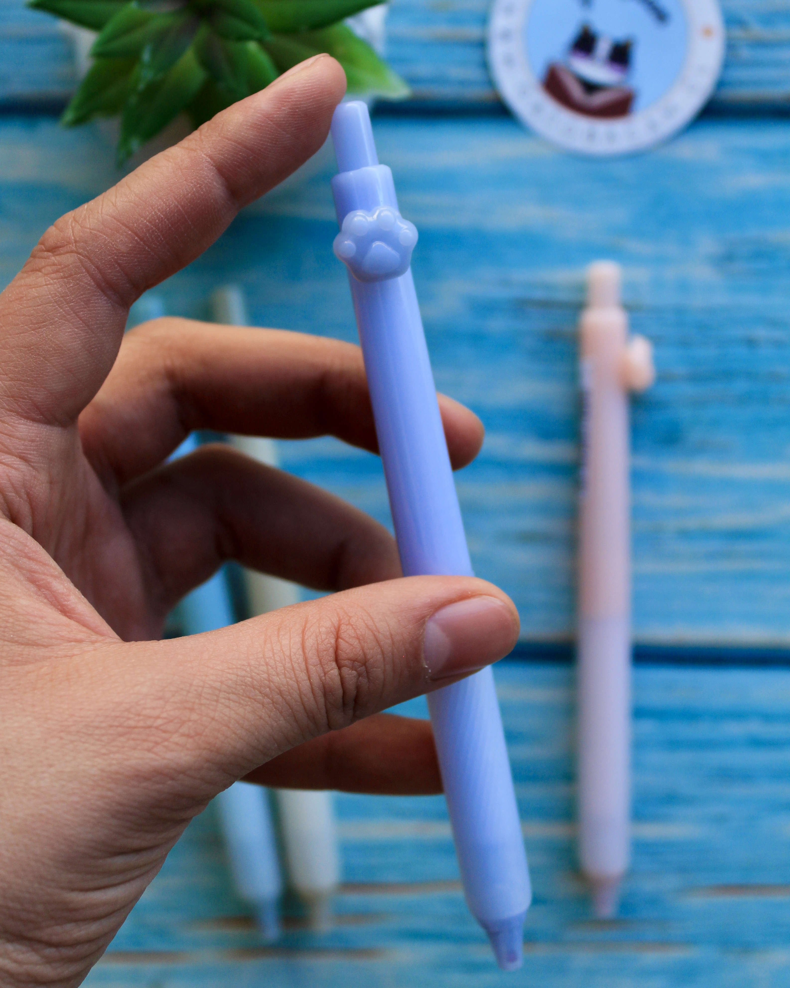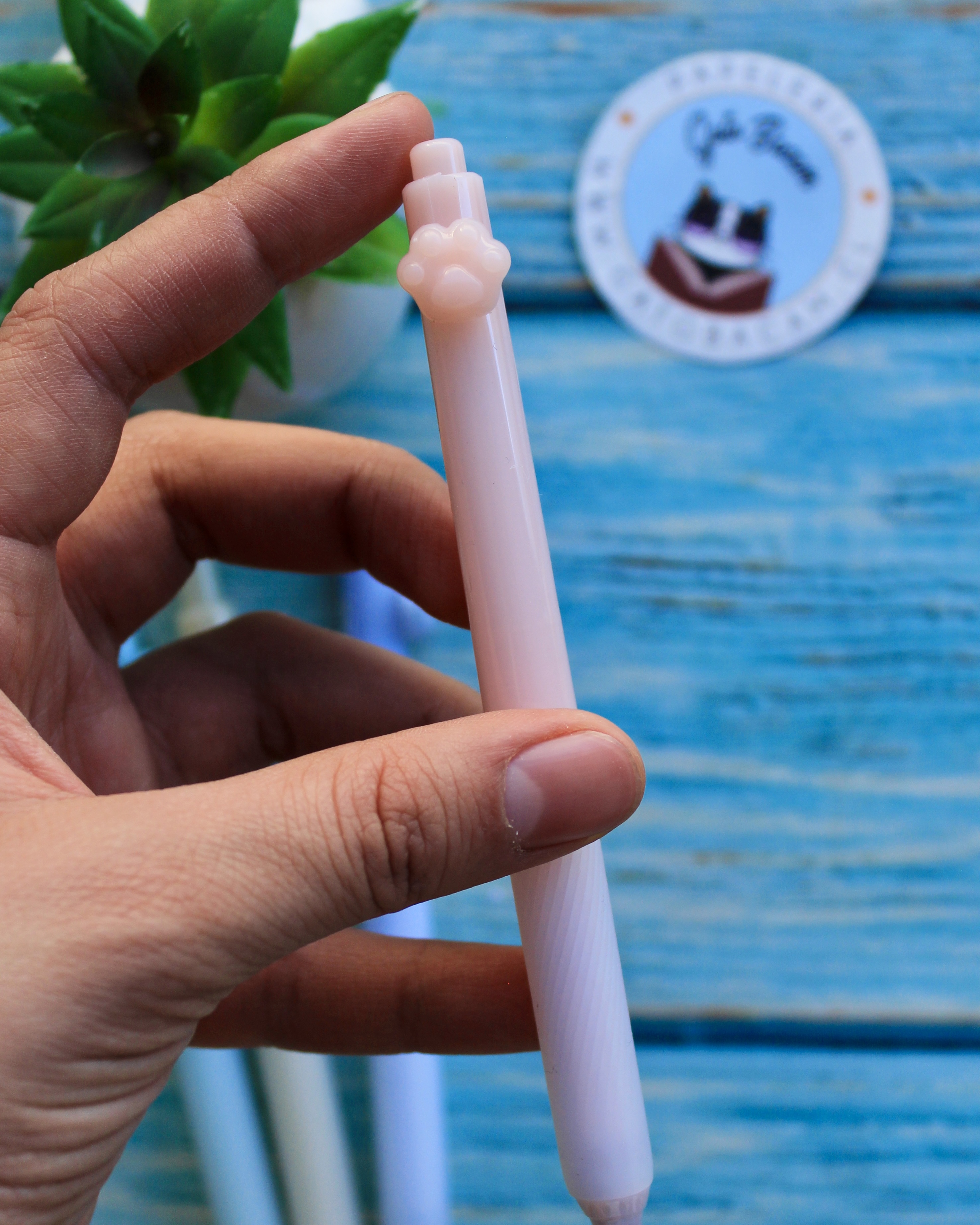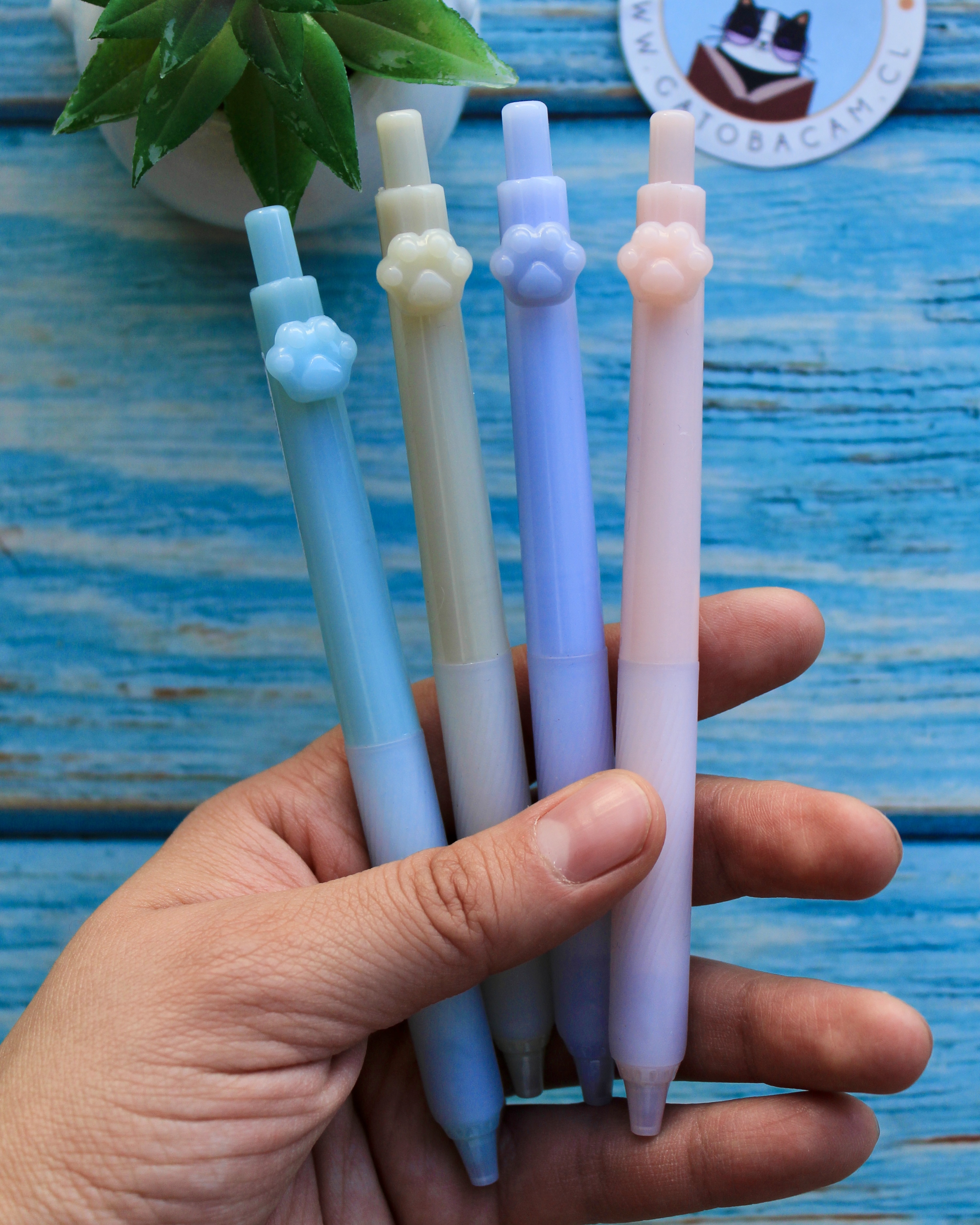 Si te gusta la escritura fina, este es el boligrafo que necesitas, tinta negra, retractil y con un grip de goma que facilita la escritura en un bello diseño en colores pasteles y patita de gato