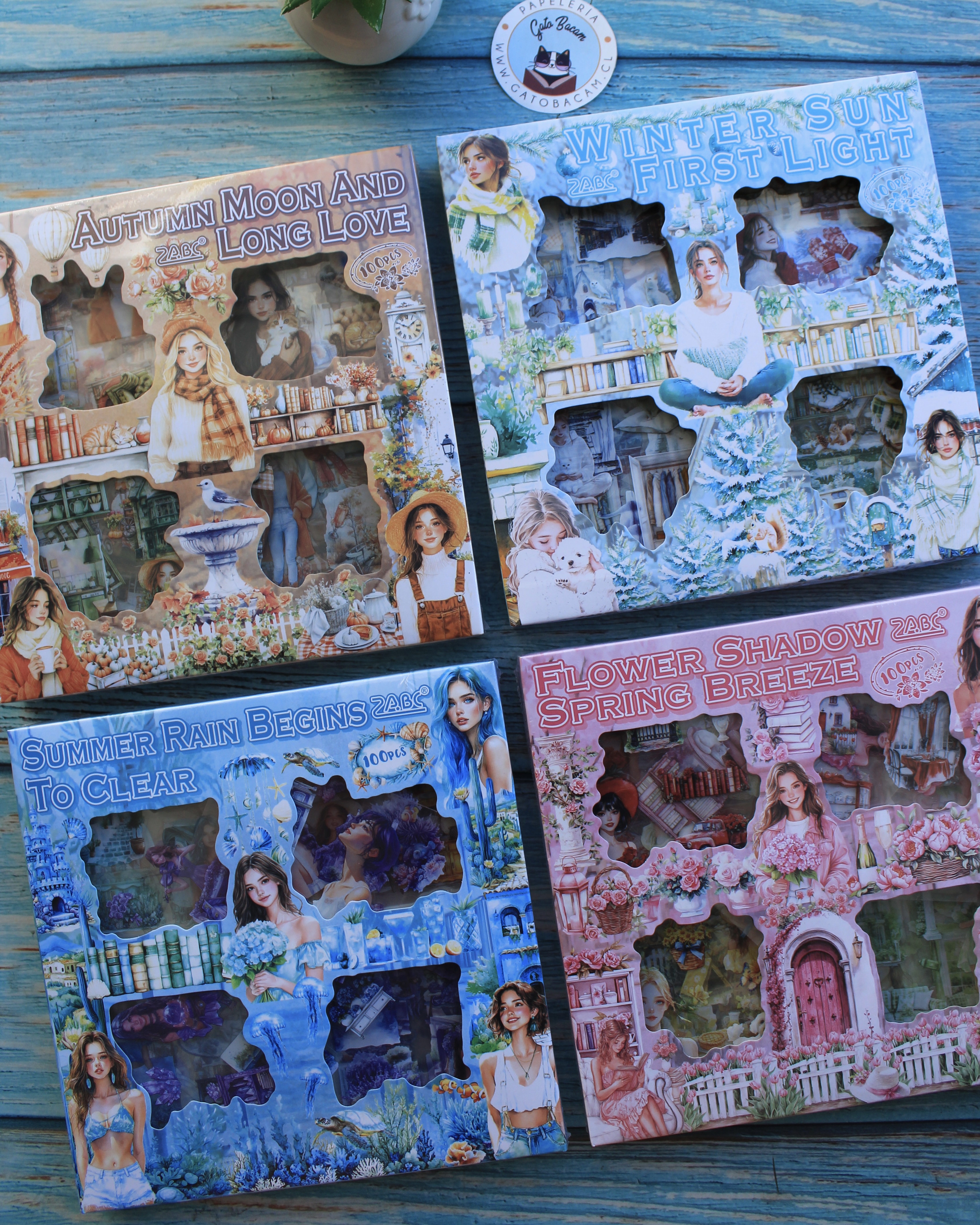Caja 100 Laminas de Stickers diseño Estaciones del Año