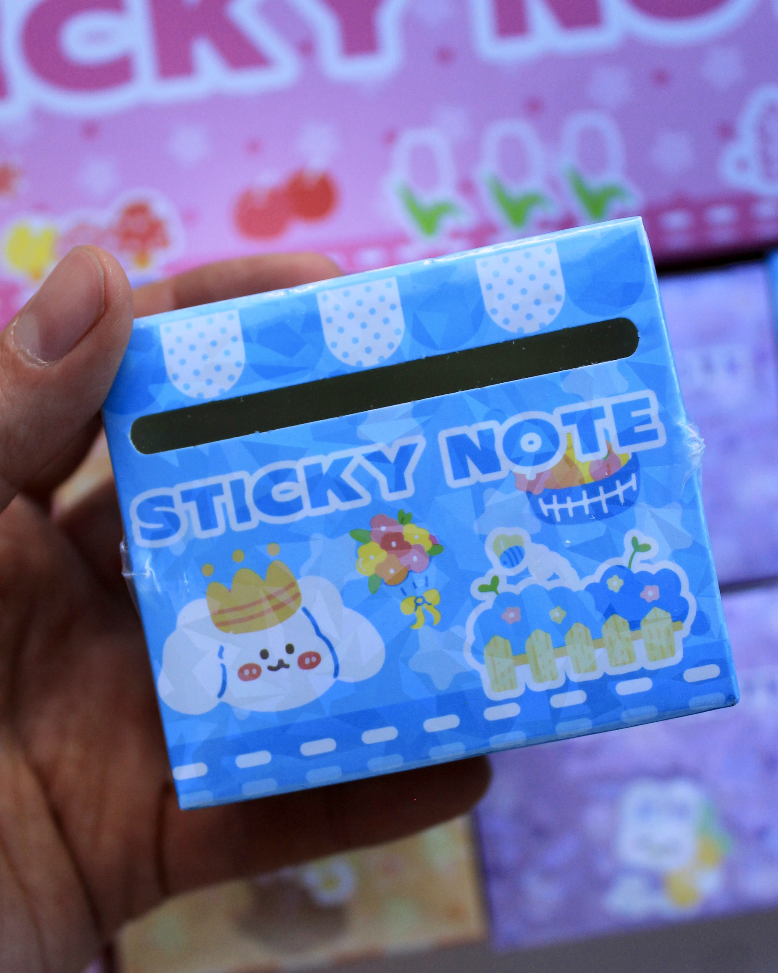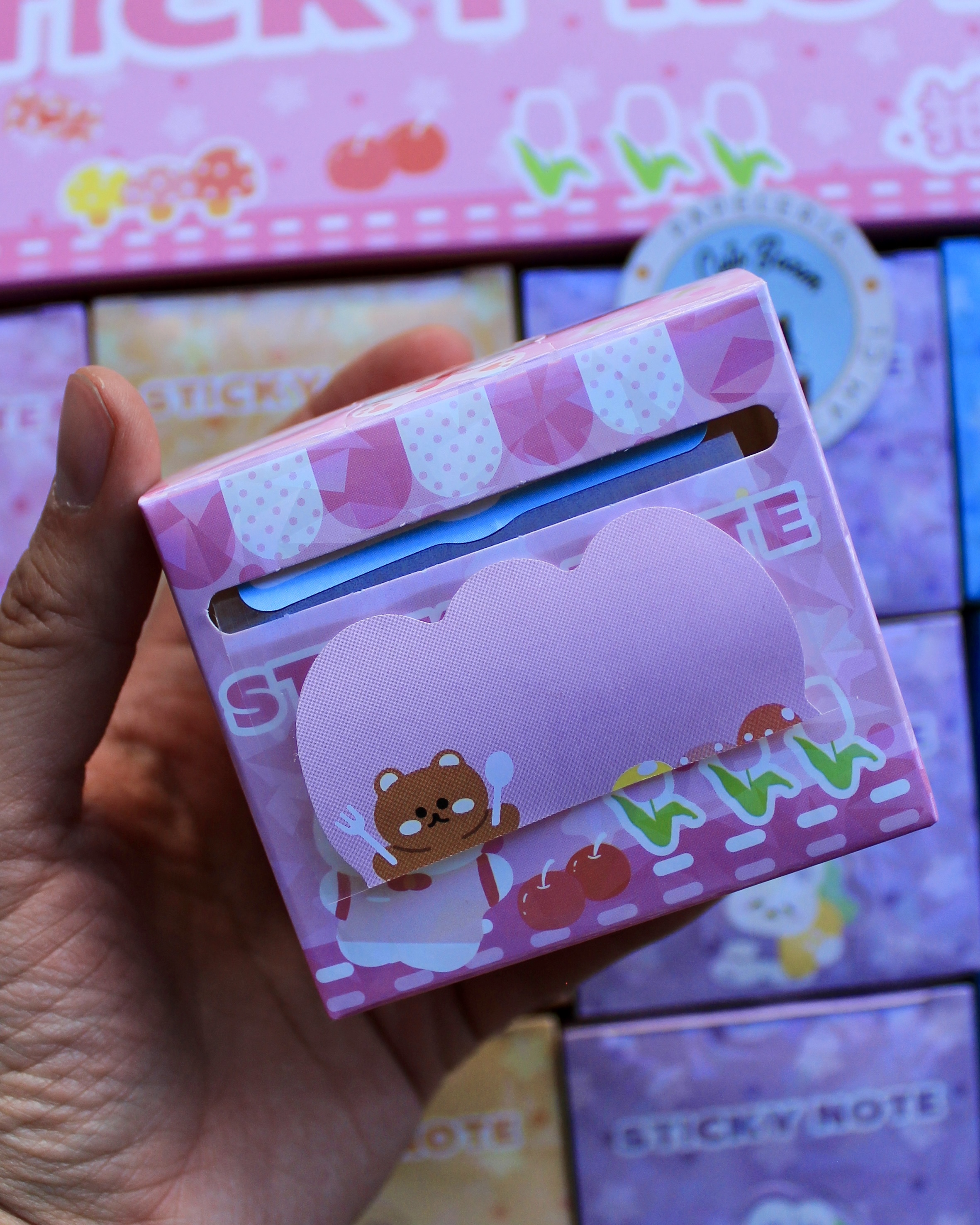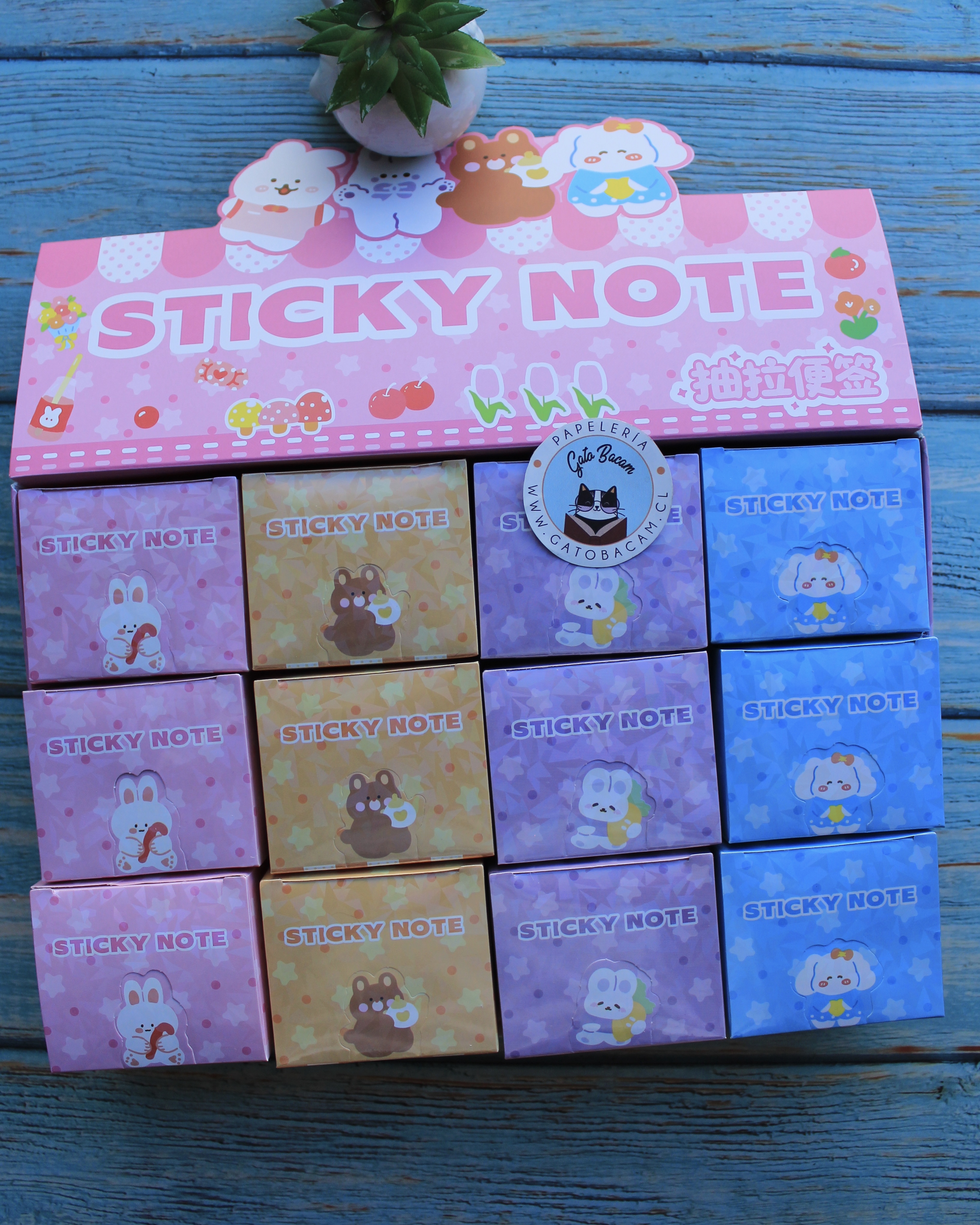 Caja de Post-it Adhesivos conejito: notas adhesivas con un diseño kawaii y tapa transparente que permite ver el contenido al instante. Ideal para organizar ideas, recordatorios y tareas en el escritorio, estudio o planners; combina funcionalidad y estilo para destacar apuntes importantes. Compacta y práctica, facilita llevarlas o mantenerlas a mano en tu área de trabajo. Medida: 6.5 x 6.5 x 7.5 cm.