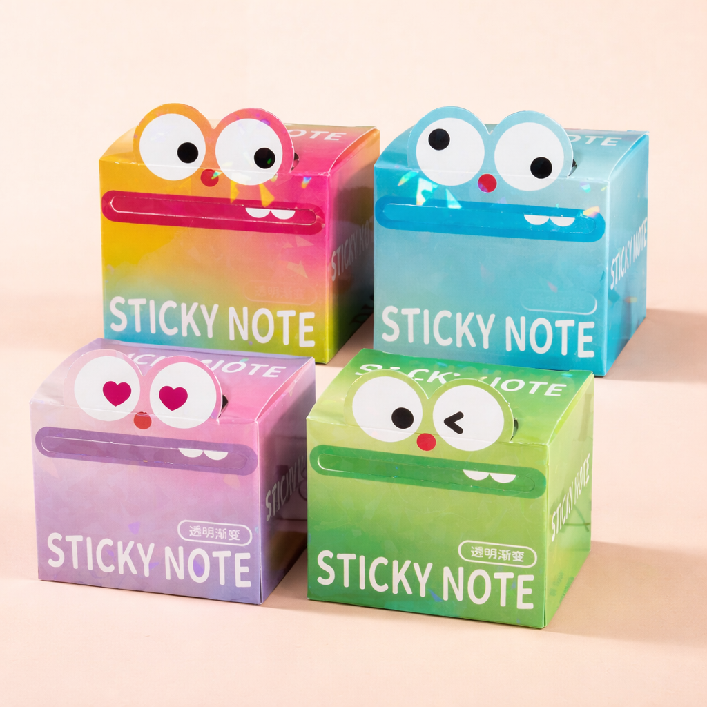 Caja de Post-it Adhesivos conejito: notas adhesivas con un diseño kawaii y tapa transparente que permite ver el contenido al instante. Ideal para organizar ideas, recordatorios y tareas en el escritorio, estudio o planners; combina funcionalidad y estilo para destacar apuntes importantes. Compacta y práctica, facilita llevarlas o mantenerlas a mano en tu área de trabajo. Medida: 6.5 x 6.5 x 7.5 cm.