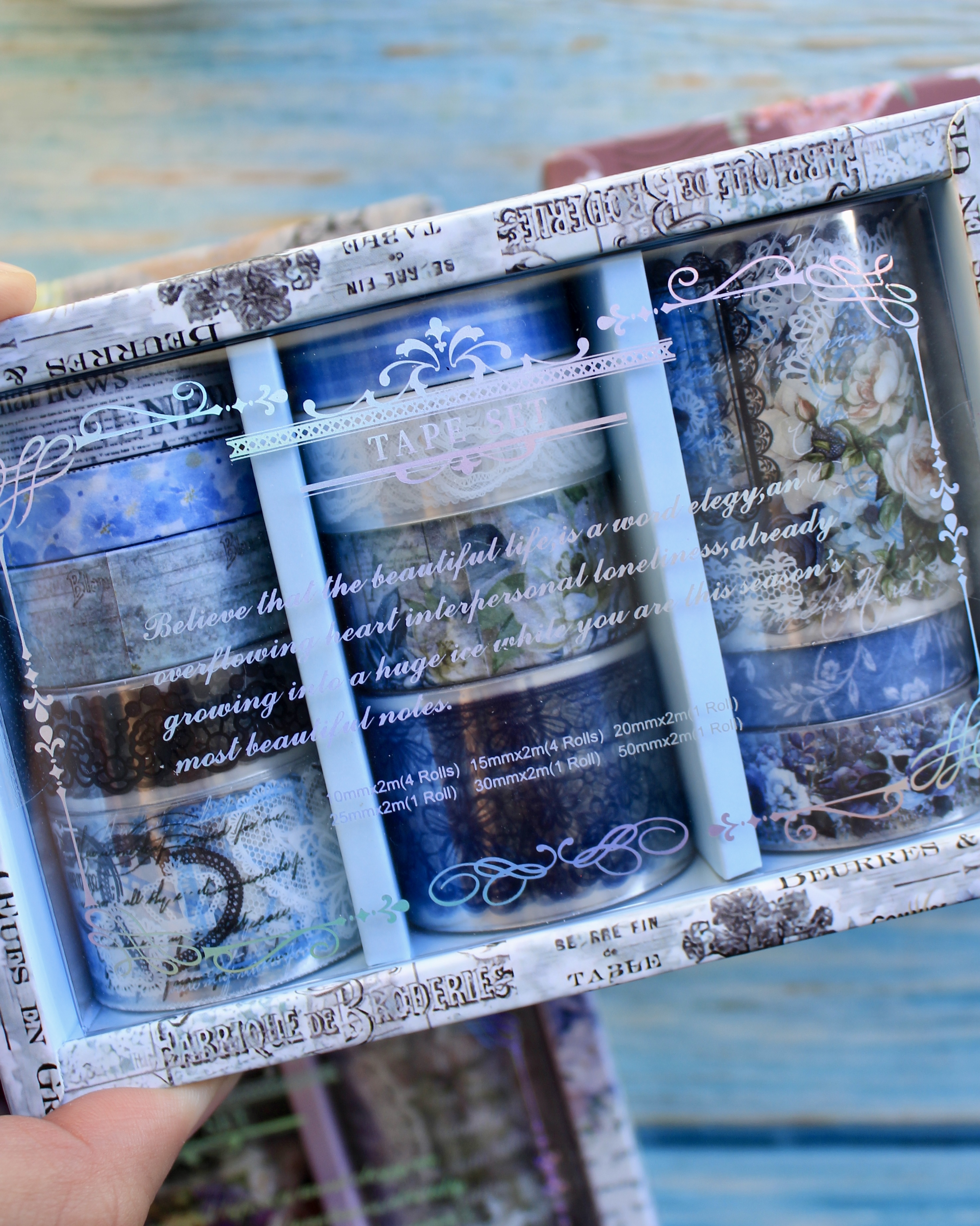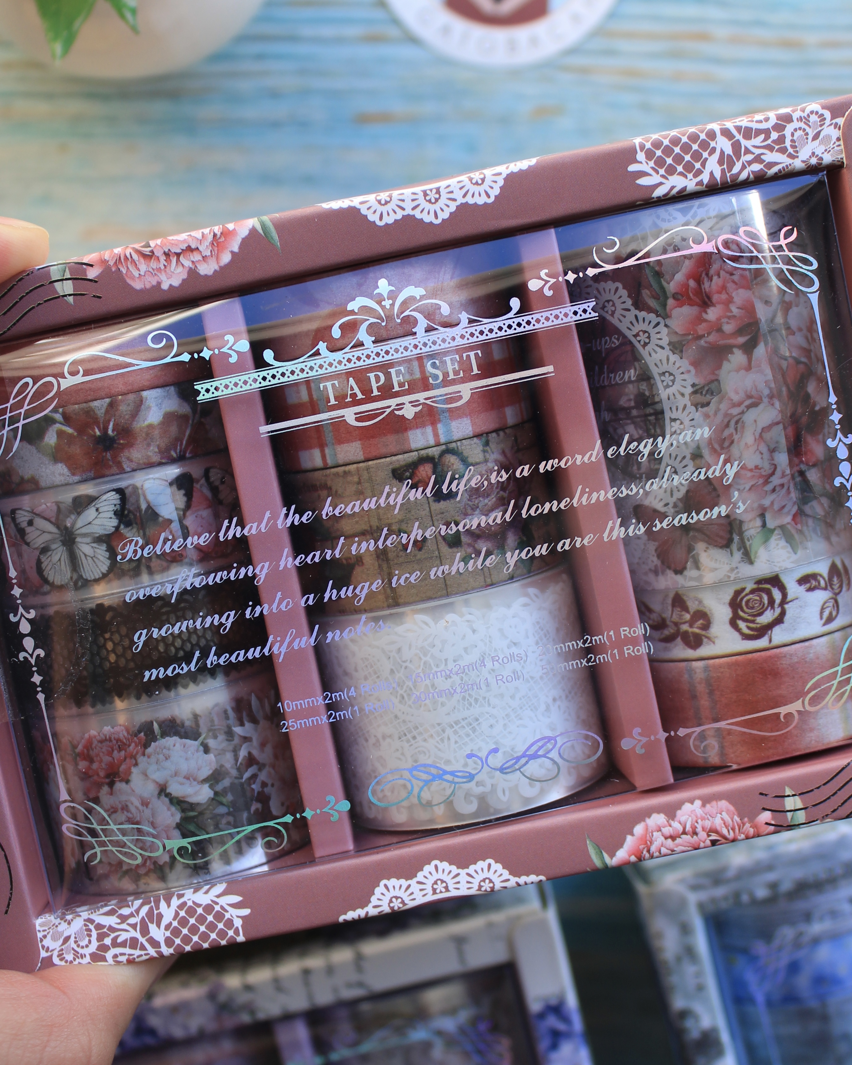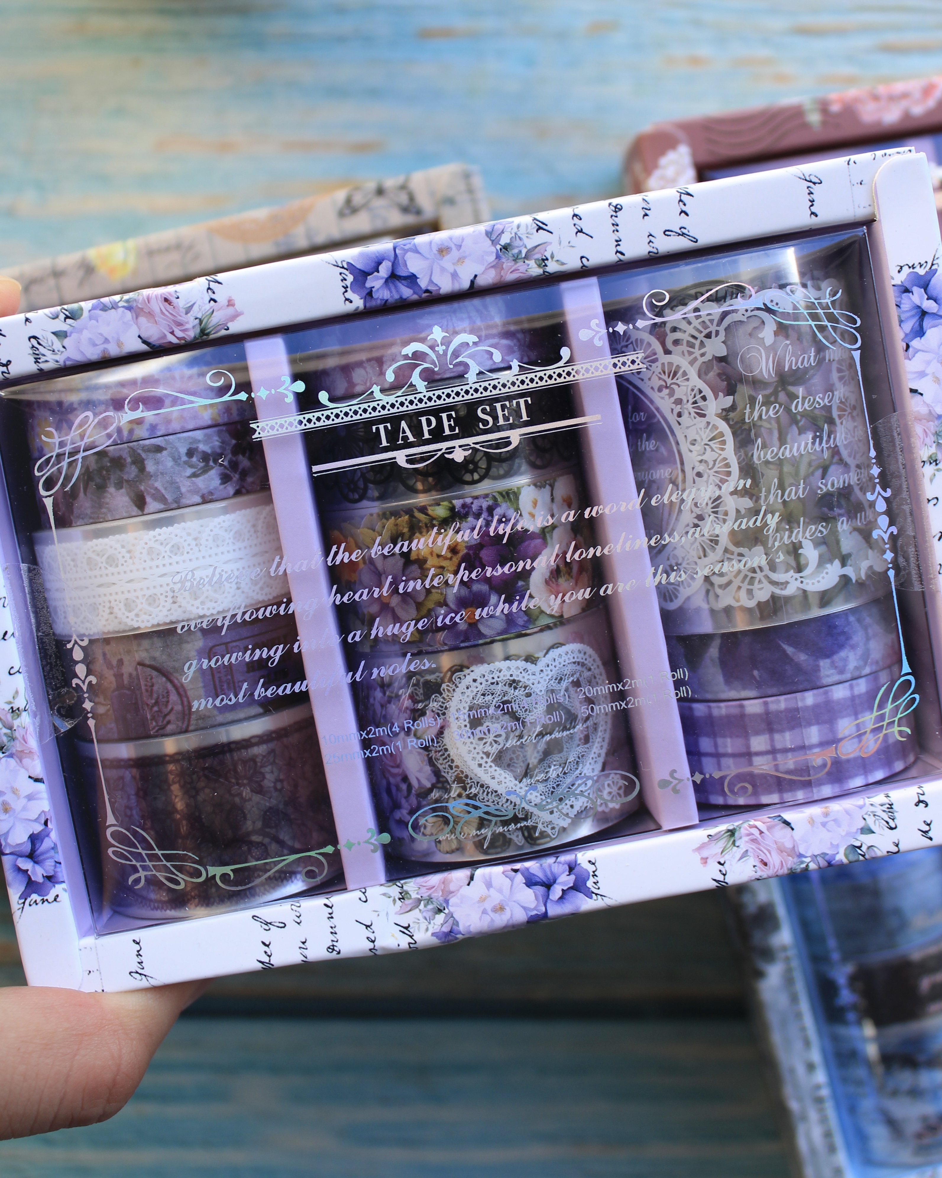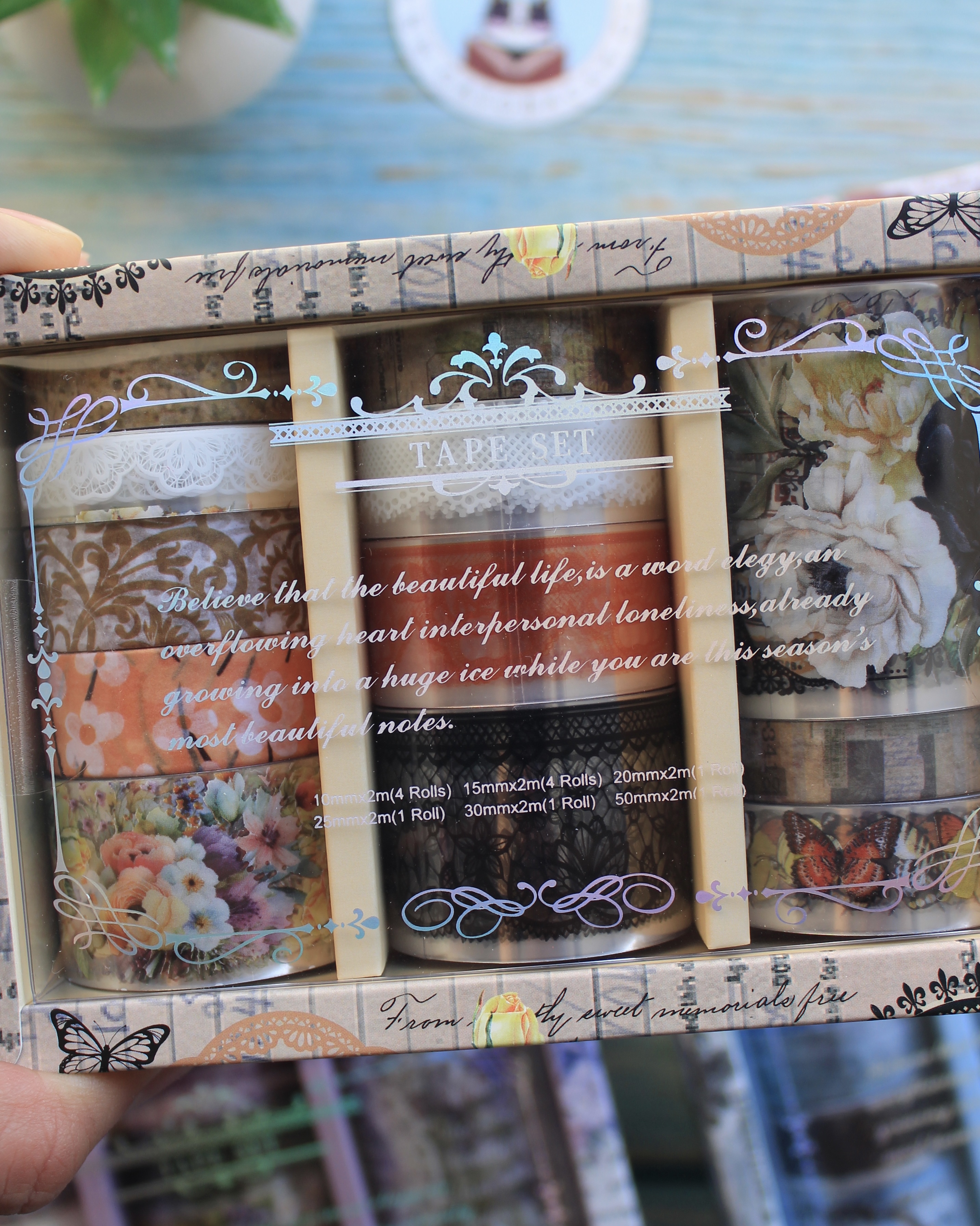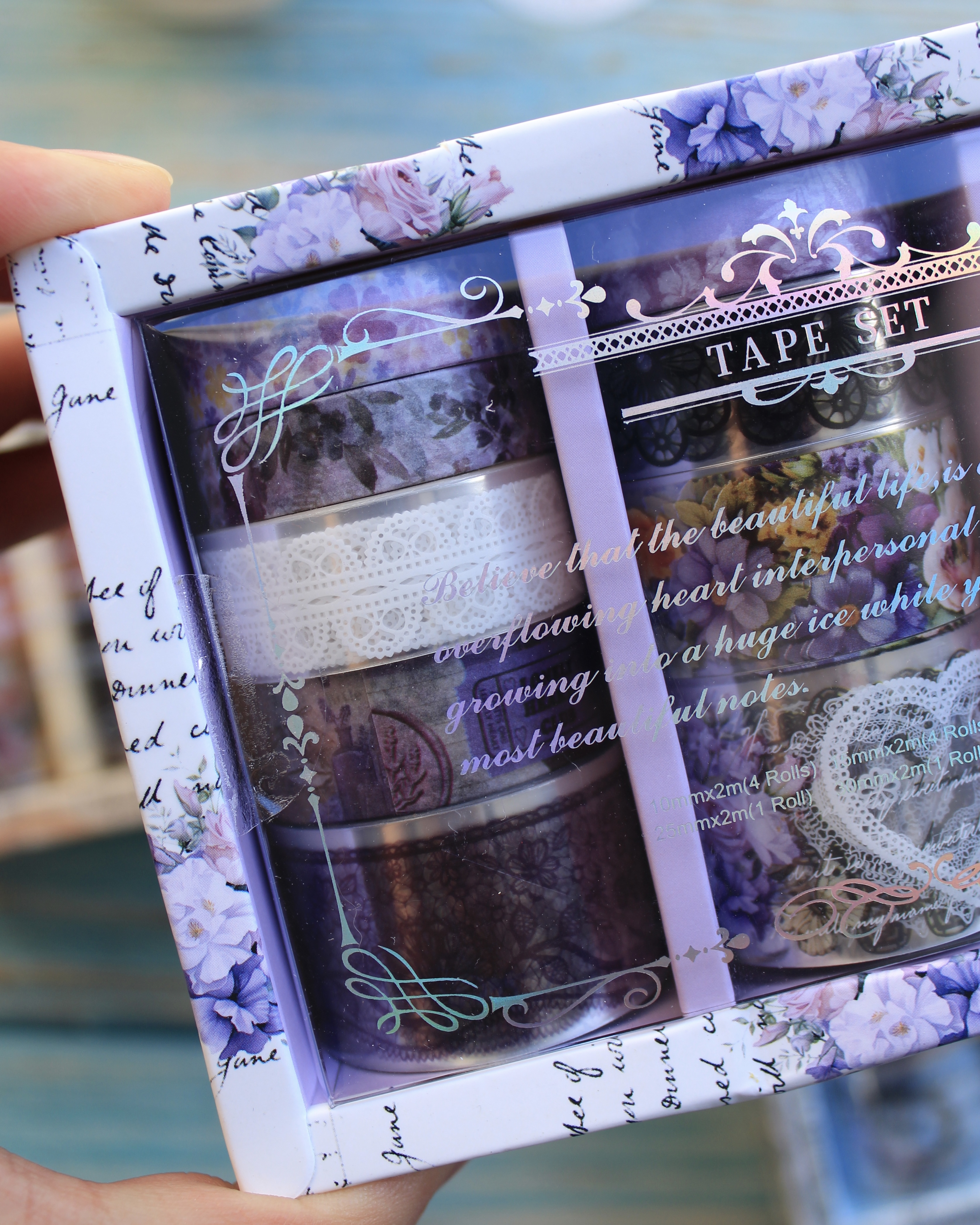 Este lindo set incluye 12 cintas decorativas transparentes y de papel
