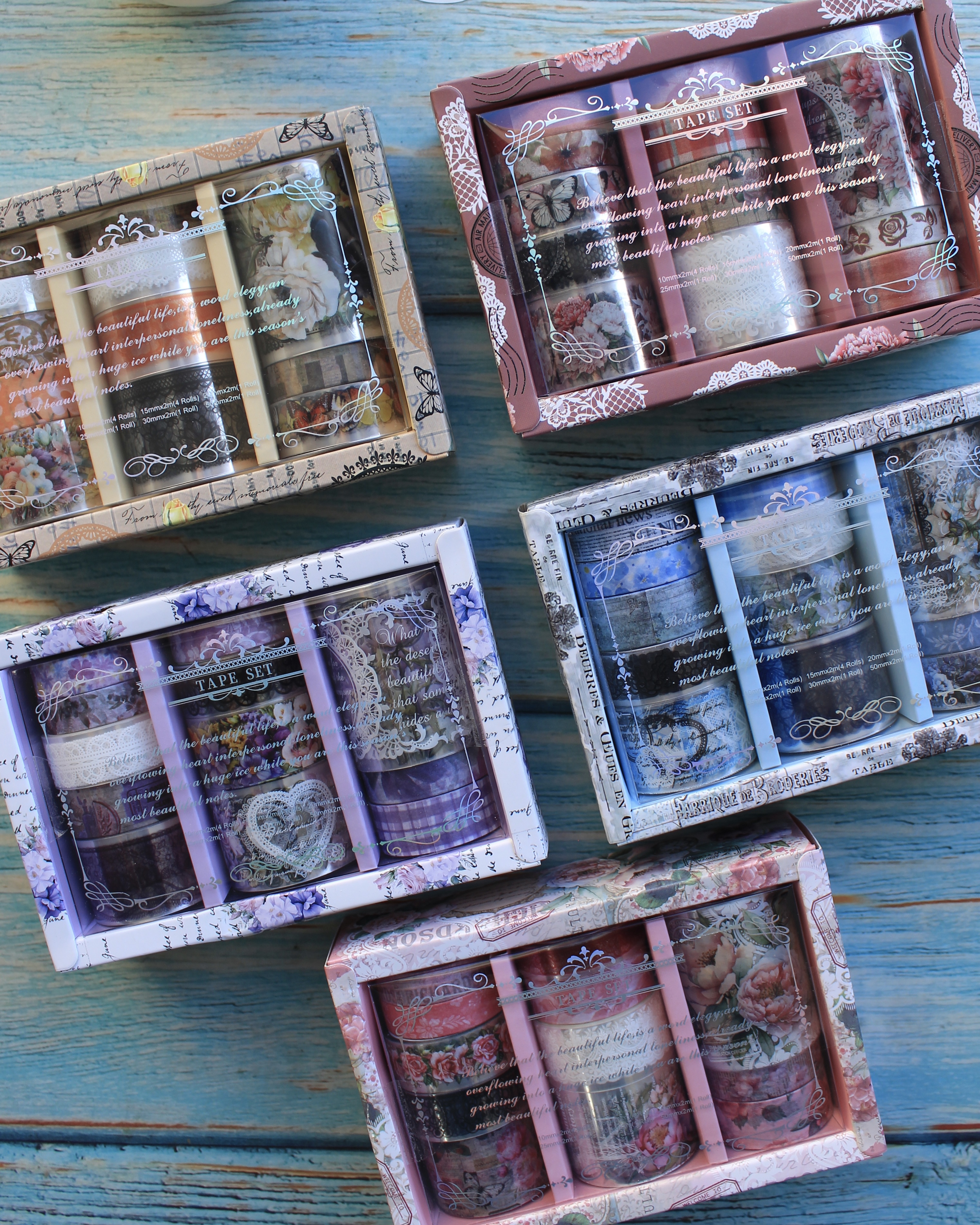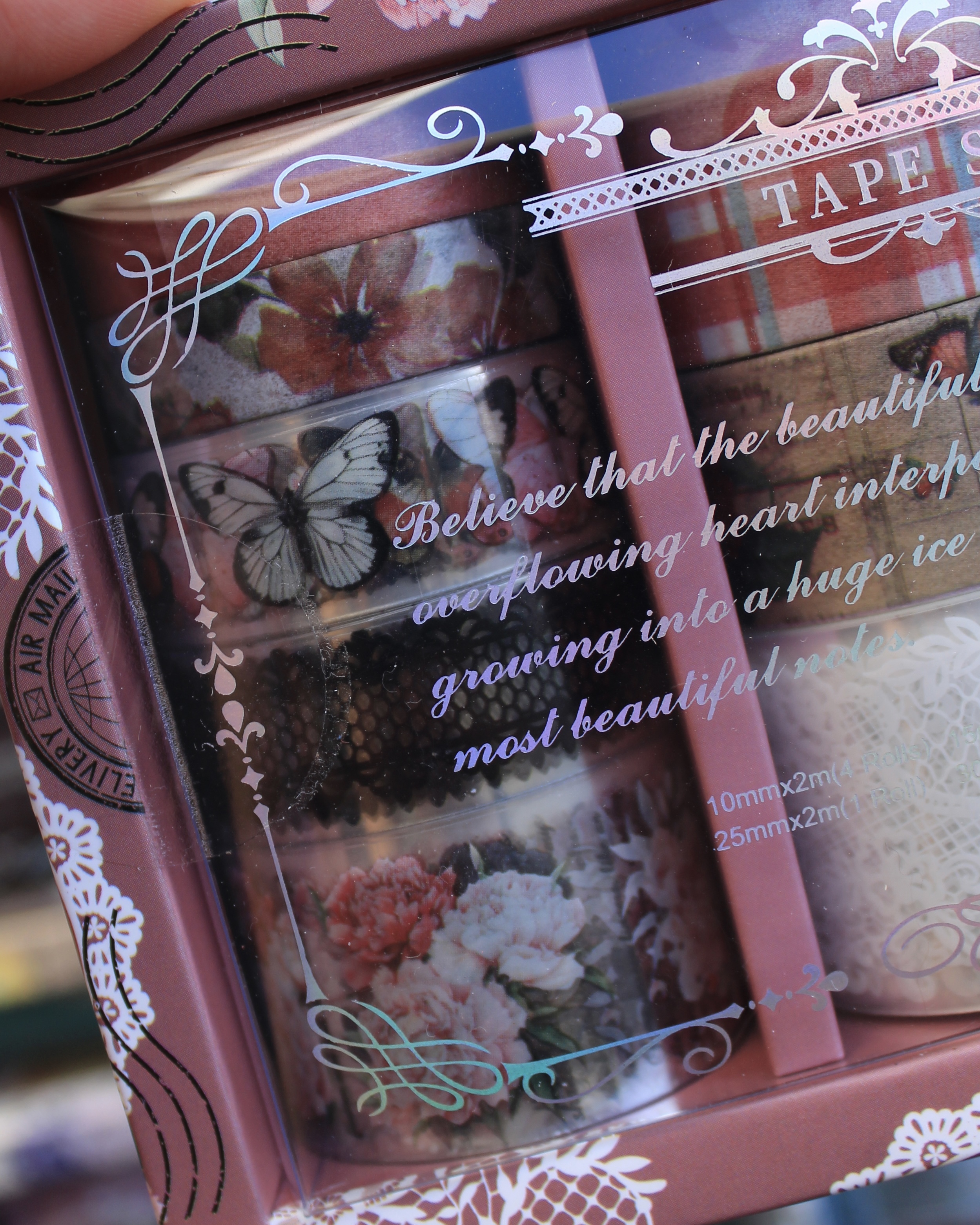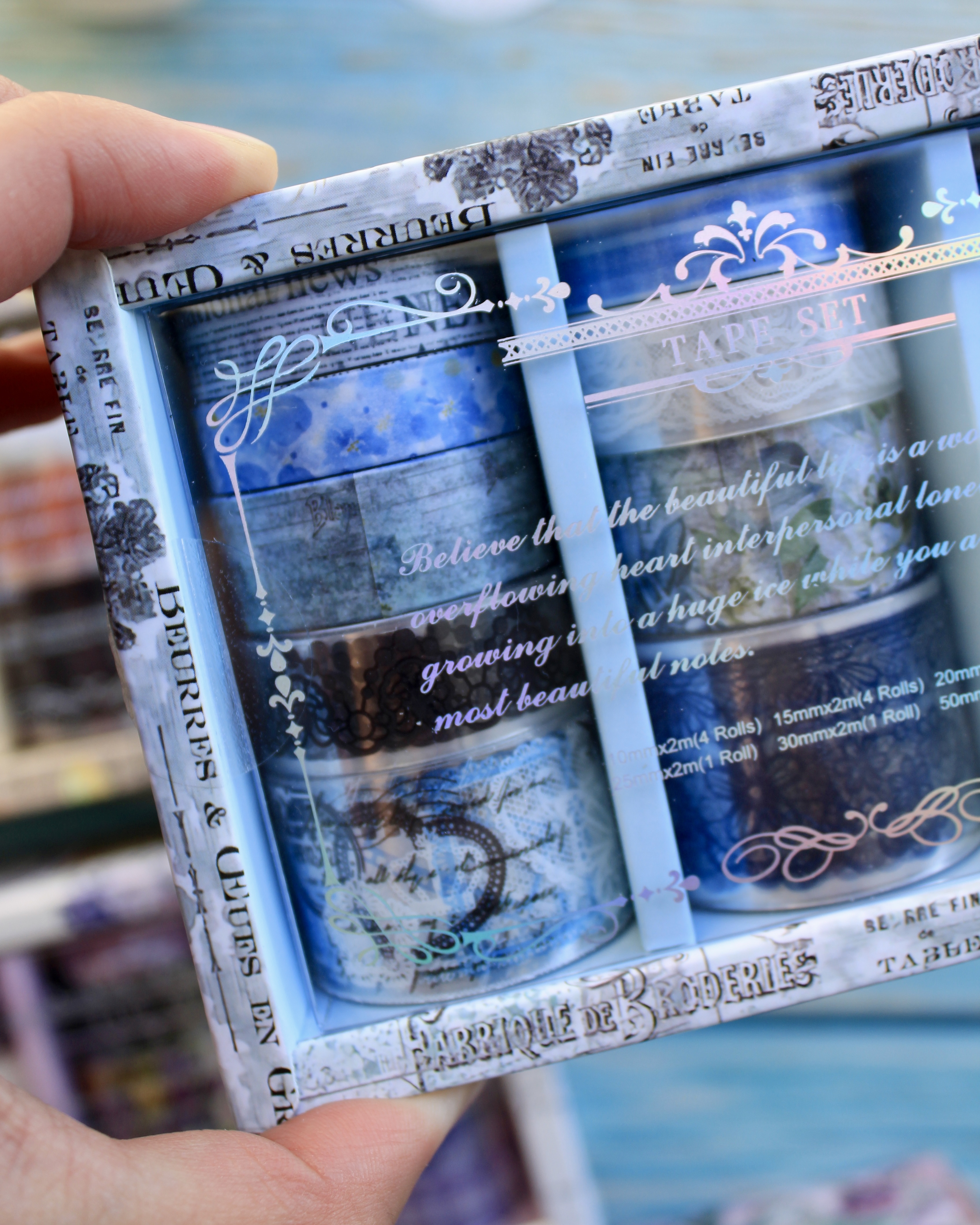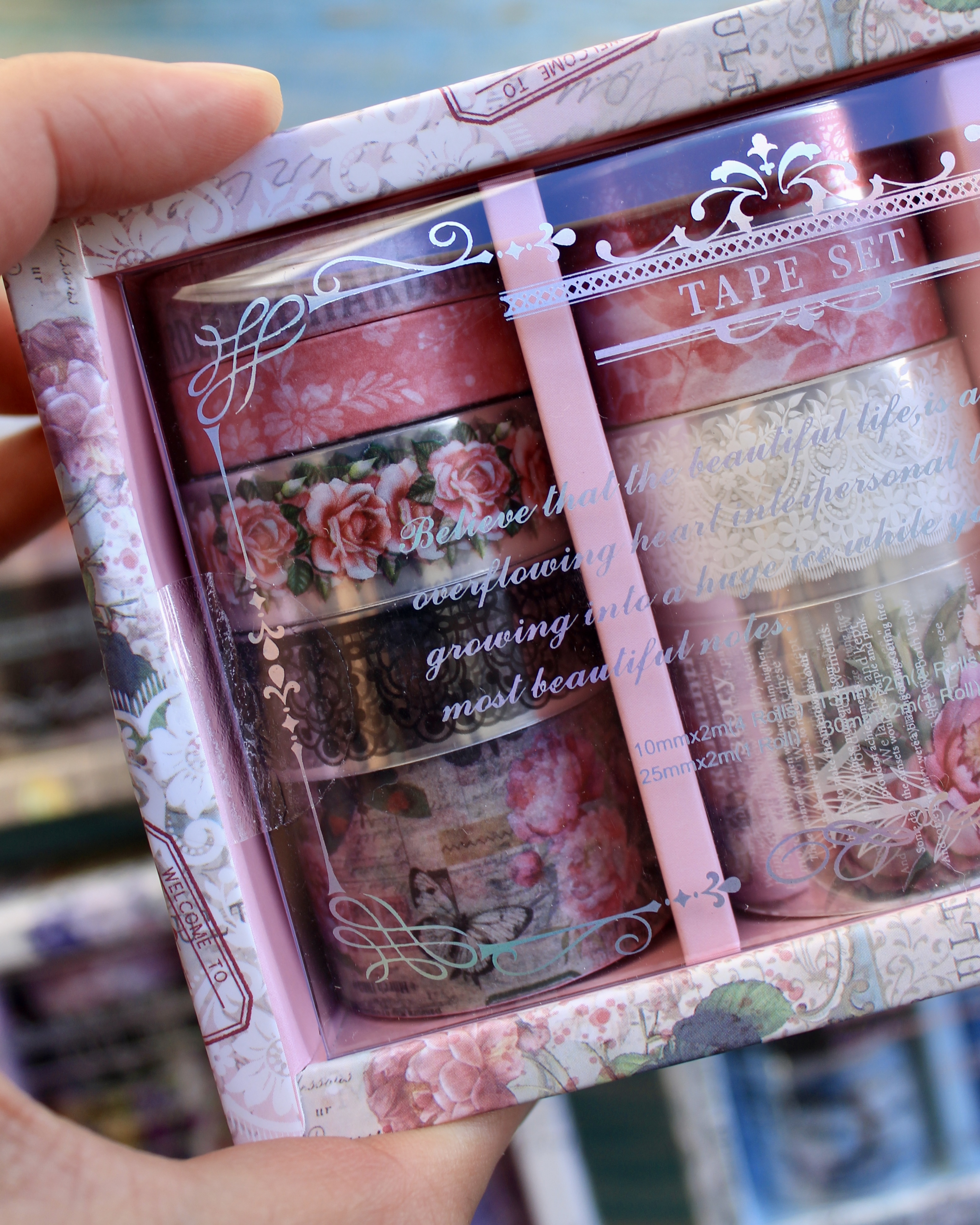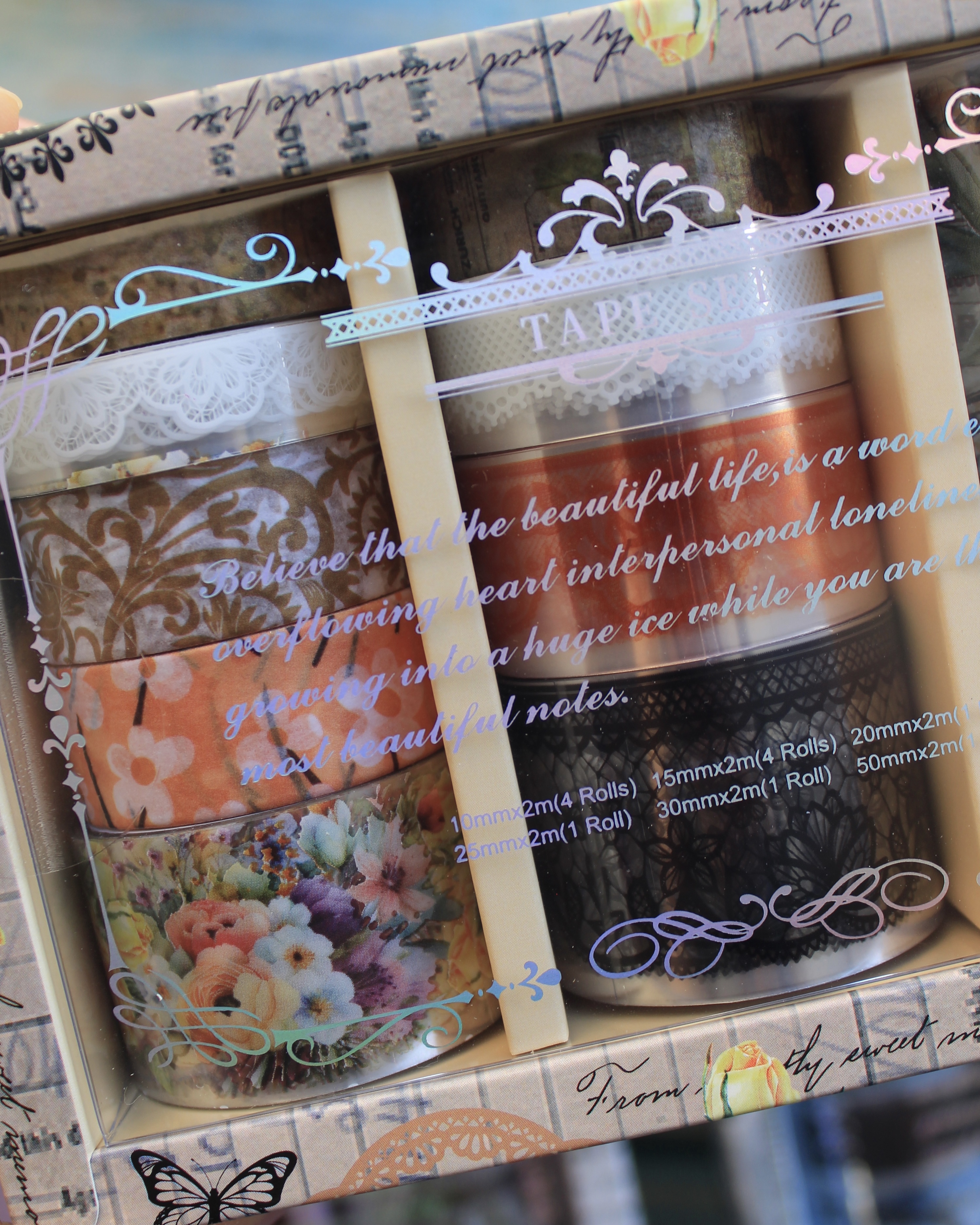 Este lindo set incluye 12 cintas decorativas transparentes y de papel