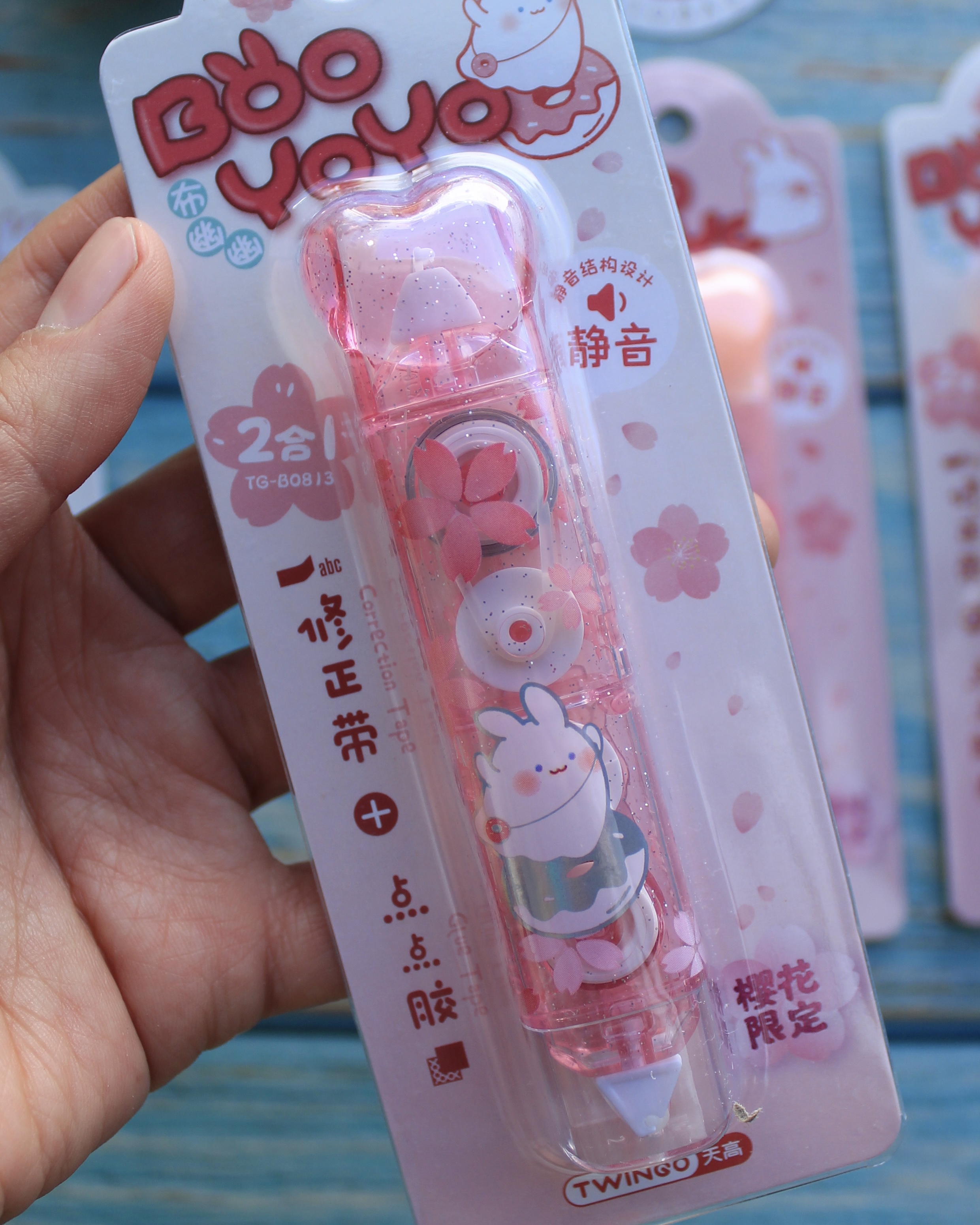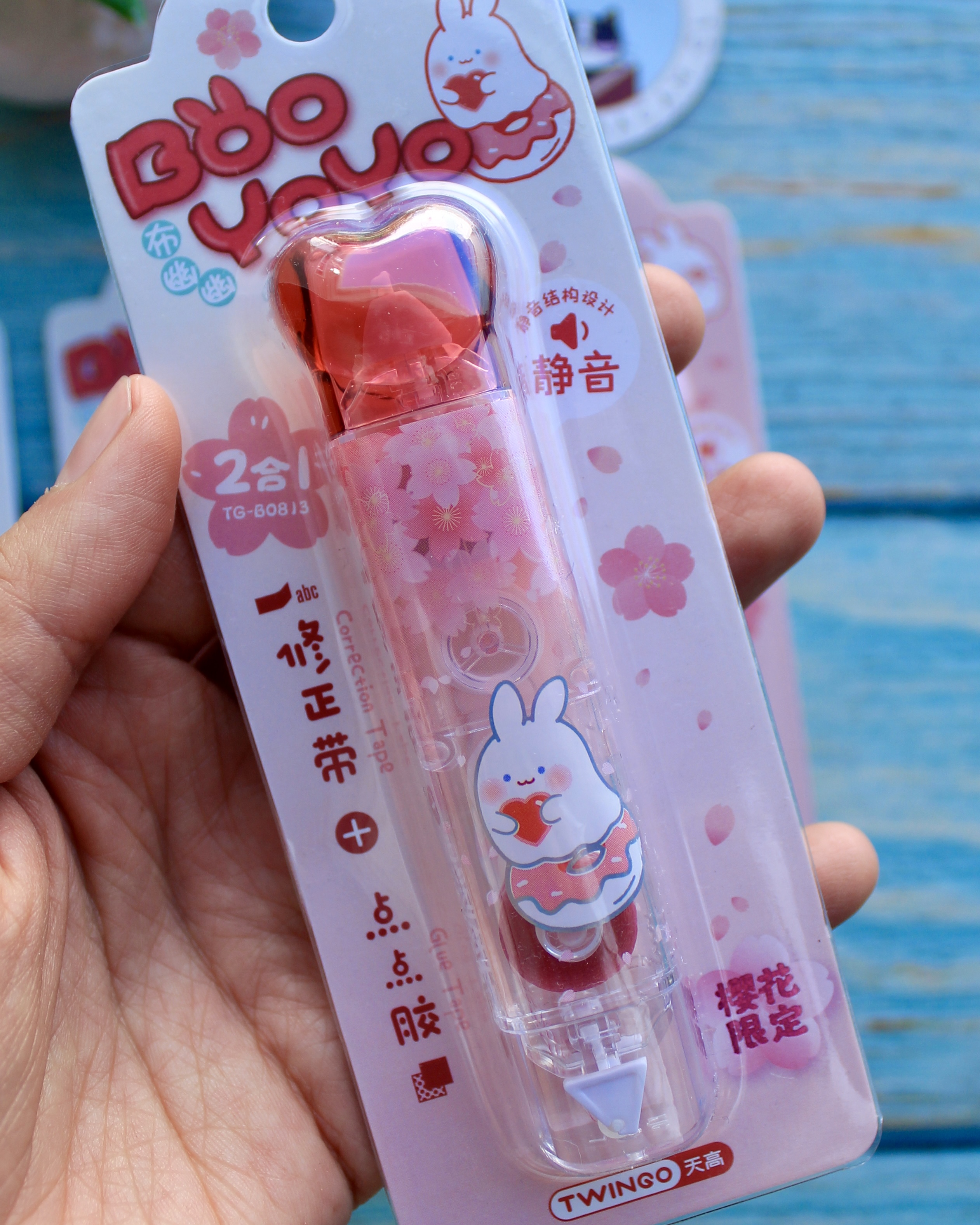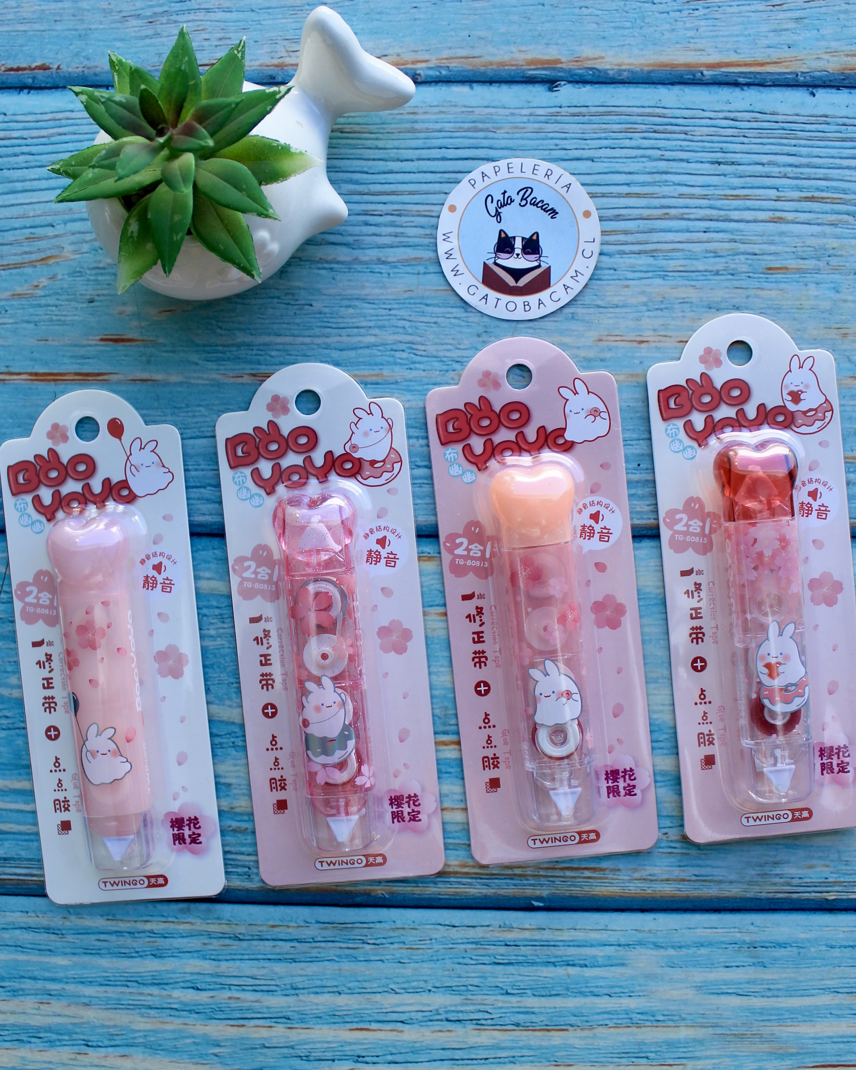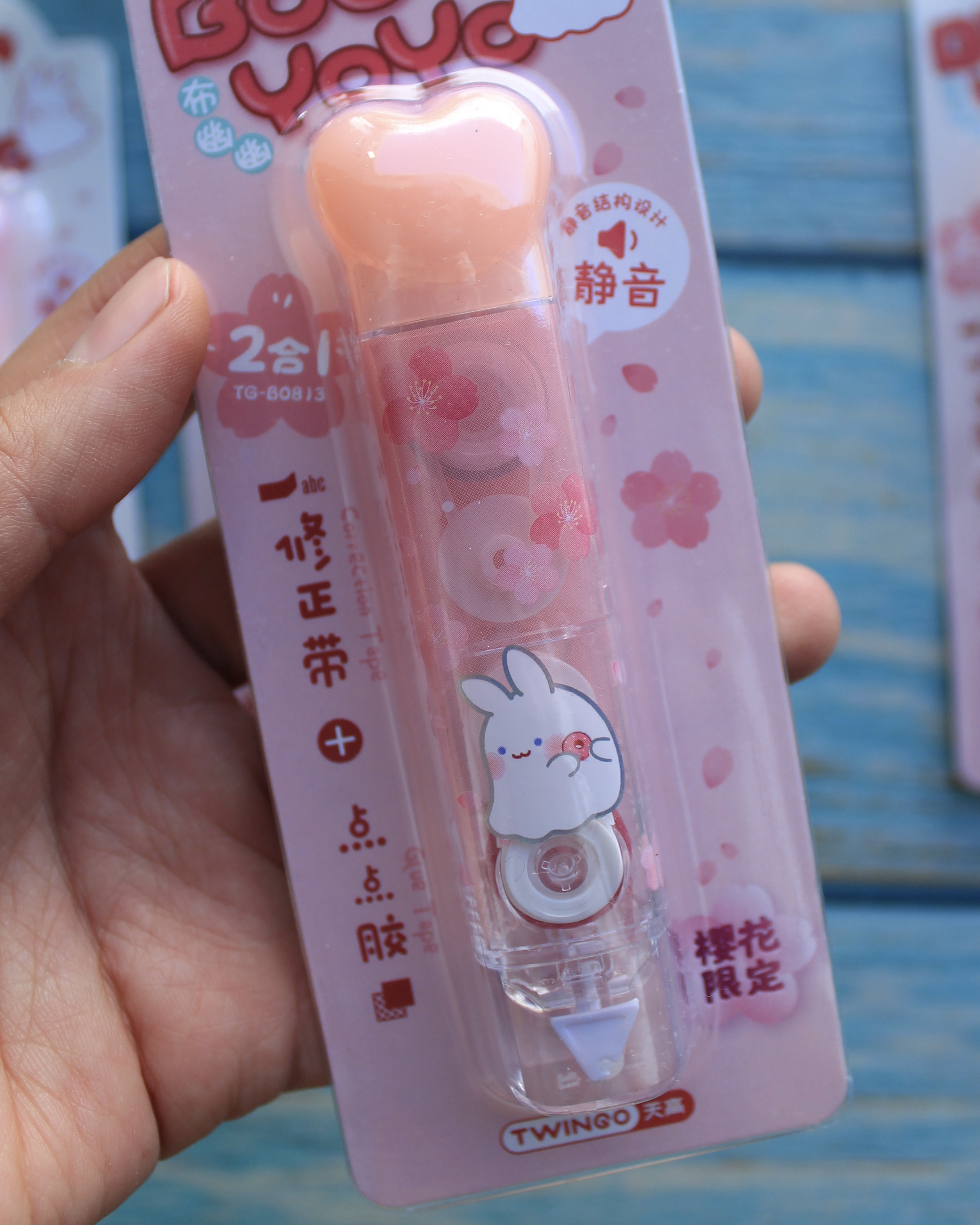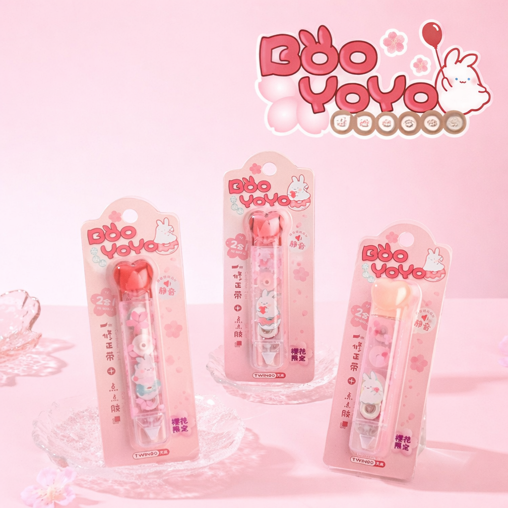 Corrector + Pegamento diseño Conejitos: práctico 2 en 1 para corregir y pegar con estilo. Compacto y ligero, combina las funciones esenciales para el día a día en un solo producto con un encantador diseño kawaii de conejitos, ideal para llevar en el estuche escolar u oficina.