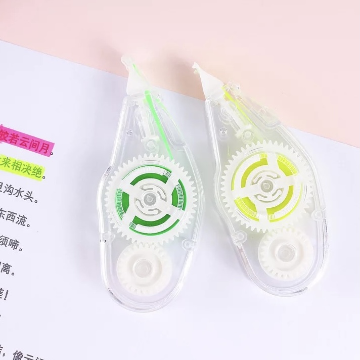 Mira que novedoso este destacador, ideal si no quieres traspasar la hoja al momento de resaltar el texto, incluye 6 metros de cinta, y tenemos en color amarillo, verde, rosado y amarillo