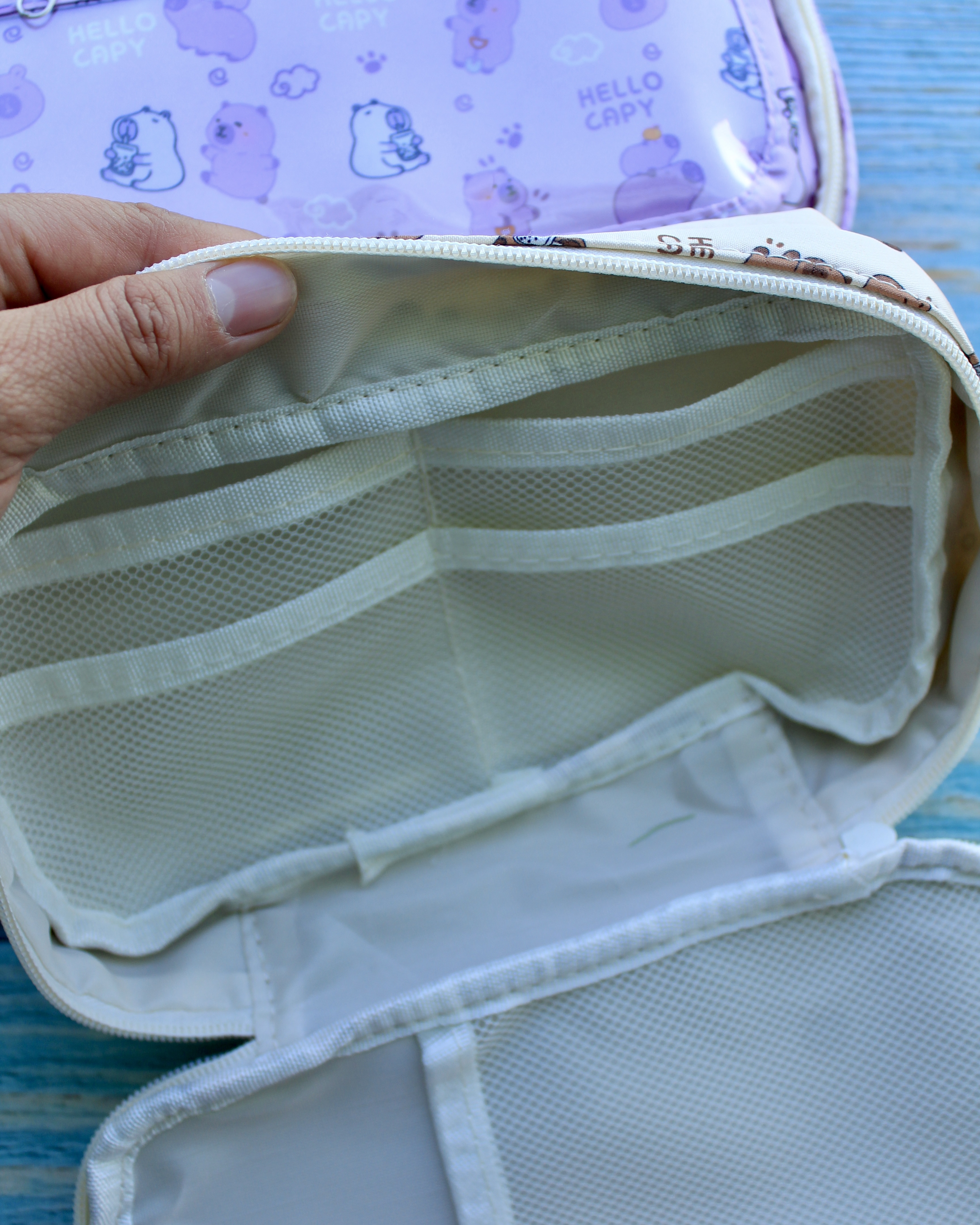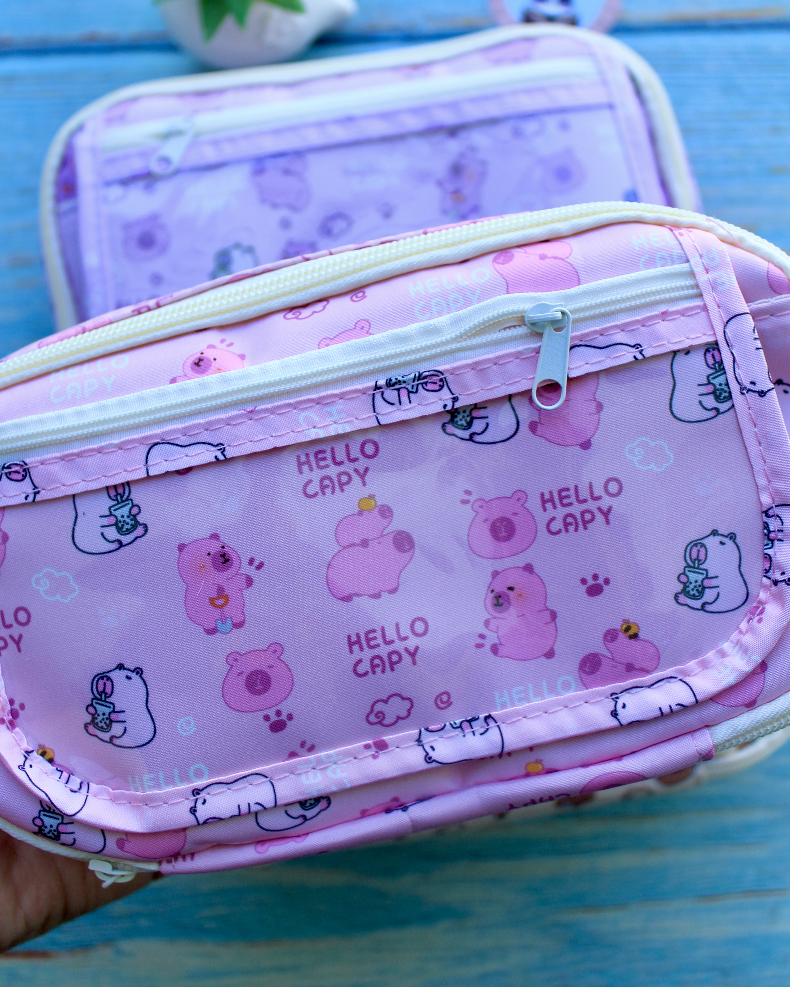 Descubre el Estuche de 4 Compartimentos Capybara, la solución perfecta para mantener organizados tus lápices y accesorios. Con un espacioso diseño interior de 21x11x13 cm, este estuche no solo es funcional, sino que también cuenta con un hermoso diseño que encantará a los amantes de la papelería. Su estructura inteligente permite optimizar el espacio, asegurando que puedas llevar todo lo que necesitas de manera ordenada y estilizada. Ideal para estudiantes, artistas y para el uso diario, el Estuche Capybara se destaca por su calidad y versatilidad. ¡Organiza tu mundo con un toque kawaii