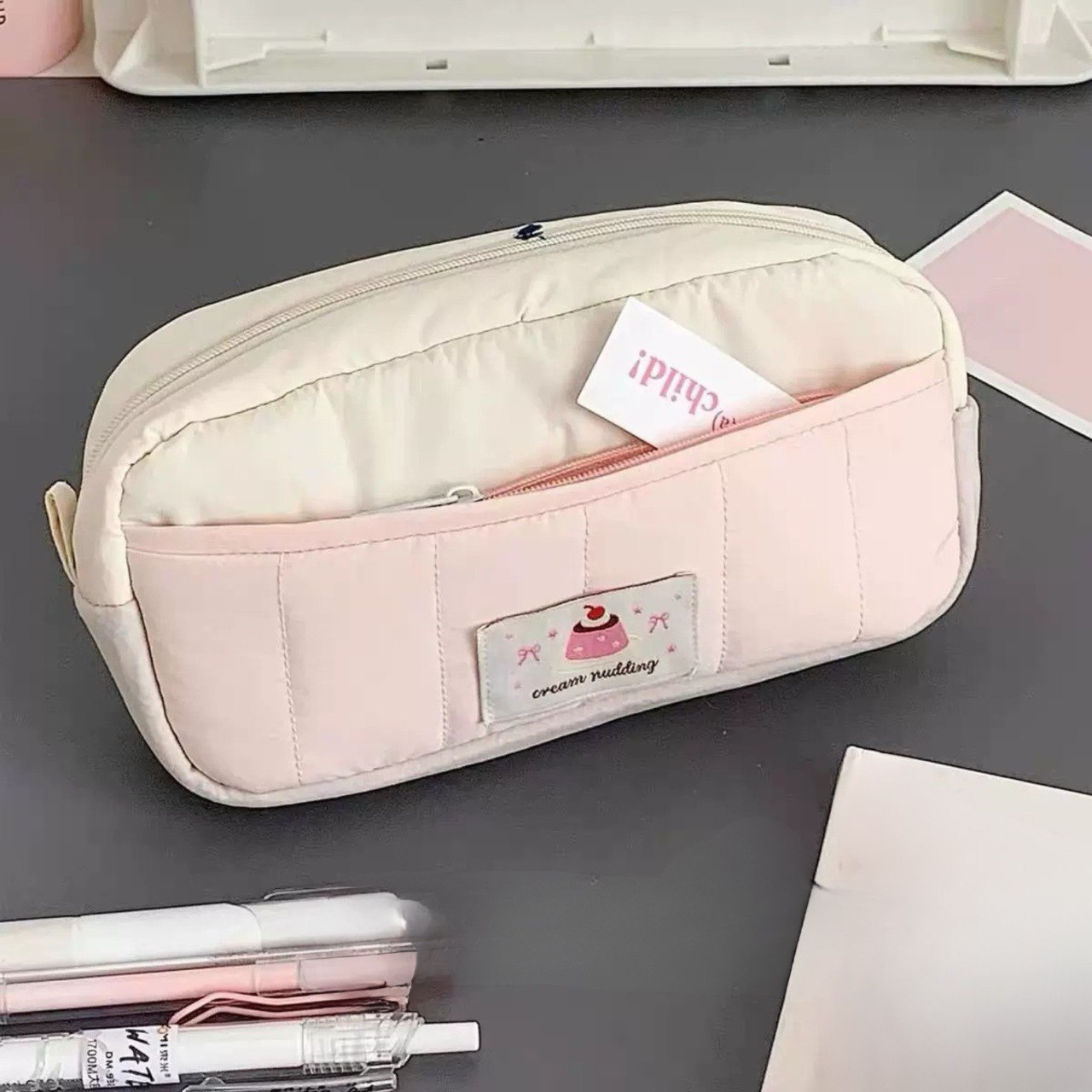 Estuche doble compartimiento color crema, acolchado estilo Kawaii (22 x 13 cm). Diseño práctico y elegante para mantener lápices, bolígrafos, resaltadores y accesorios escolares u oficina siempre organizados. Confeccionado en poliéster resistente: ligero, duradero y fácil de transportar en mochilas o bolsos. Sus dos compartimientos permiten separar y ordenar mejor los útiles, ofreciendo mayor capacidad y acceso rápido. Color crema neutro y moderno que combina con cualquier estilo. Ideal para estudiantes y profesionales que buscan funcionalidad y estética en un estuche compacto.