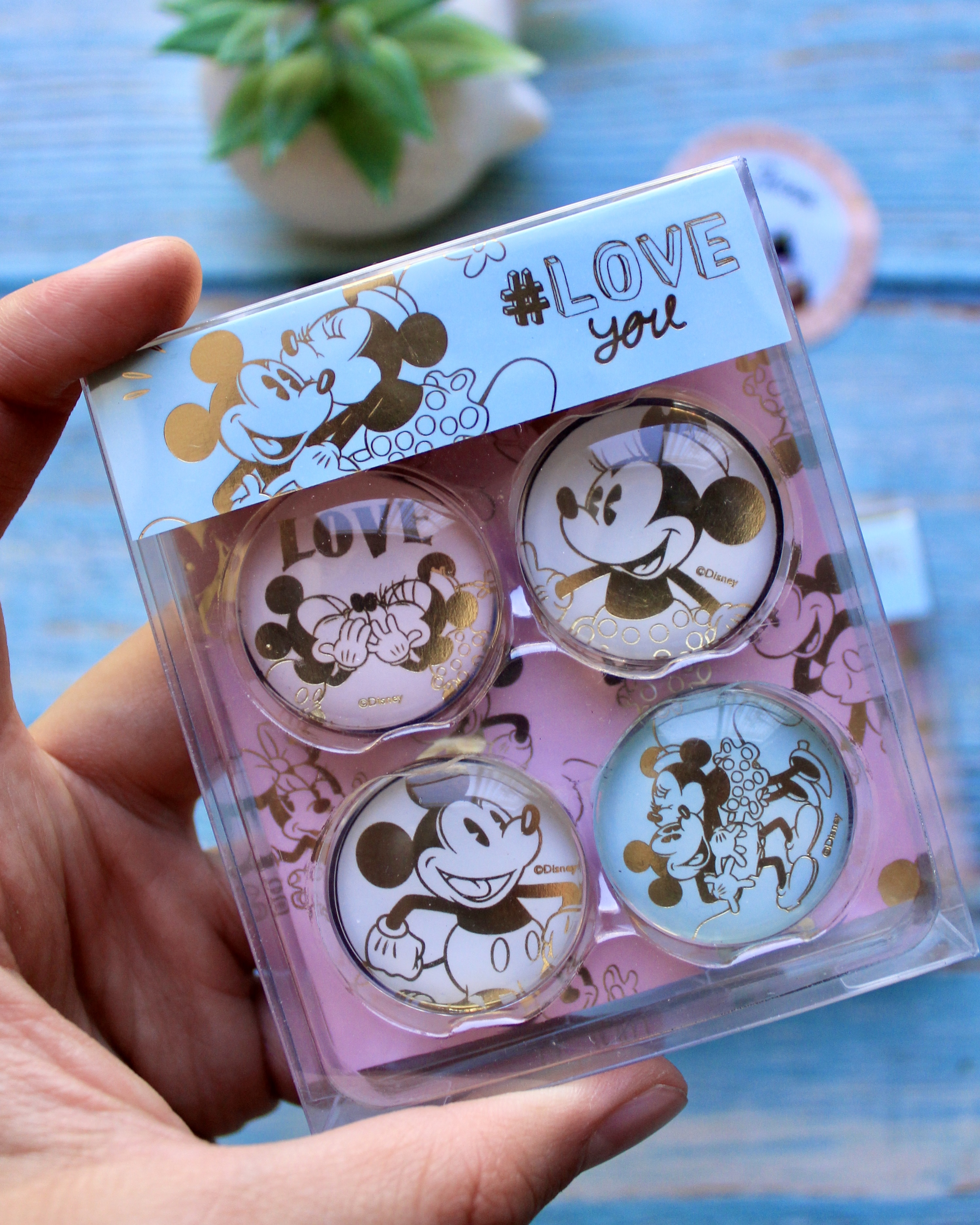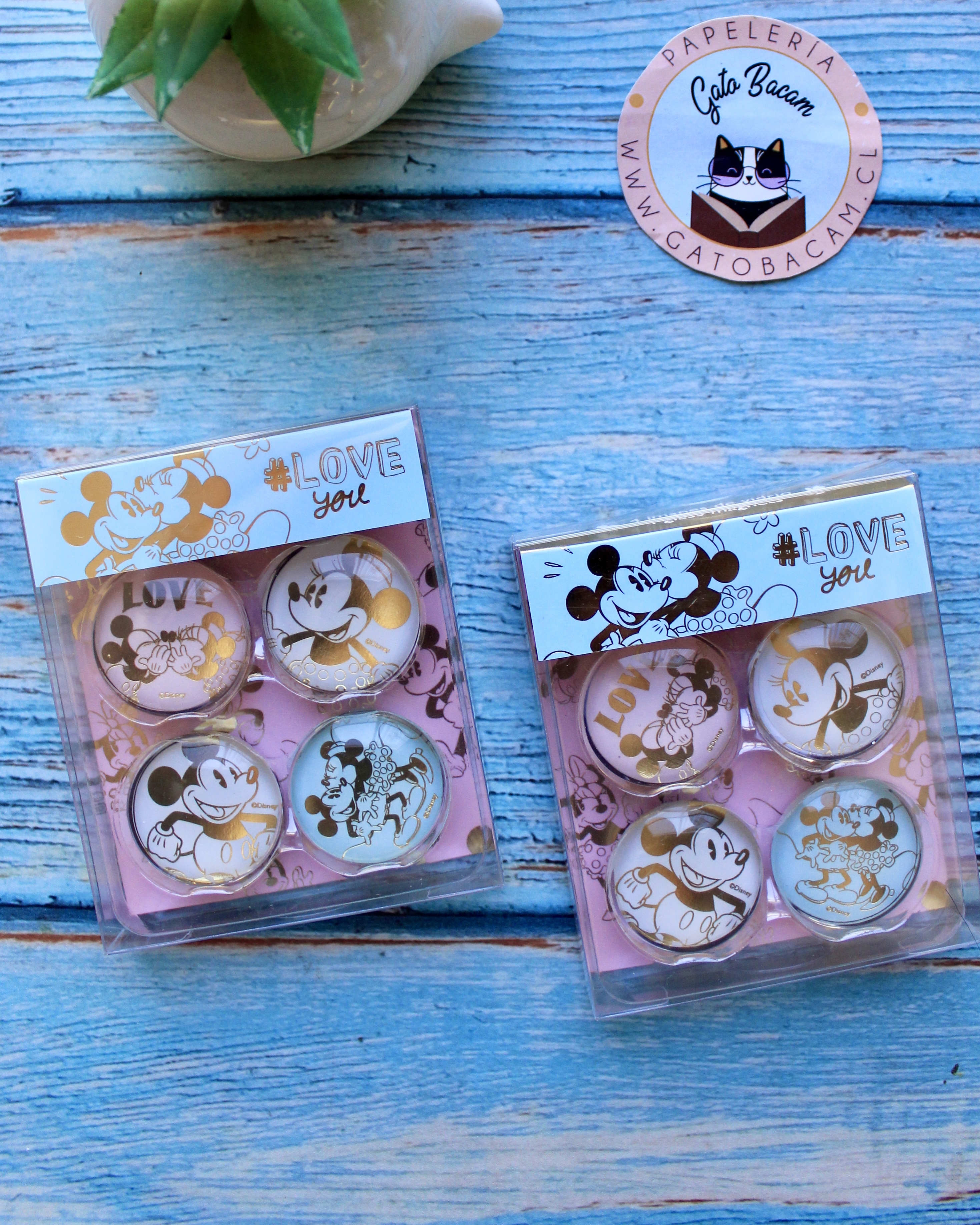 Descubre nuestros Imanes con diseño de Minnie y Mickey, una opción ideal para agregar un toque divertido y personalizado a cualquier superficie magnética. Este set incluye cuatro diseños encantadores que aportan estilo y color a tu hogar o espacio de trabajo. Cada imán tiene un diámetro de 3 cm y cuenta con un acabado laminado que les brinda un aspecto brillante y atractivo.