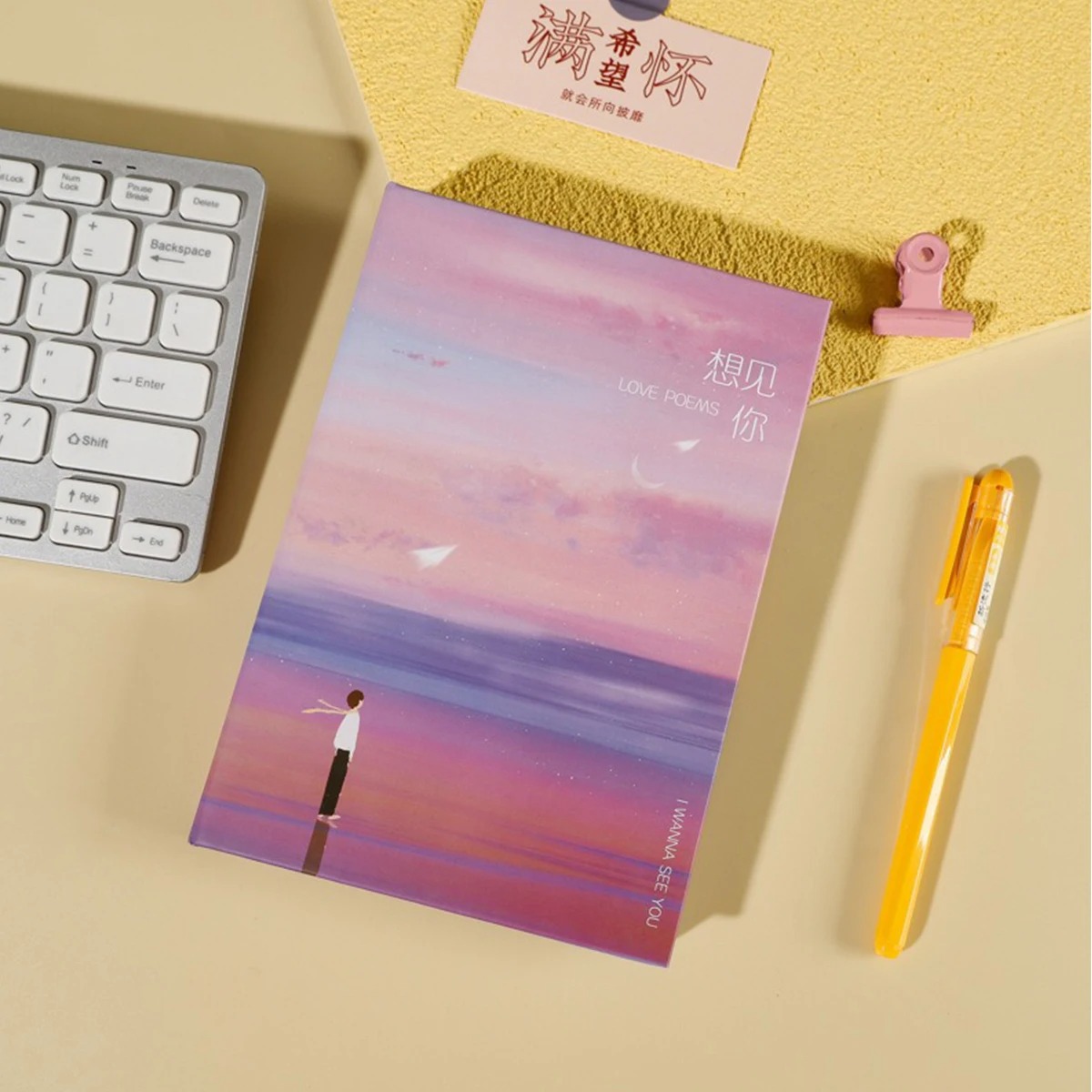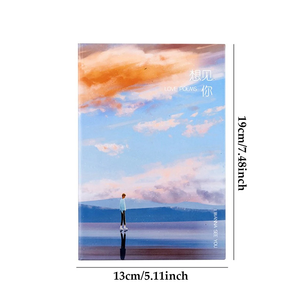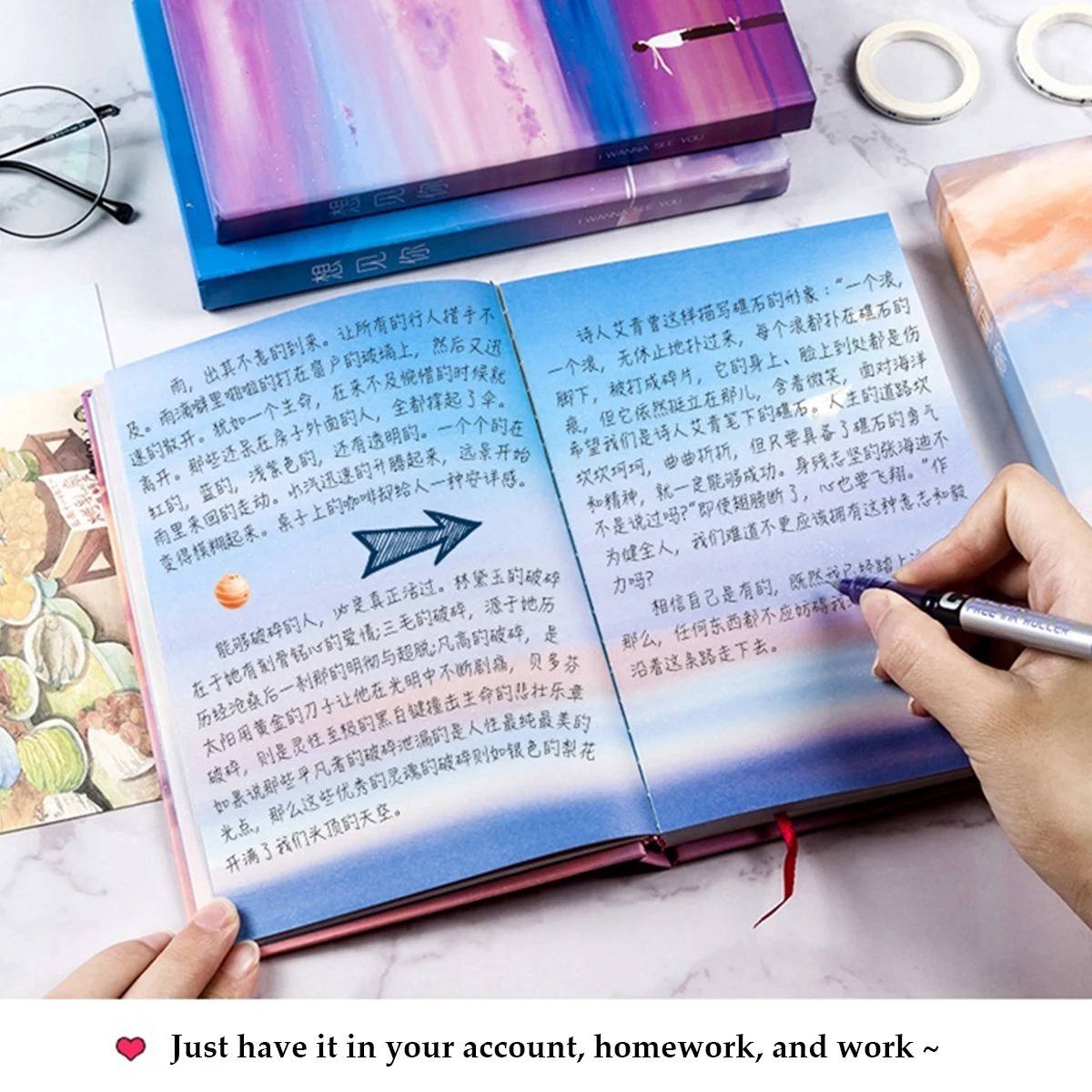 Hermosa libreta empastada con hojas ilustradas tipo cielos, tapa dura cinta interior, medida 13x19cm