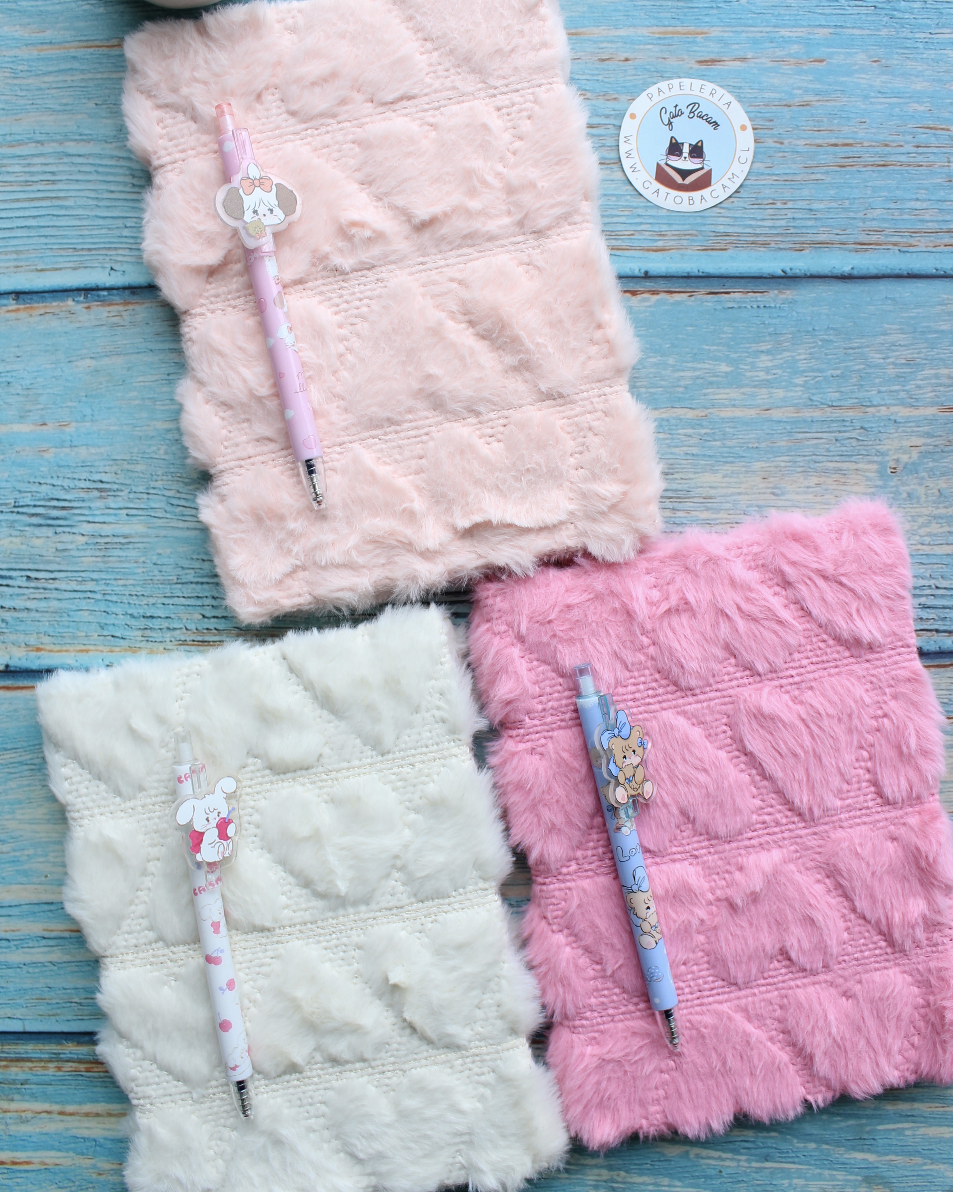Libreta peludita diseño corazon que además incluye boligrafo tinta gel, le da todo el estilo que necesitas para tu dia a día, mide 21x15 cm y es realmente adorable