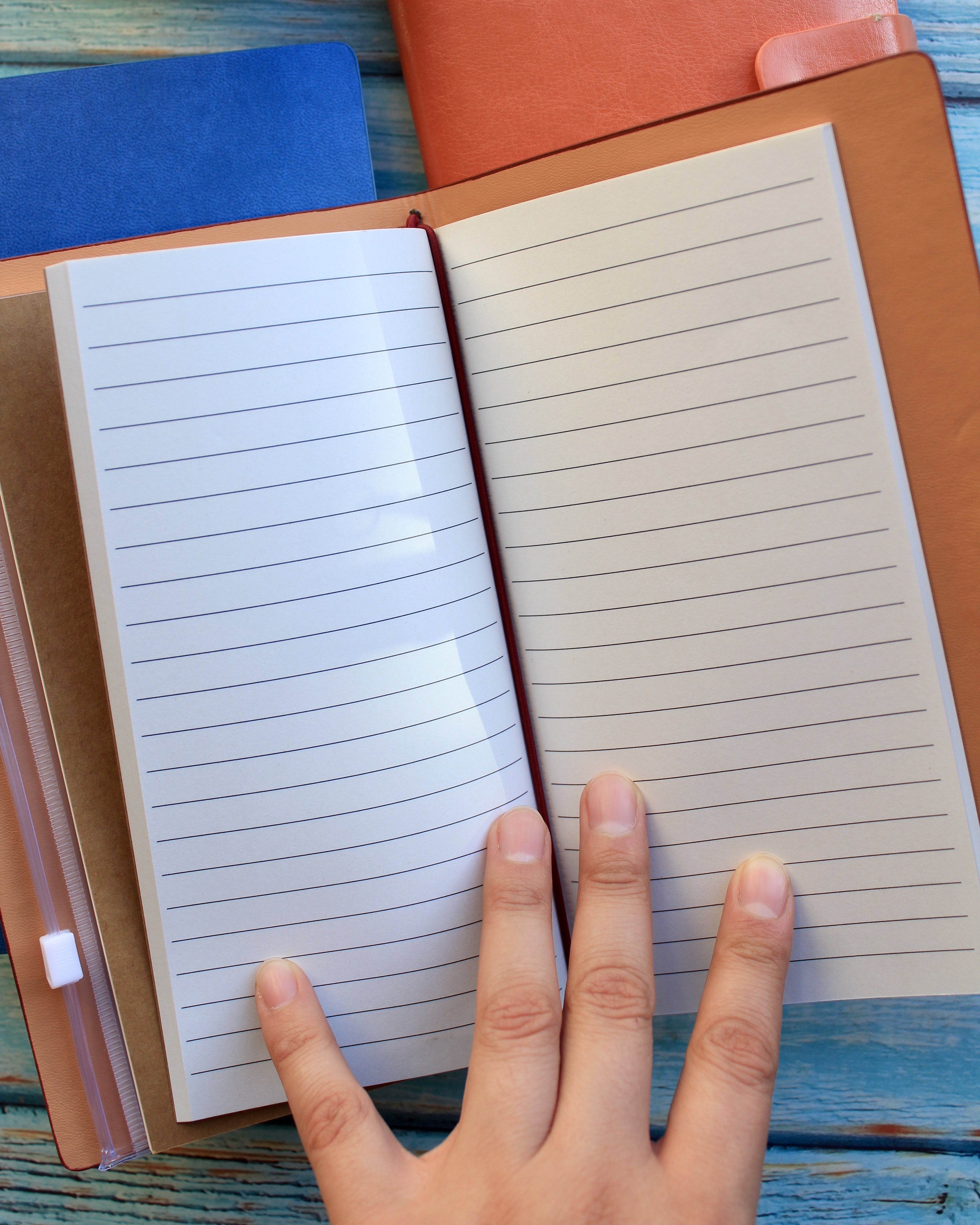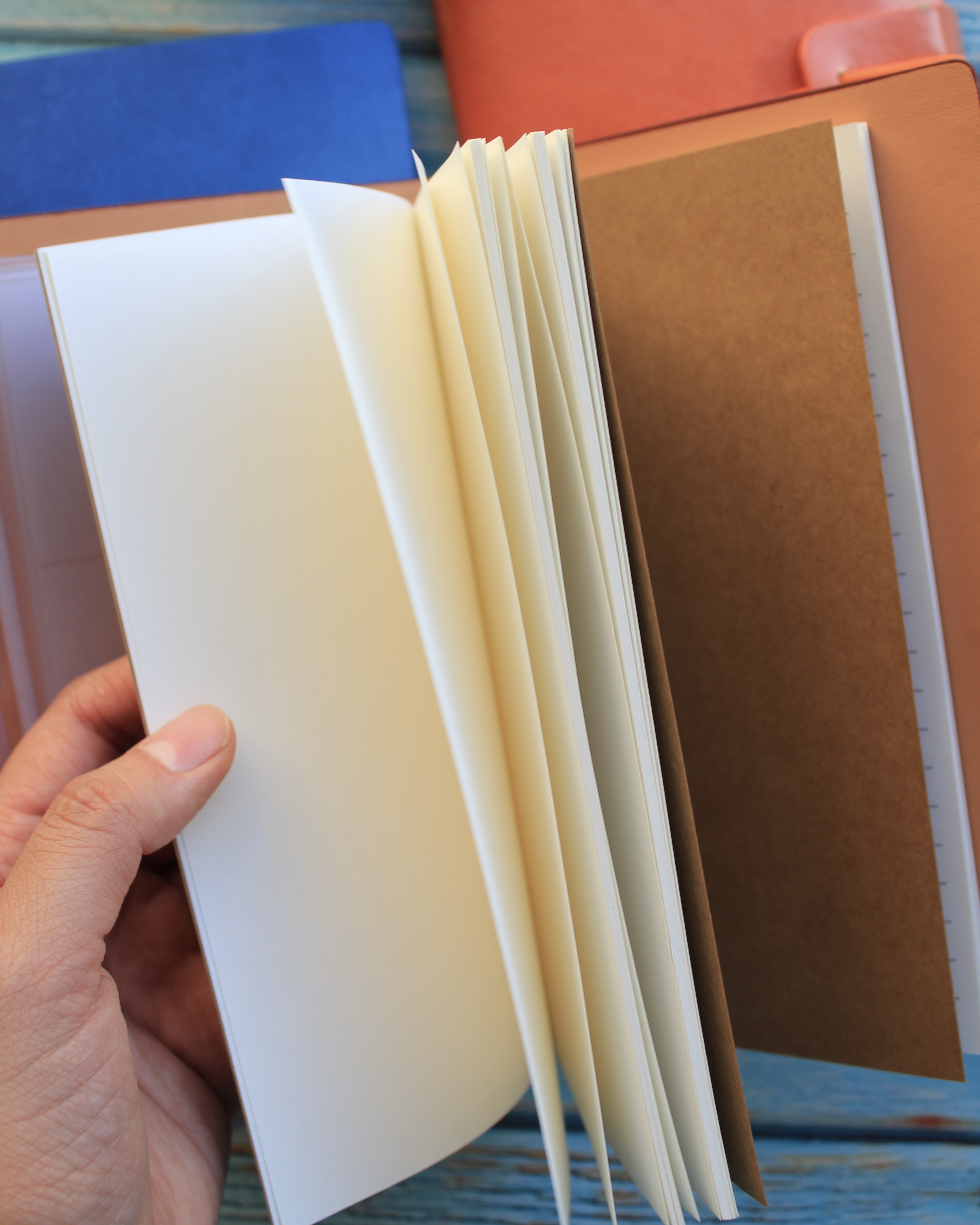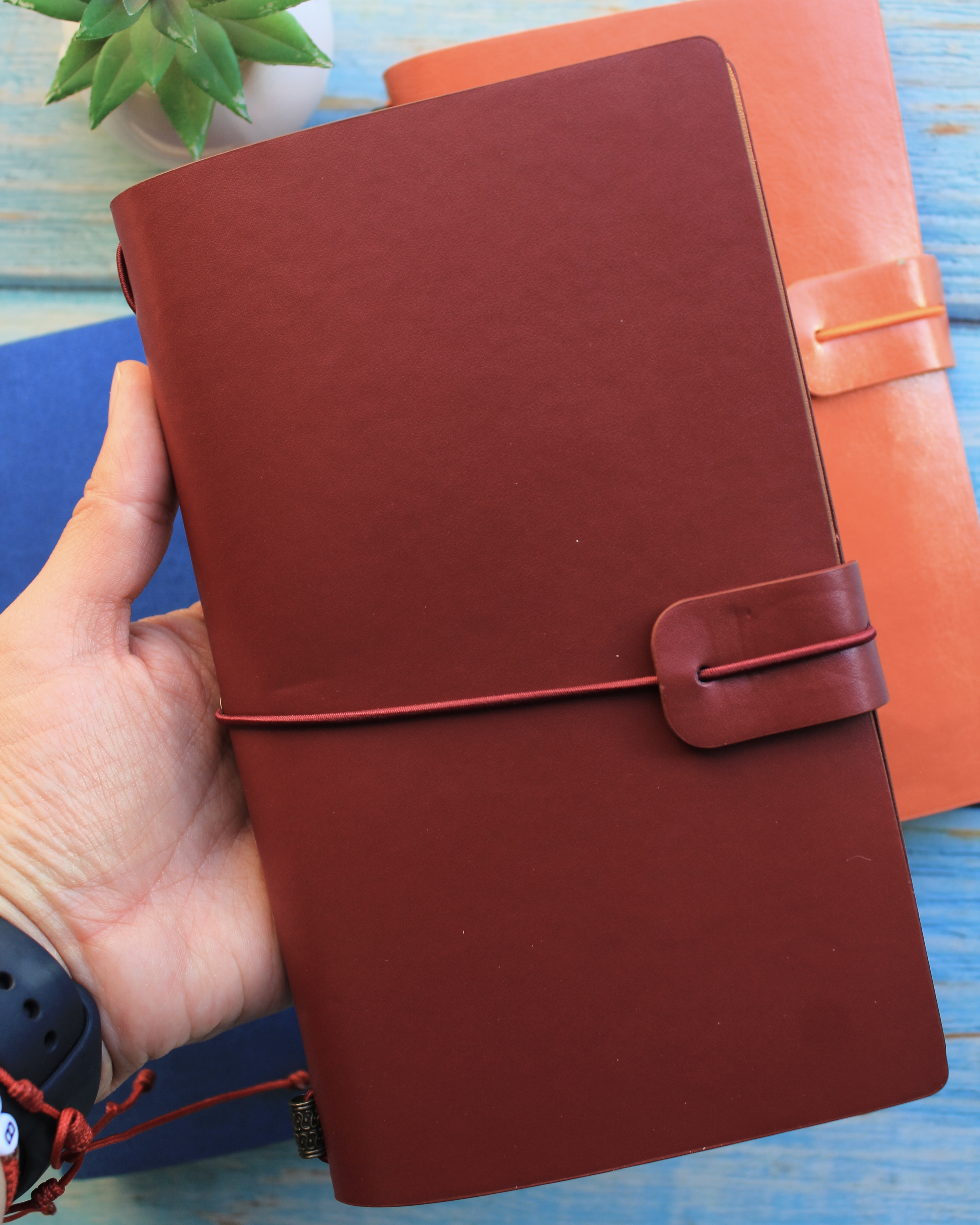Su diseño tipo cuaderno viajero permite personalizar su interior gracias a su sistema de elásticos, que facilita cambiar o agregar libretas según tus necesidades. Además, incorpora sobres plásticos tipo PVC ideales para guardar fotos, stickers, papeles decorativos, tickets, recuerdos o documentos pequeños.