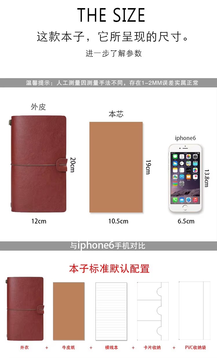 Cuaderno estilo Traveler’s Notebook o cuaderno viajero con cubierta de cuero sintético y bolsillos interiores