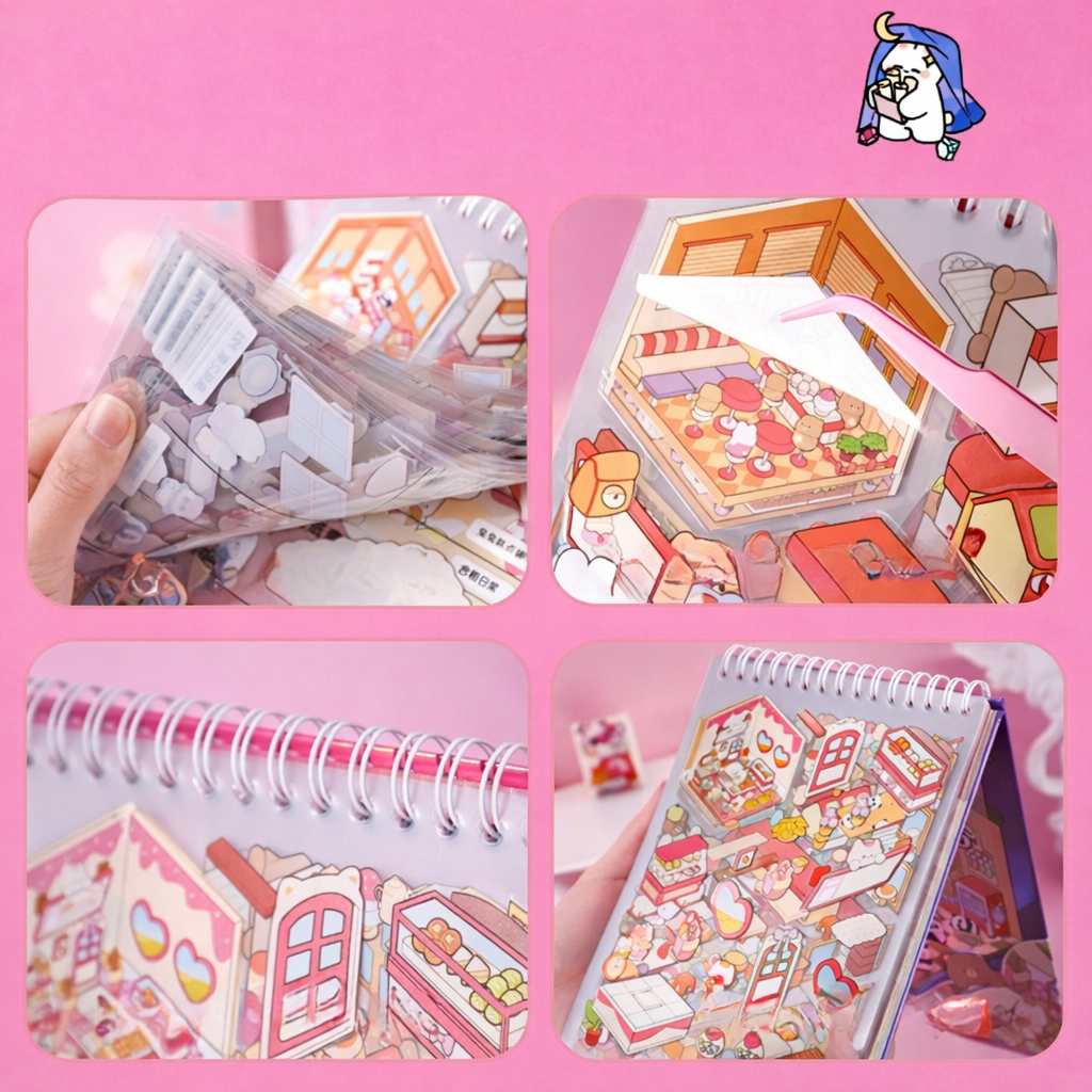 ¡Deja volar tu imaginación y crea tus propias historias! Esta libreta de stickers con escenarios en efecto 3D es perfecta para niños y amantes de la papelería creativa.Incluye páginas ilustradas con distintos escenarios donde podrás pegar y despegar stickers una y otra vez, creando combinaciones únicas en cada uso. Su diseño interactivo fomenta la creatividad, la concentración y el juego libre.