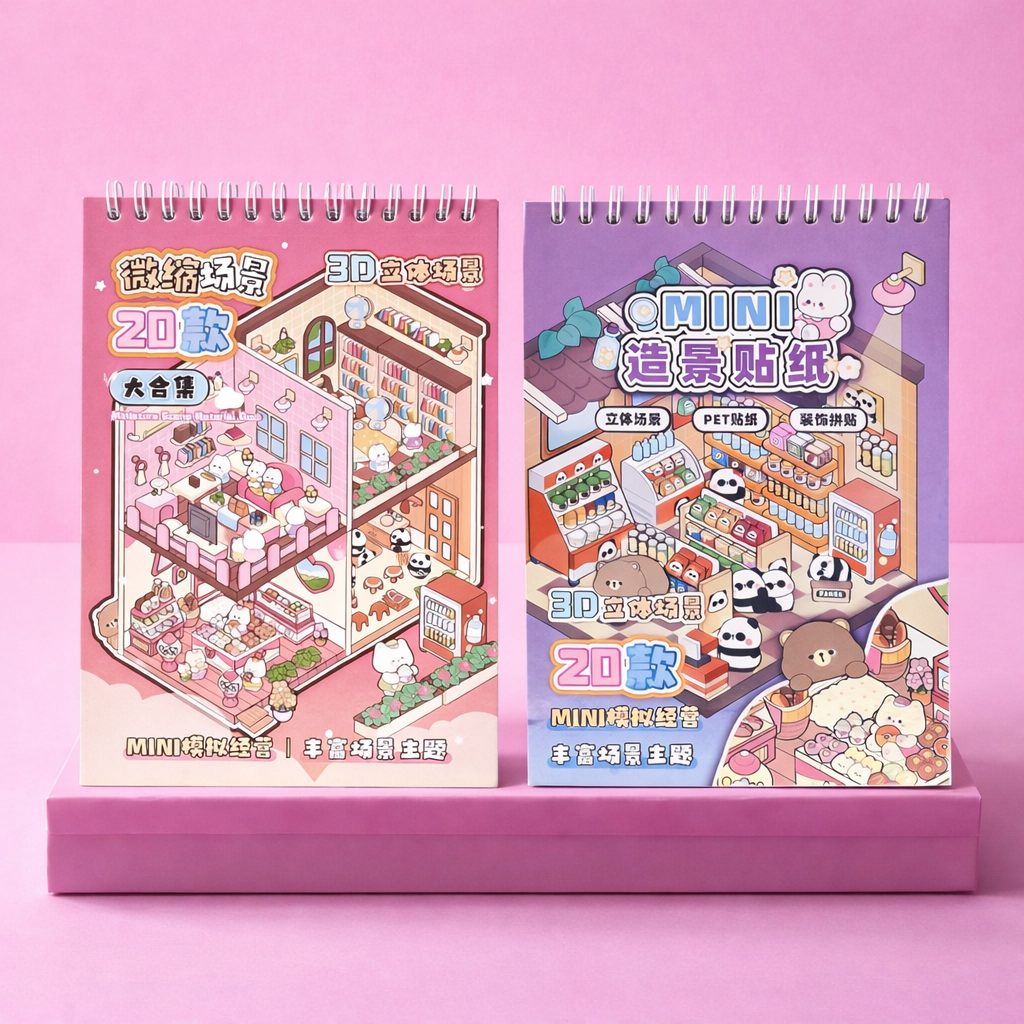 Libreta stickers escenas 3D, 20 Hojas argollada