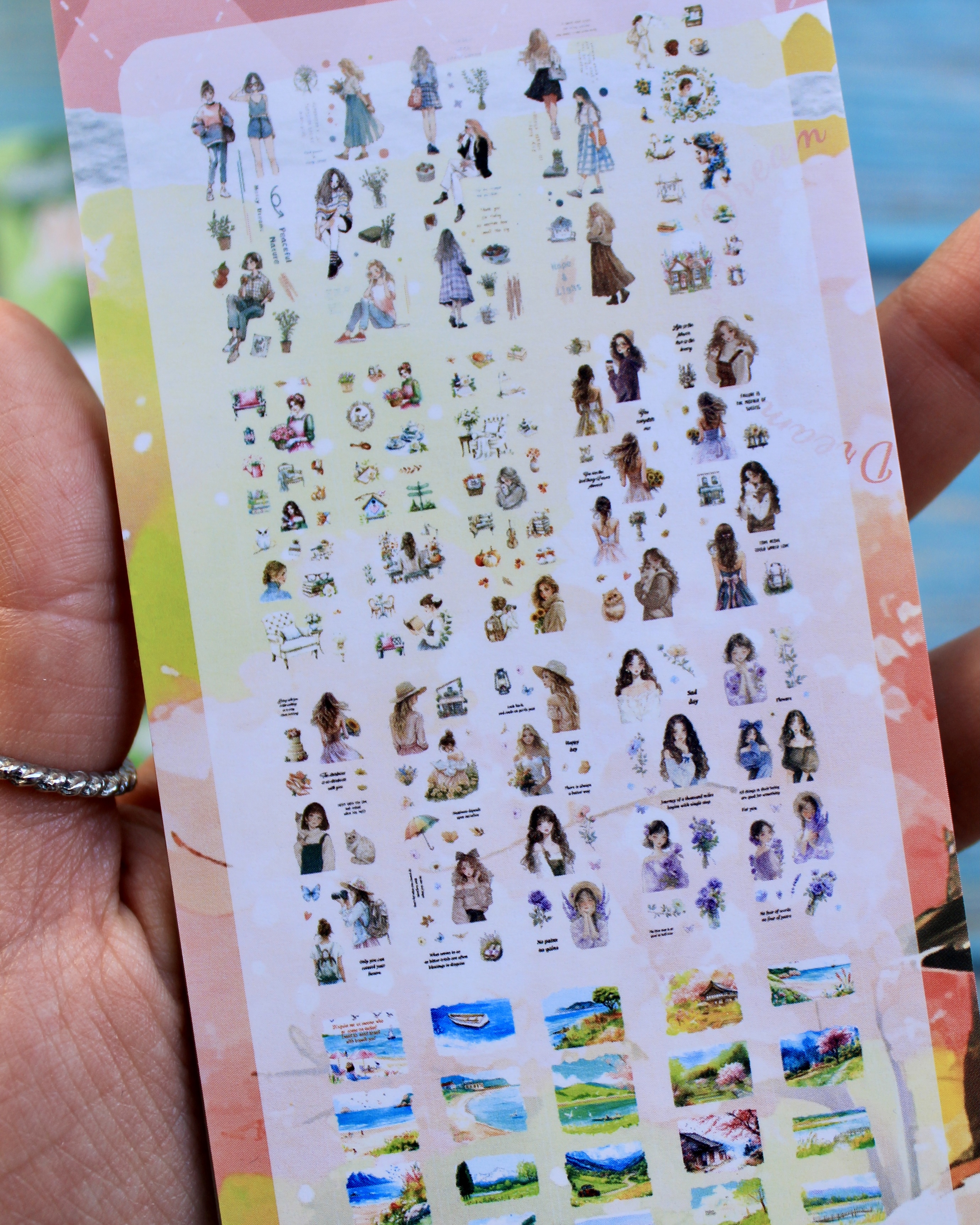 Este lindo librito de stickers incluye 20 laminas de sticker, incluye, chicas, paisajes, accesorios, lo vas a amar
