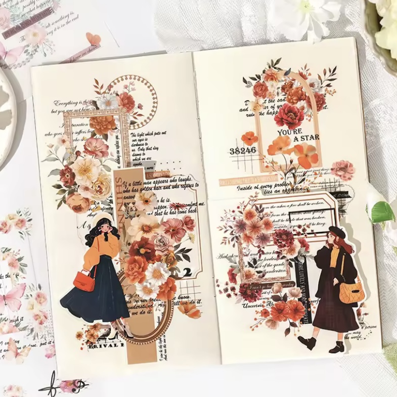 Esta linda libreta de stickers contiene 20 hojitas ideal para fondos, incluye frases, flores marcos