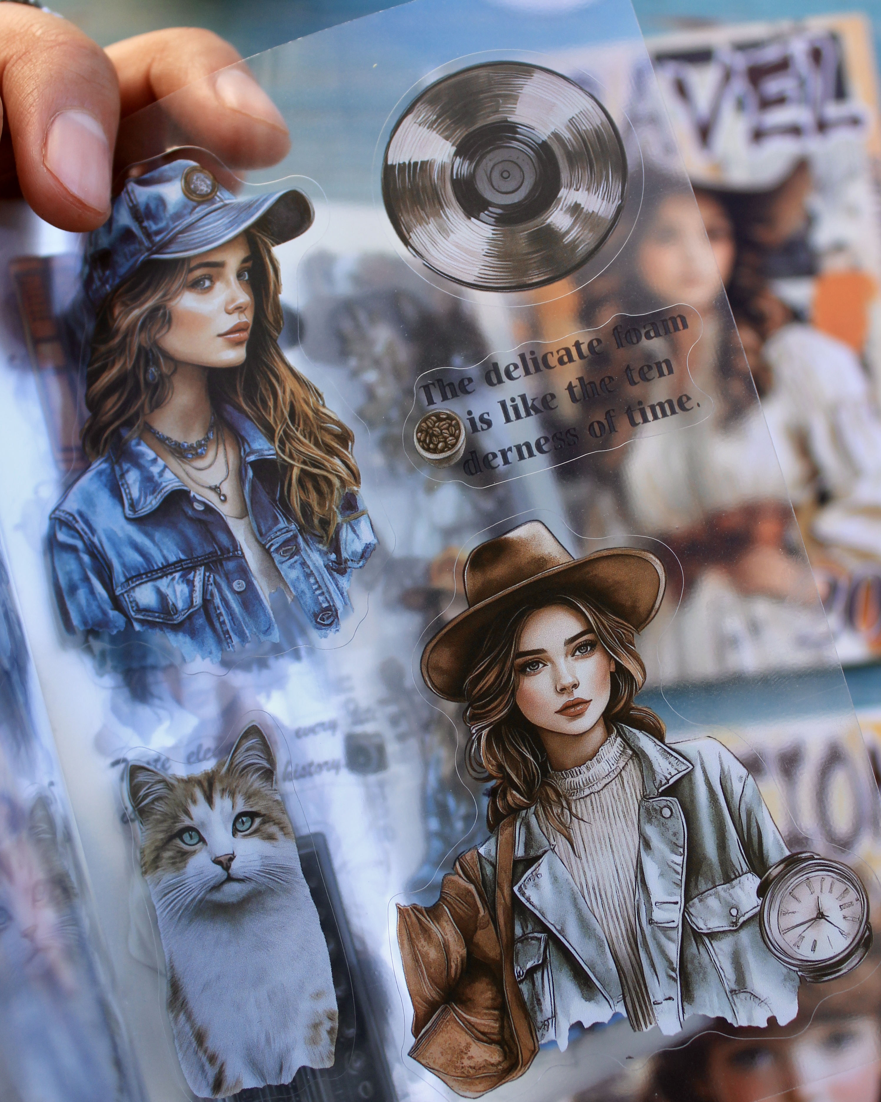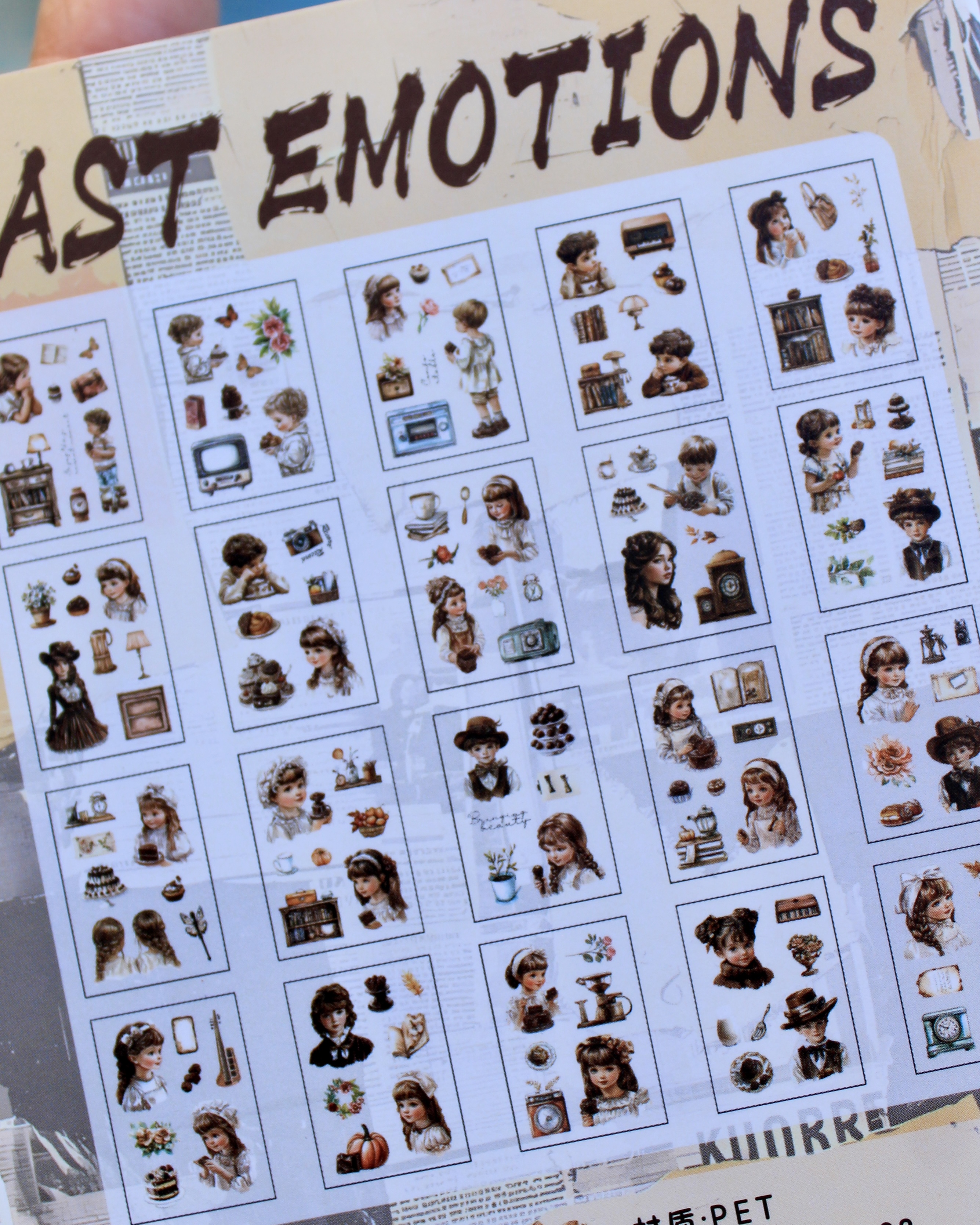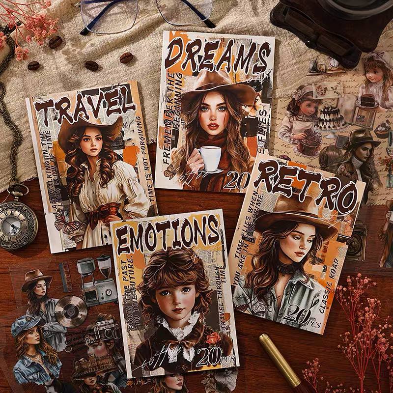 20 hojas de stickers transparentes en diseños vintage