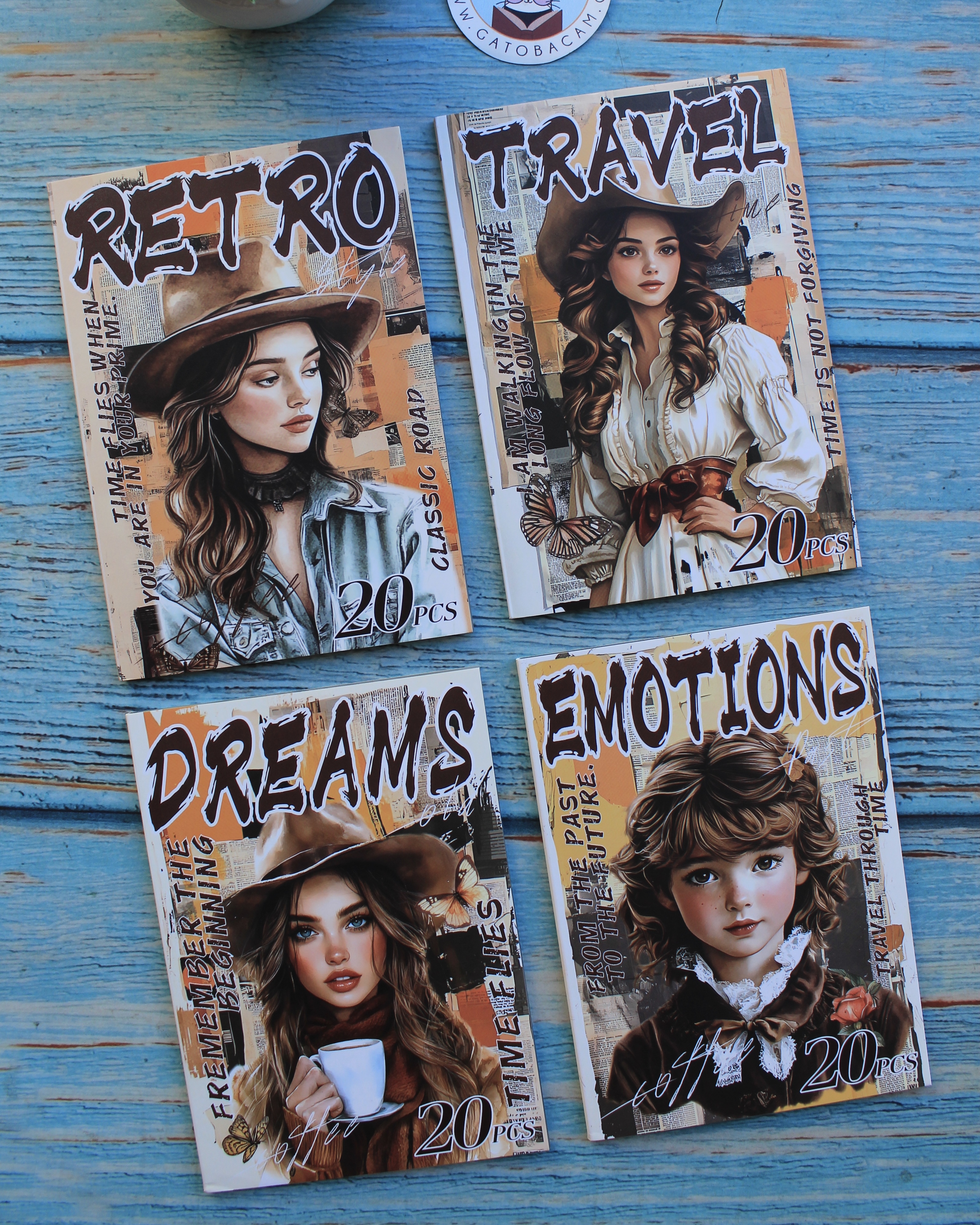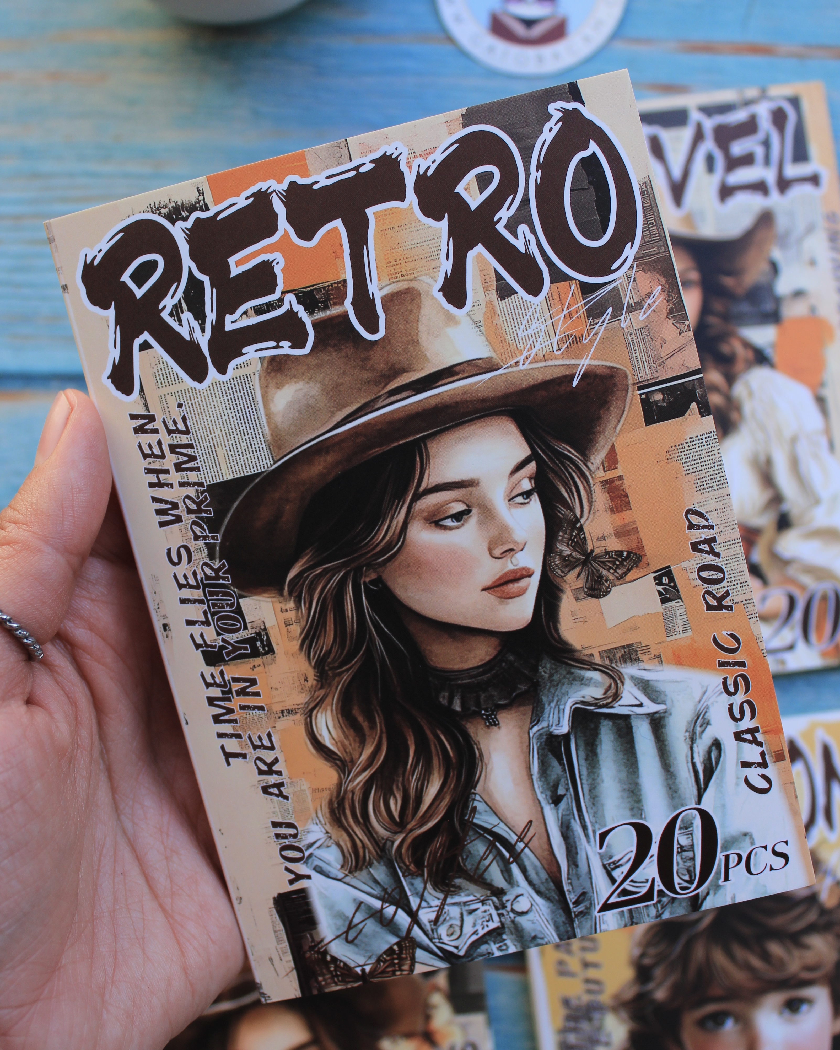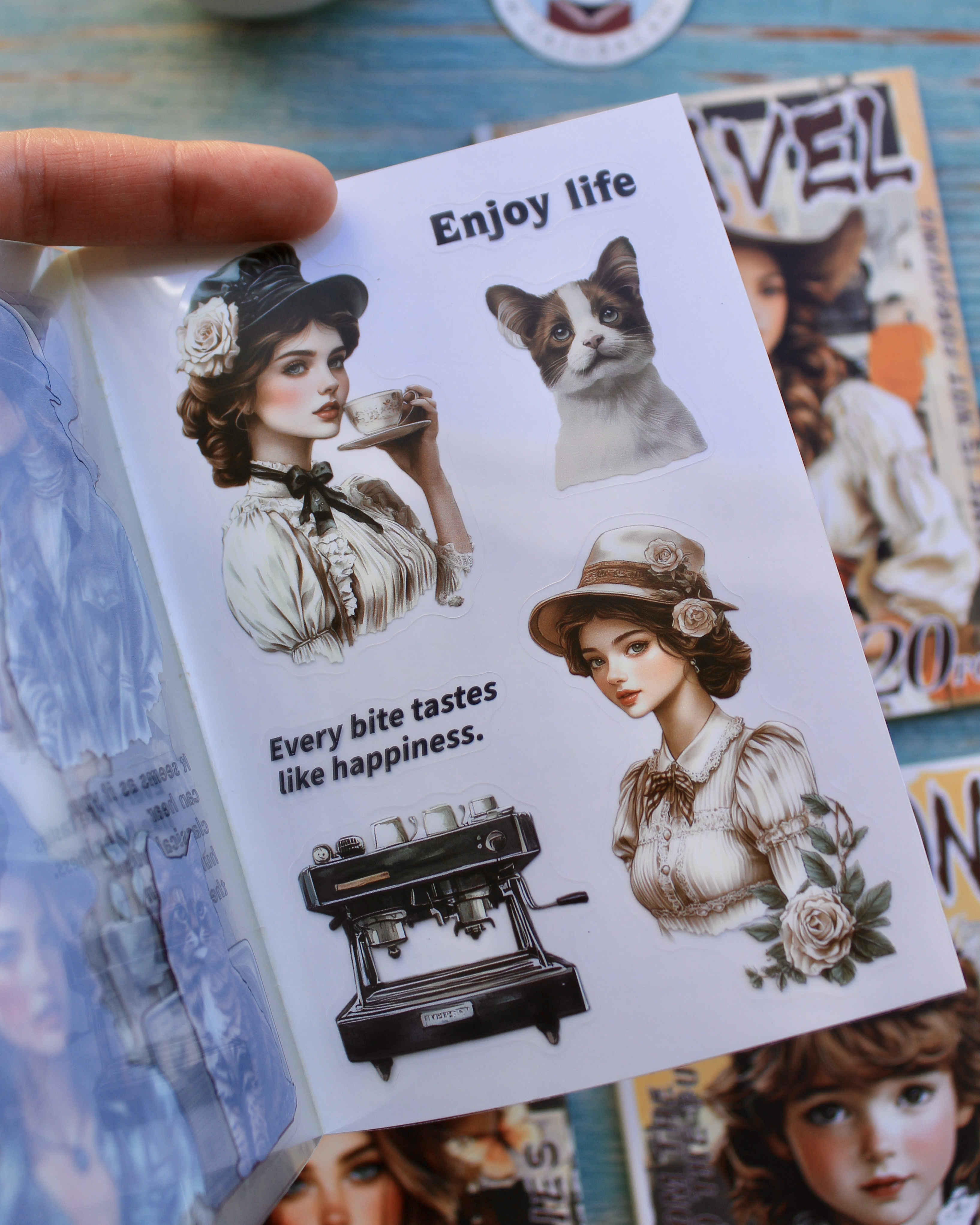20 hojas de stickers transparentes en diseños vintage
