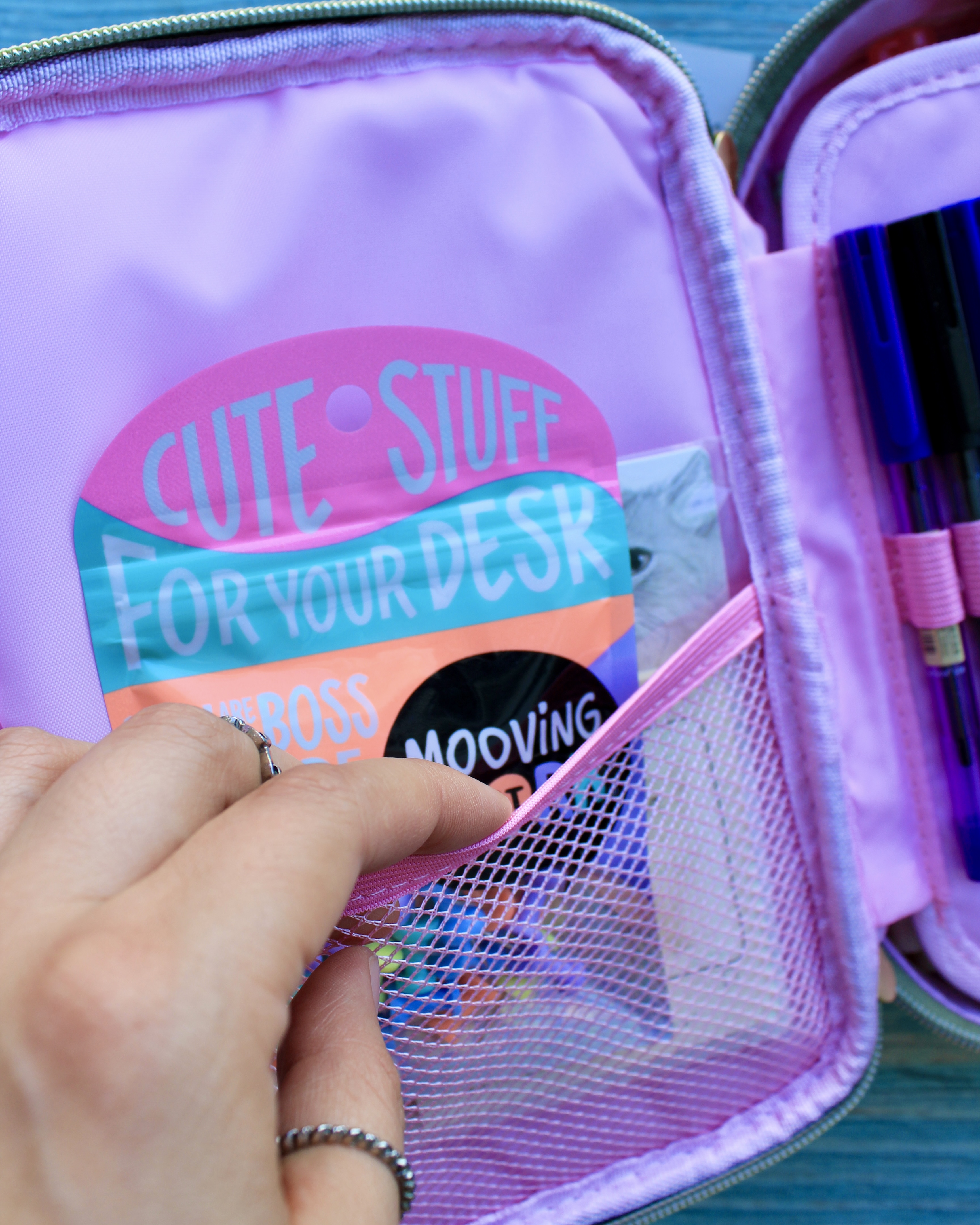 - Compartimento amplio y profundo para útiles