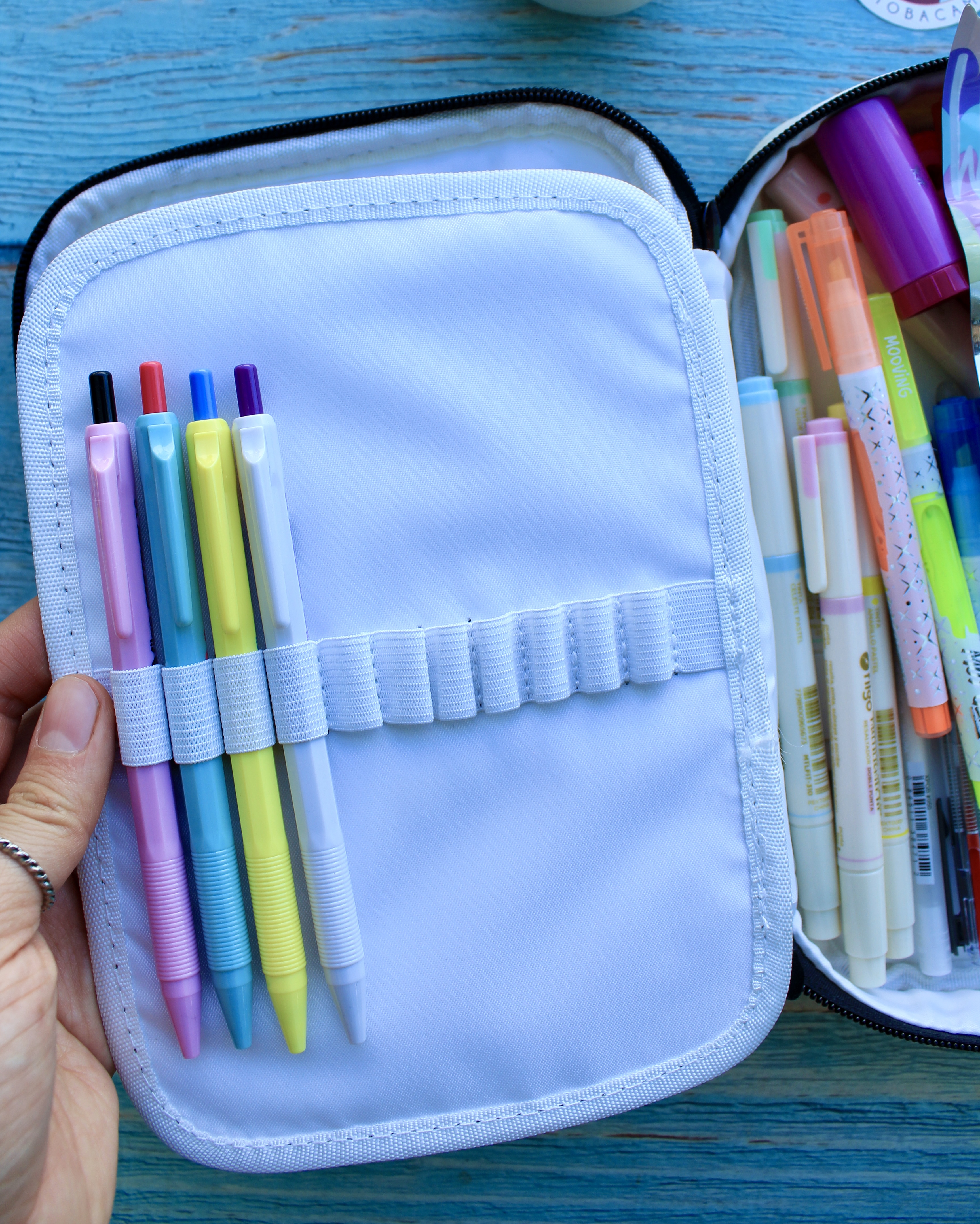 - solapa interior con 24 ranuras para lapices