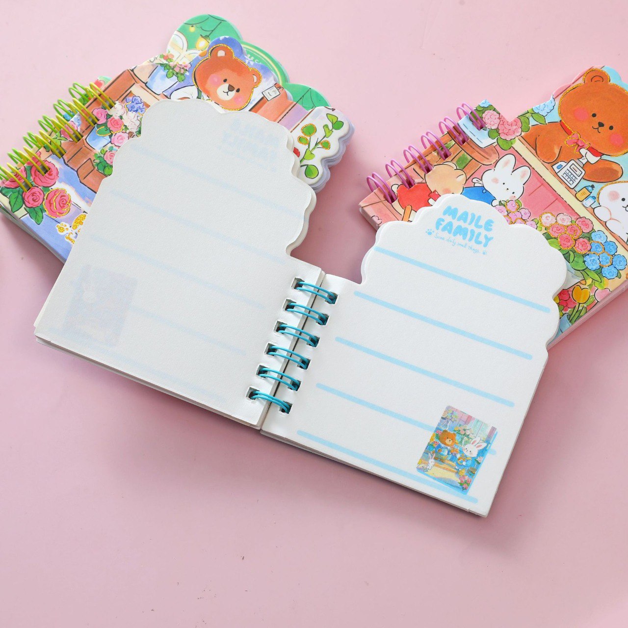 Descubre la Mini Libreta Osito y Conejo de la colección Maile Family, ideal para anotar tus ideas, realizar dibujos o hacer apuntes rápidos. Esta encantadora libreta cuenta con un diseño interior que incluye 60 hojas de colores vibrantes que inspiran y motivan tu creatividad. Con medidas compactas de 8.3 x 11 cm, es perfecta para llevarla en tu bolso o mochila, permitiéndote tener siempre a mano un lugar para plasmar tus pensamientos.