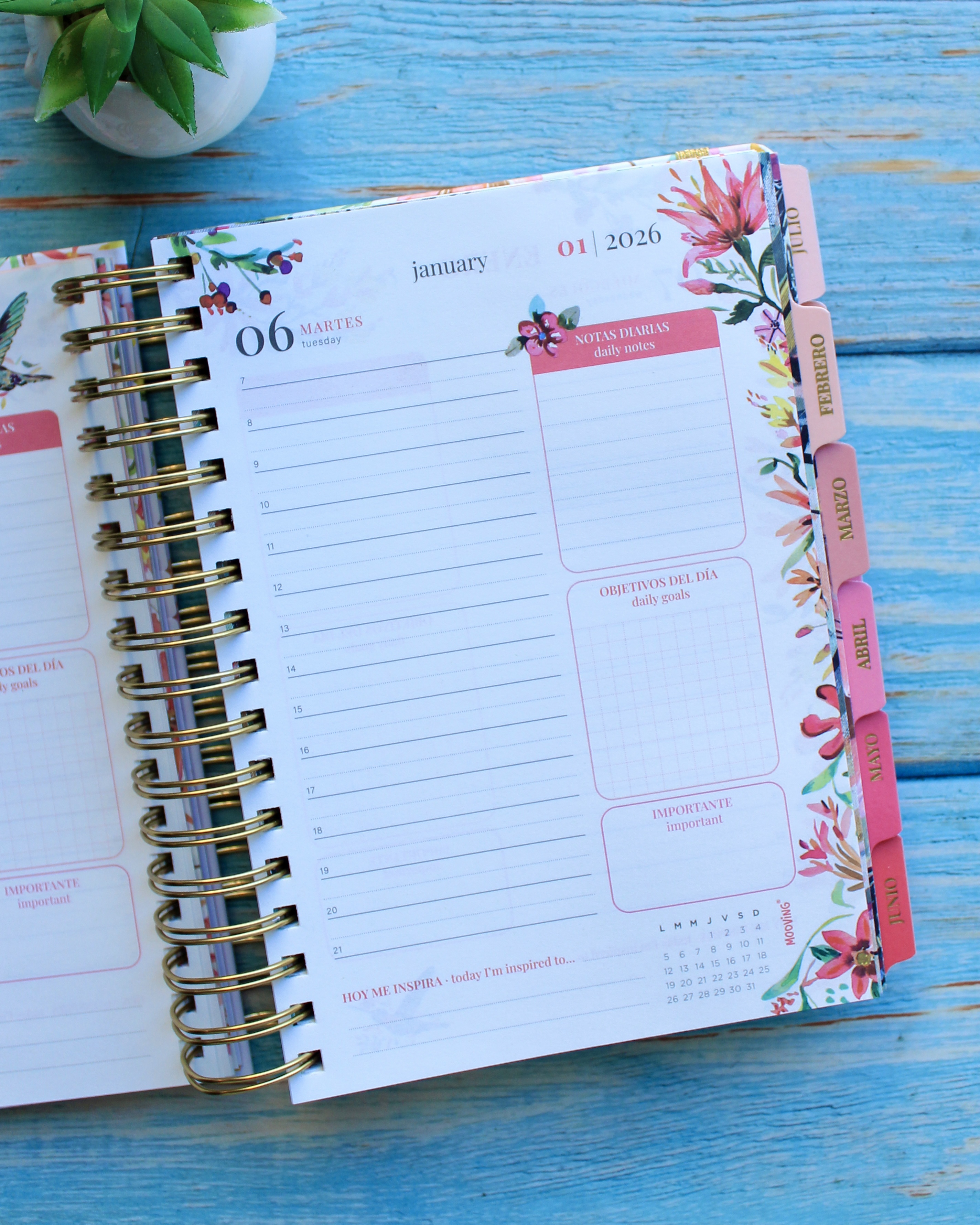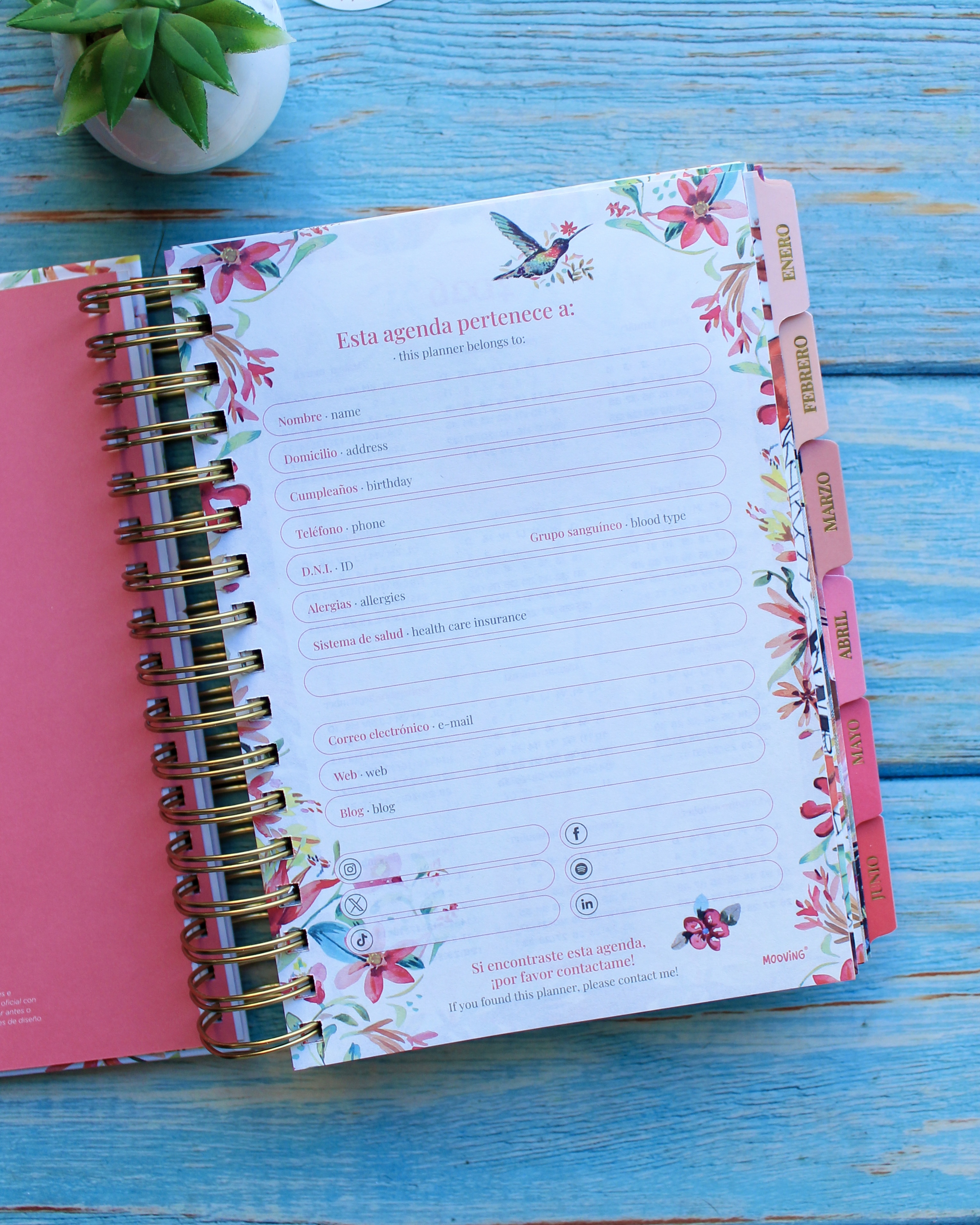 - 400 páginas + carátulas mensuales de papel pesado con mylar.