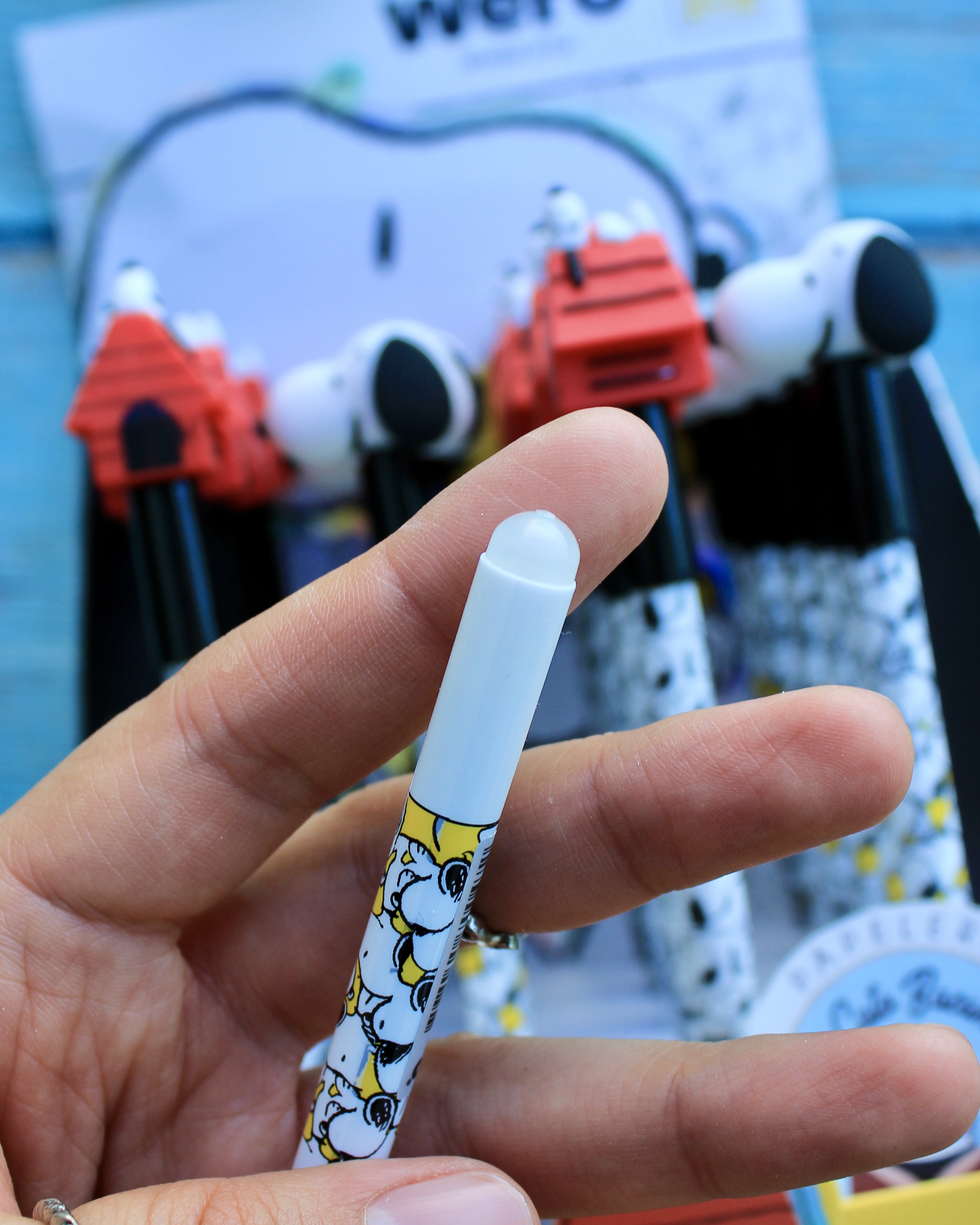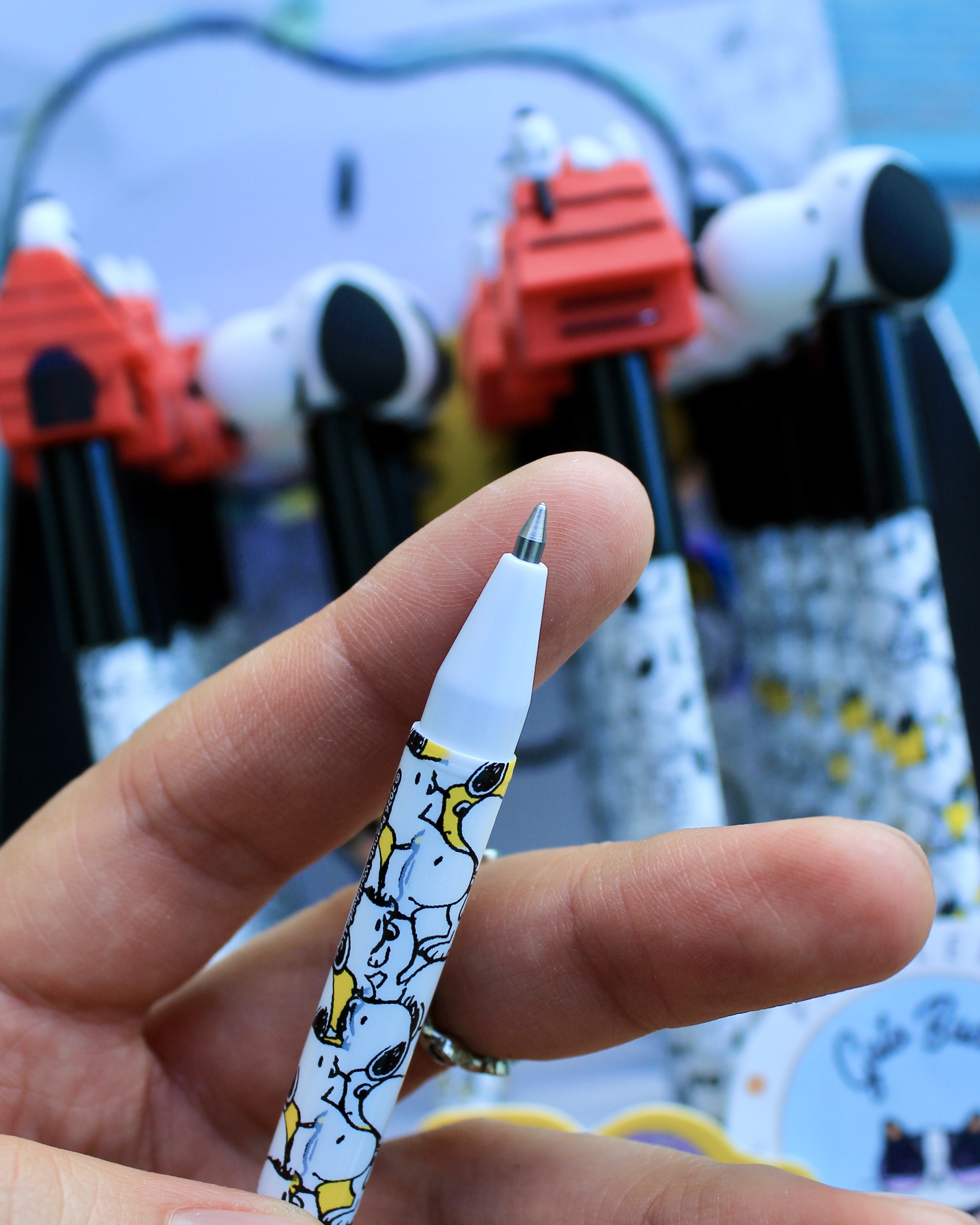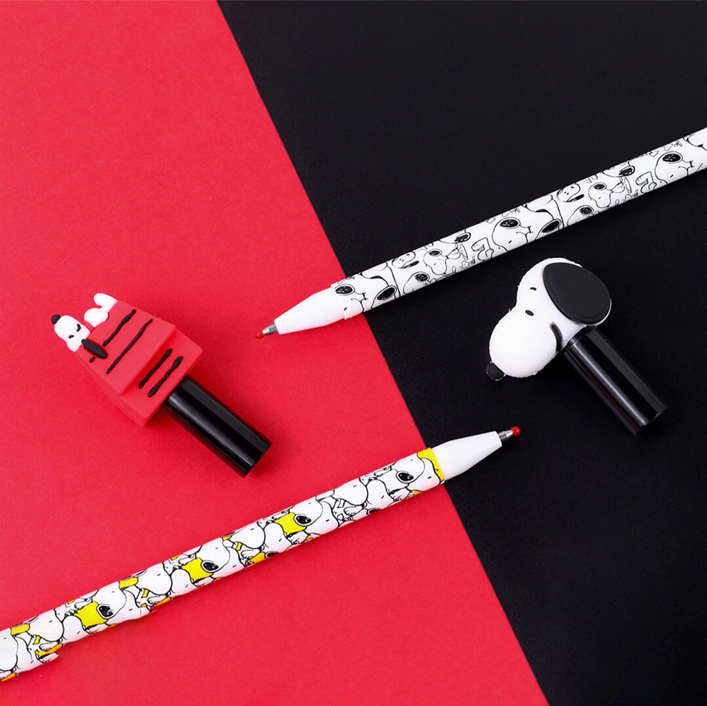 Su atractivo diseño inspirado en SNOOPY presenta detalles en silicona que no solo ofrecen un agarre cómodo, sino que también añaden un toque divertido a tu escritorio. Este bolígrafo utiliza un repuesto standard, lo que facilita su recarga y uso continuo.