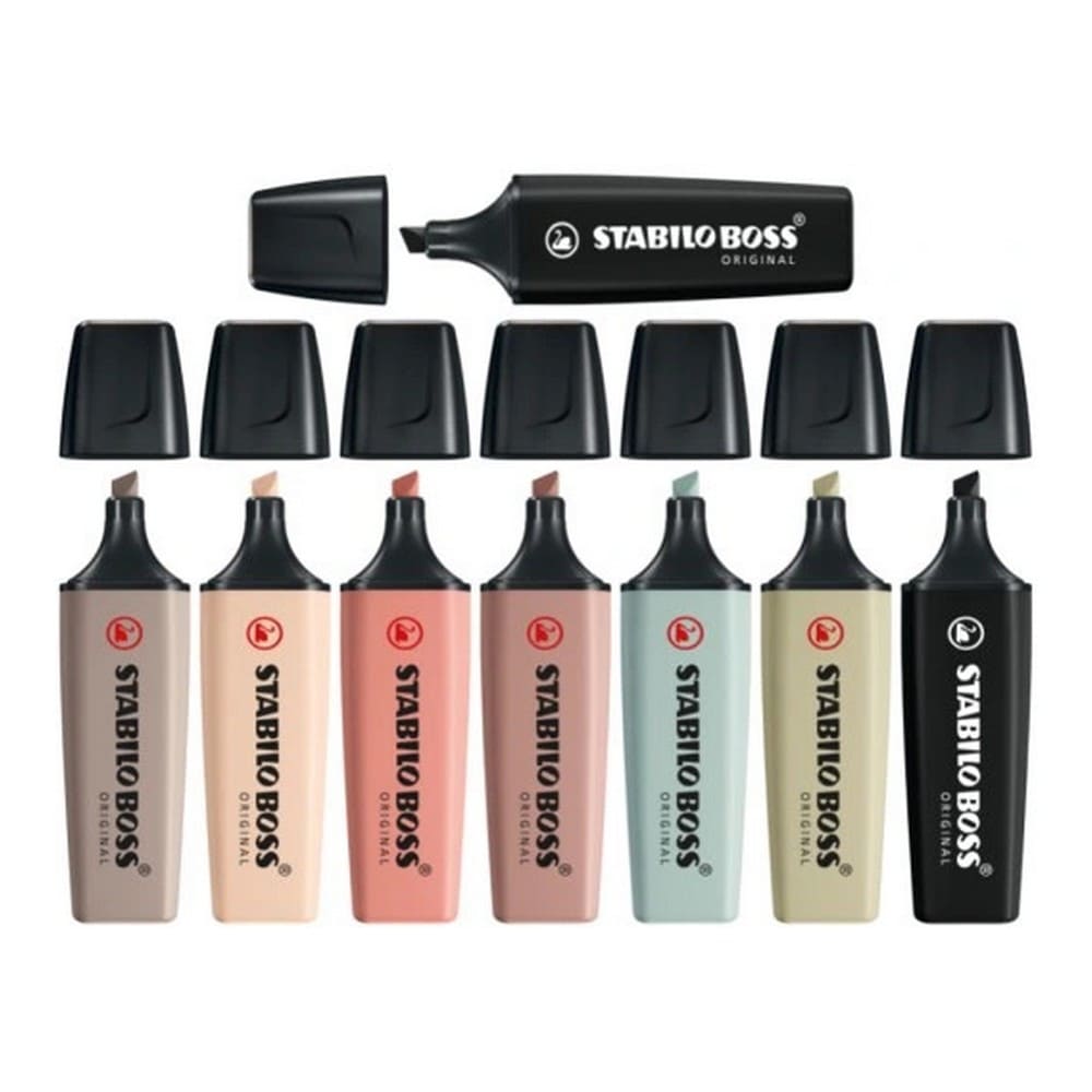 Set de 8 Destacadores Stabilo Boss Original (6 Nature Colors + 2 Negros)