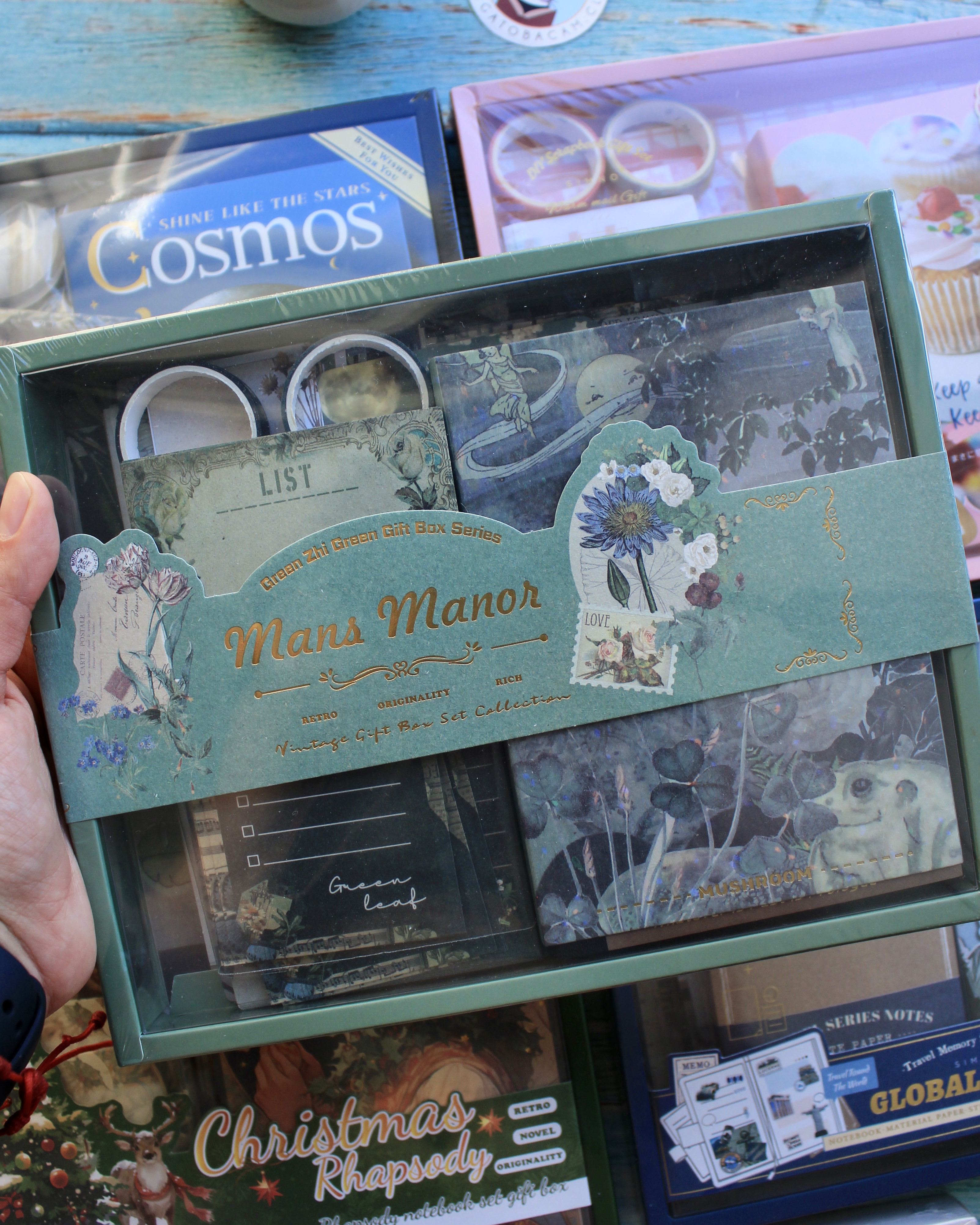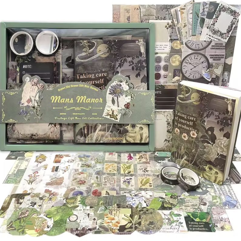 Este completo kit incluye una variedad de papeles decorativos, stickers, tarjetas, notas y accesorios cuidadosamente diseñados para que cada creación tenga un toque elegante y creativo.