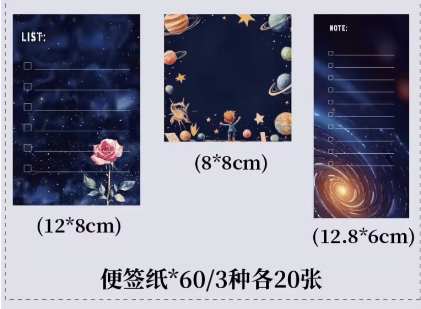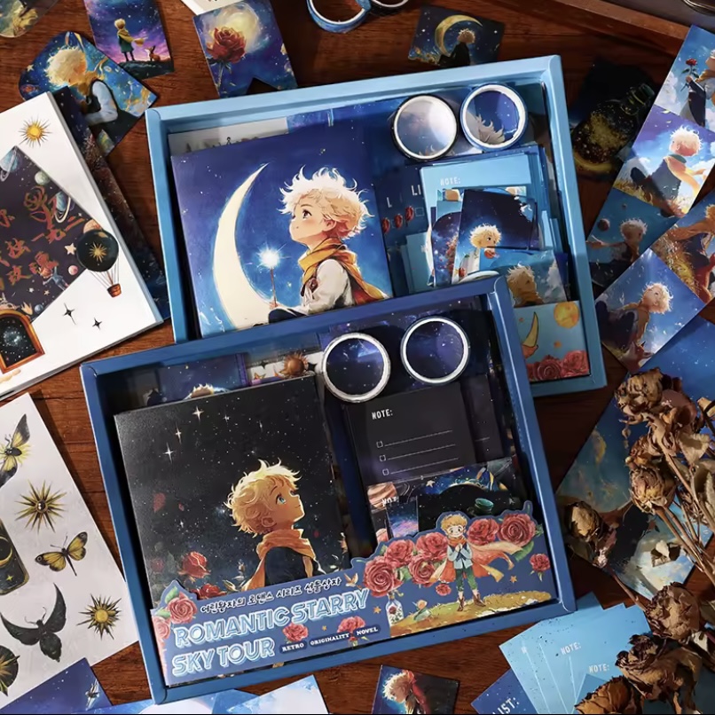 Deja volar tu creatividad con este hermoso set de scrapbooking inspirado en el Principito. este set es perfecto para quienes aman documentar recuerdos, decorar agendas, journaling o crear proyectos artísticos únicos.