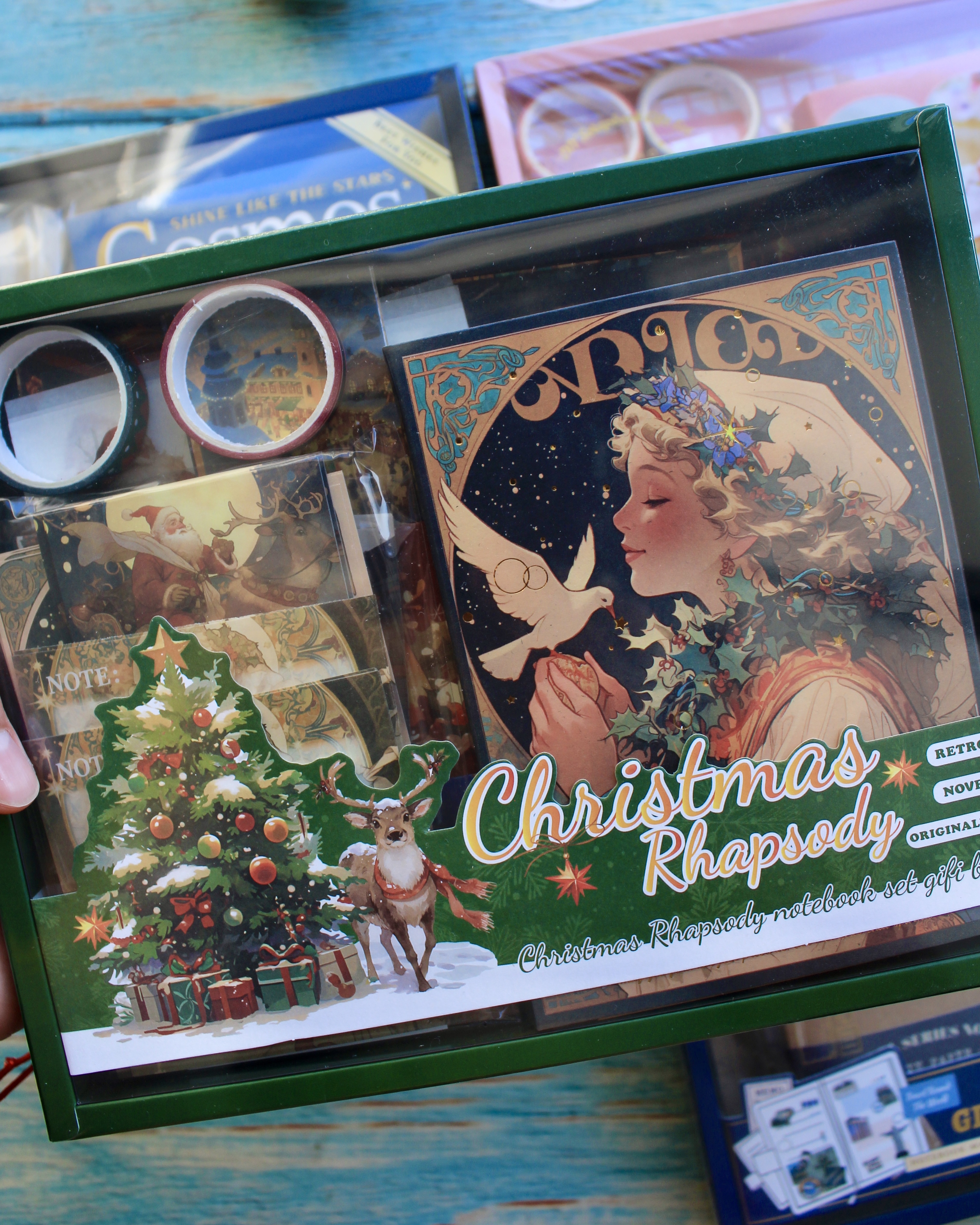 Este completo kit incluye una variedad de papeles decorativos, stickers, tarjetas, notas y accesorios cuidadosamente diseñados para que cada creación tenga un toque elegante y creativo.