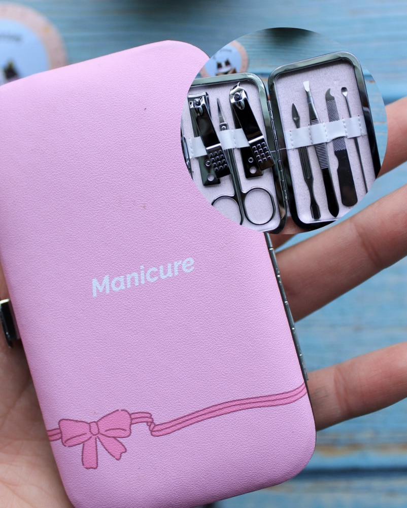 - Juego de 7 piezas: 1 x tijeras de uñas de boca plana 1 x tijeras de uñas oblicuas 1 x tijeras para cejas 1 lima de uñas 1 pinza para cejas 1 x pala de dos extremos 1 x espatula para oidos, 1 x Empujador de piel muerta.