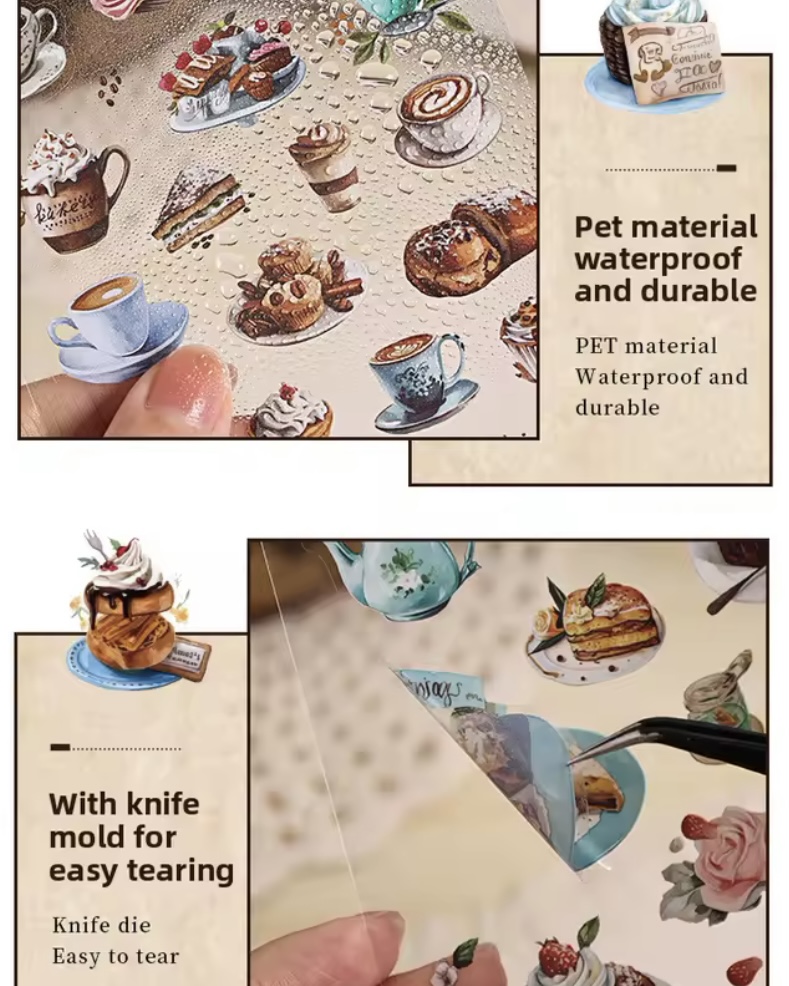 Fabricados con material PET de alta calidad, los Stickers Café ofrecen una resistente adherencia y colores vibrantes, asegurando que tus decoraciones luzcan espectaculares. Con un tamaño práctico de 10 × 15 cm, son perfectos para personalizar planners, journals, agendas, cuadernos y más, además de ser ideales para scrapbooking y packaging creativo.