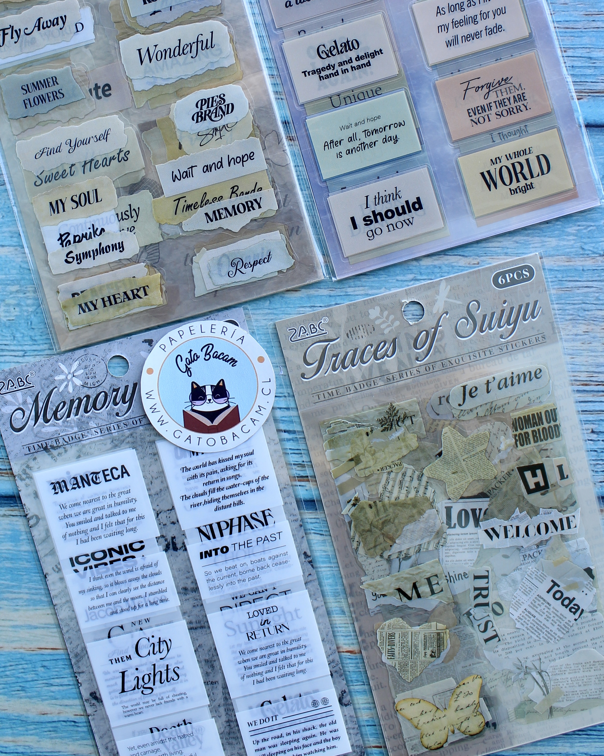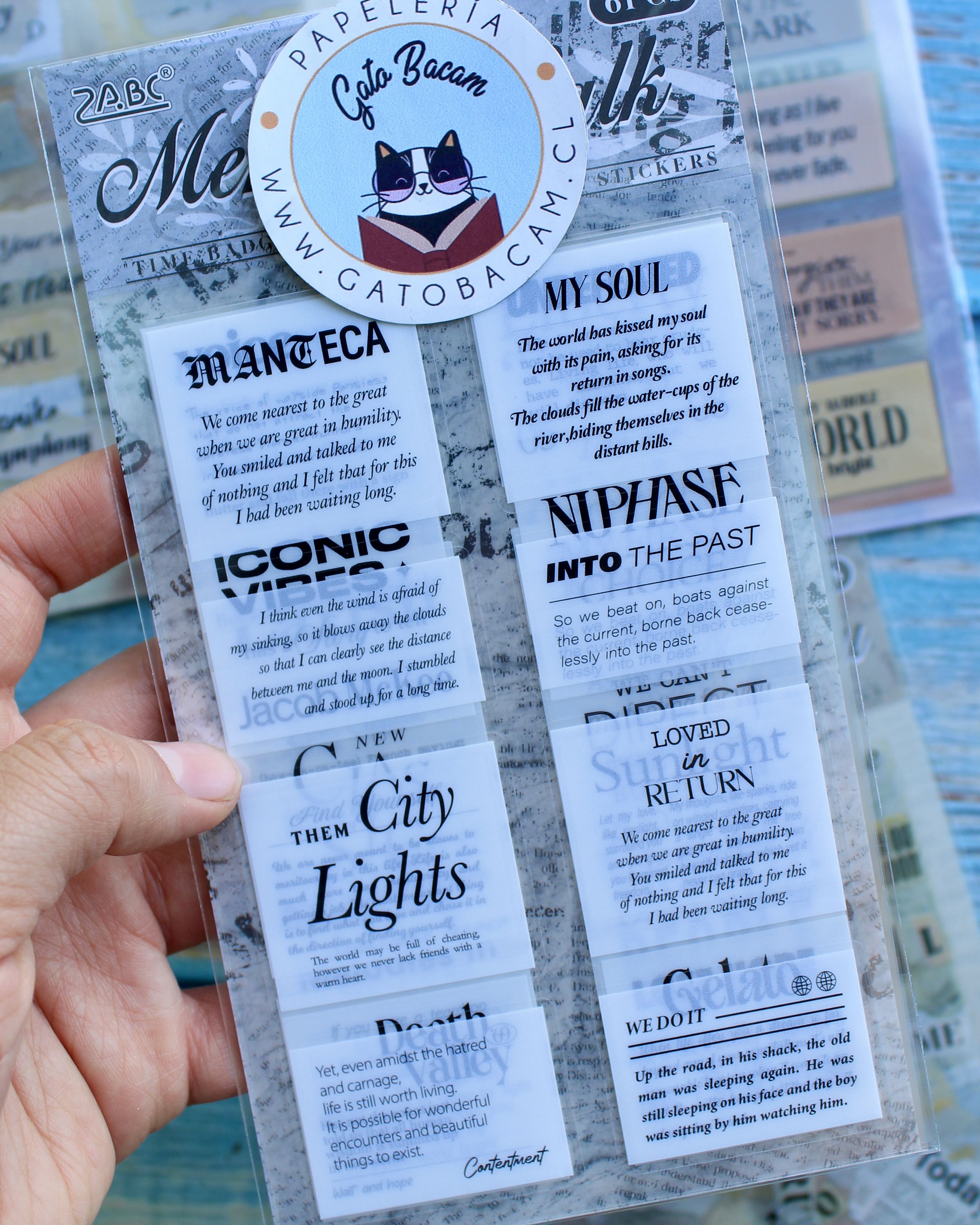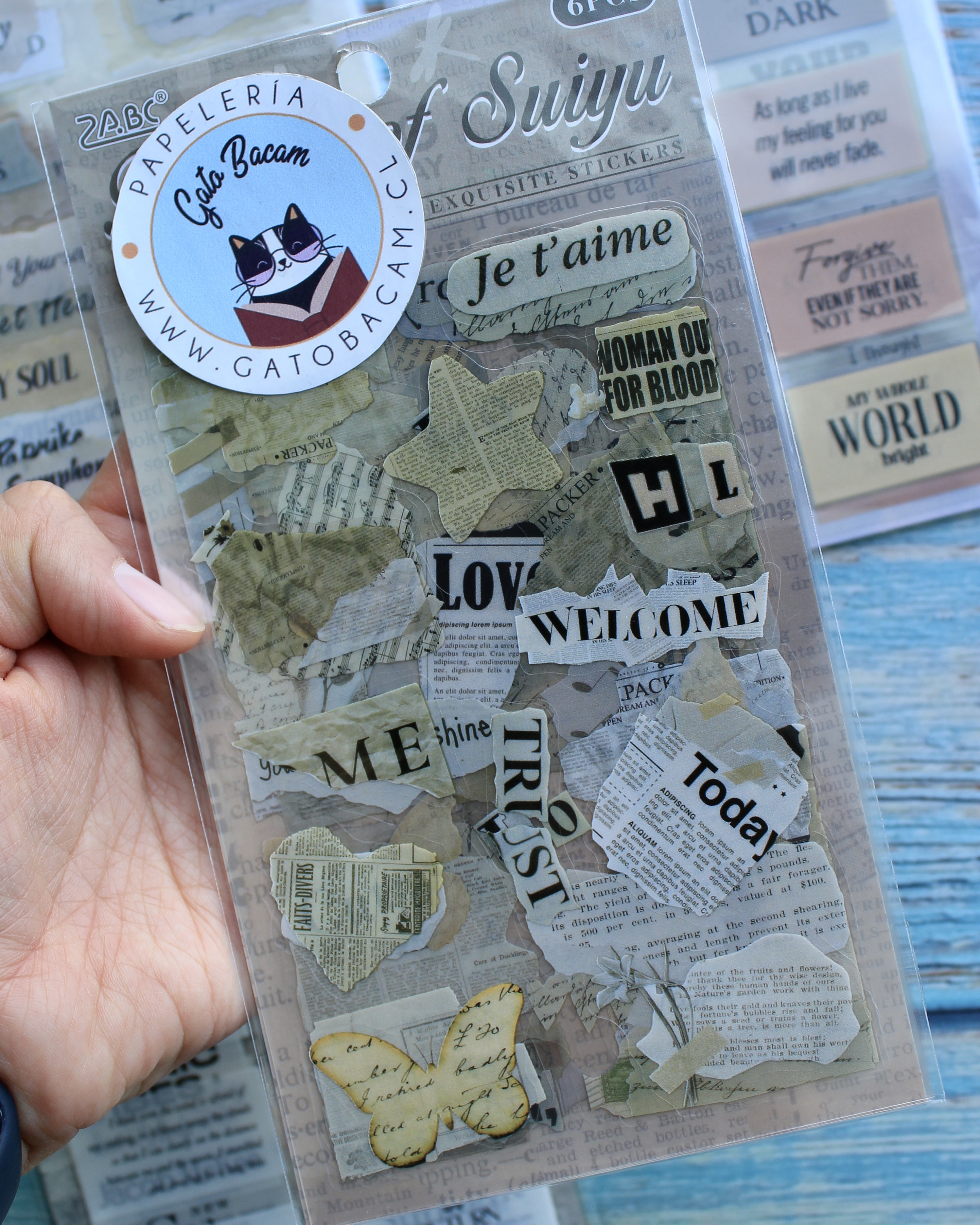 6 laminas de stickers con frases para decorar lo que desees