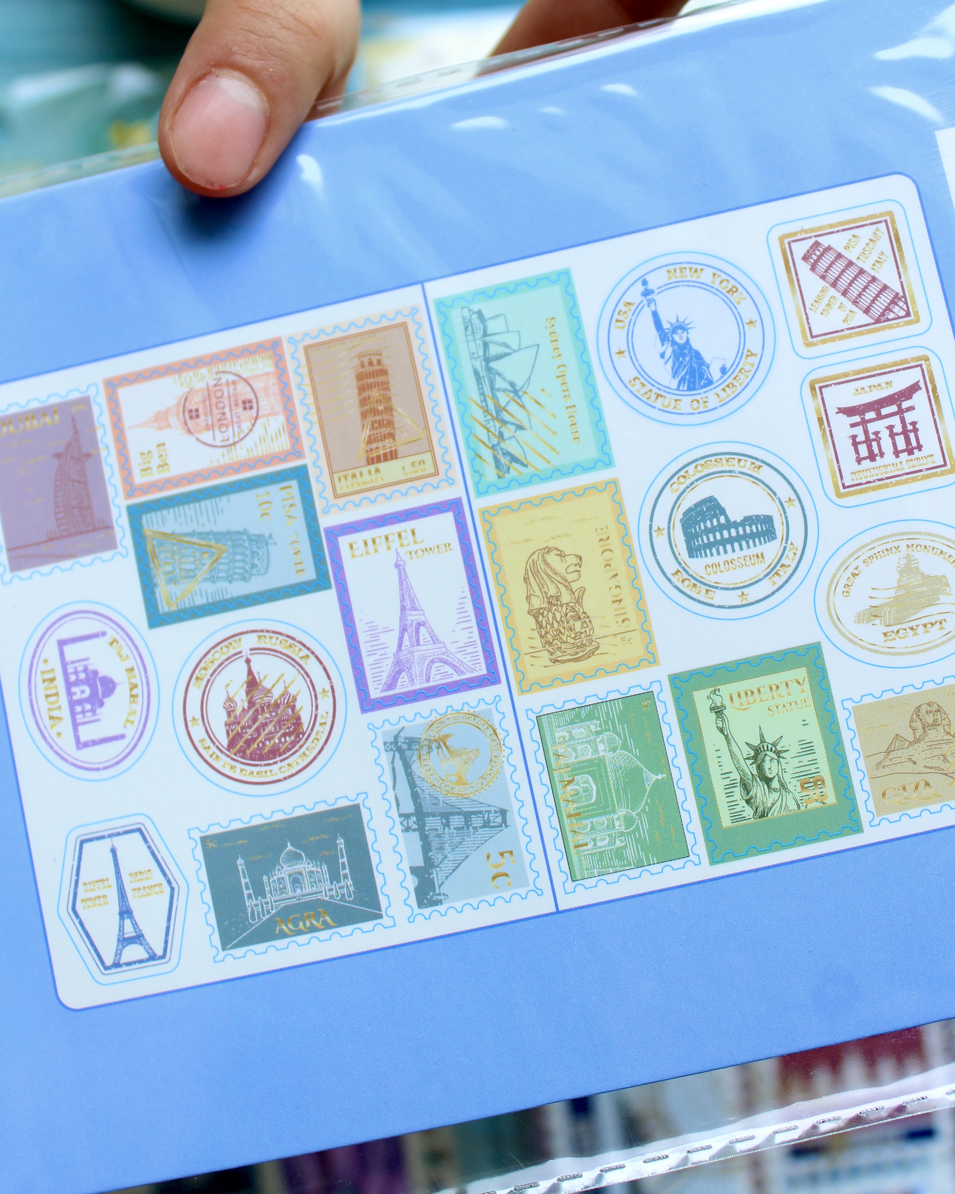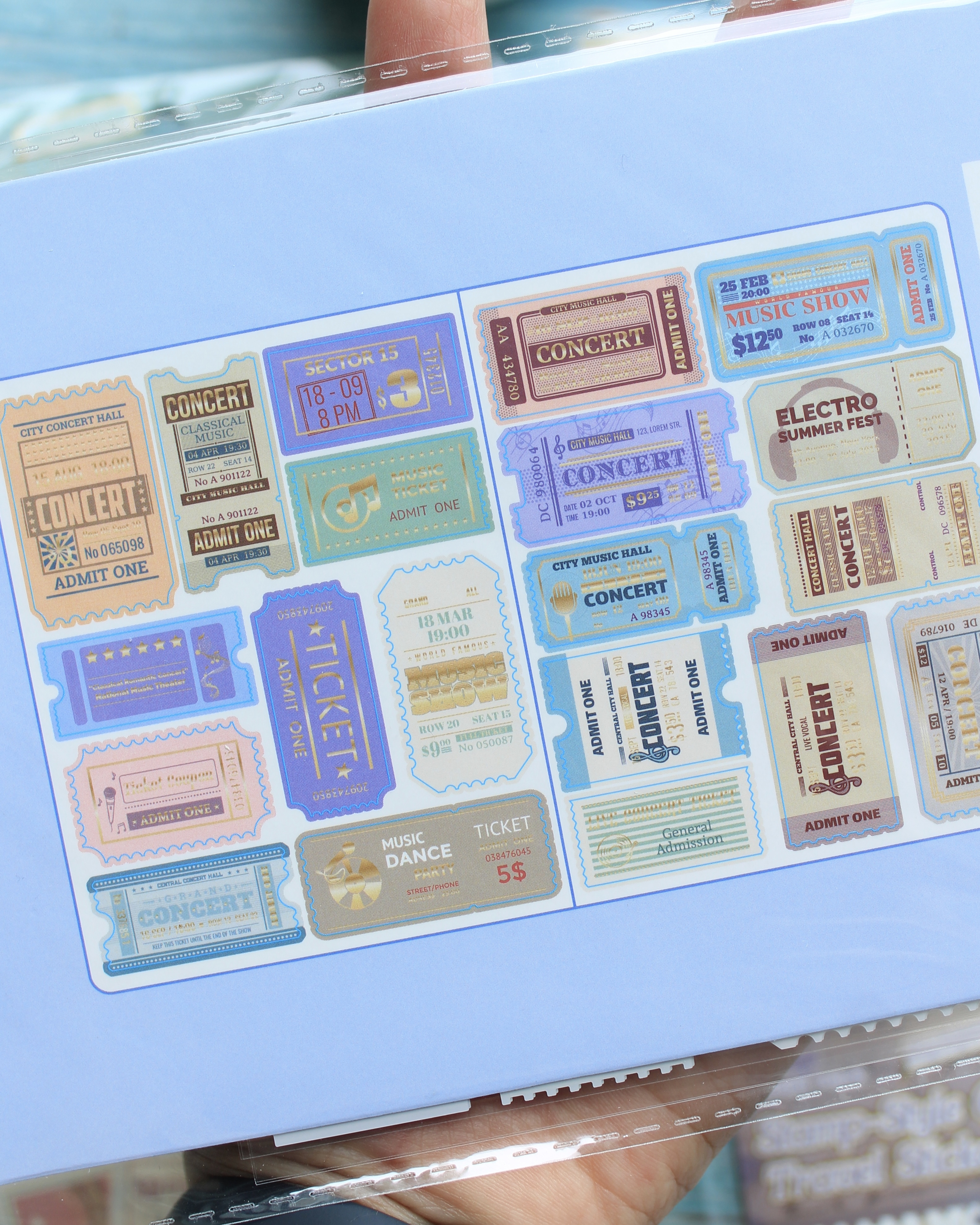 Este hermoso set incluye 4 laminas de stickers con detalles en dorado