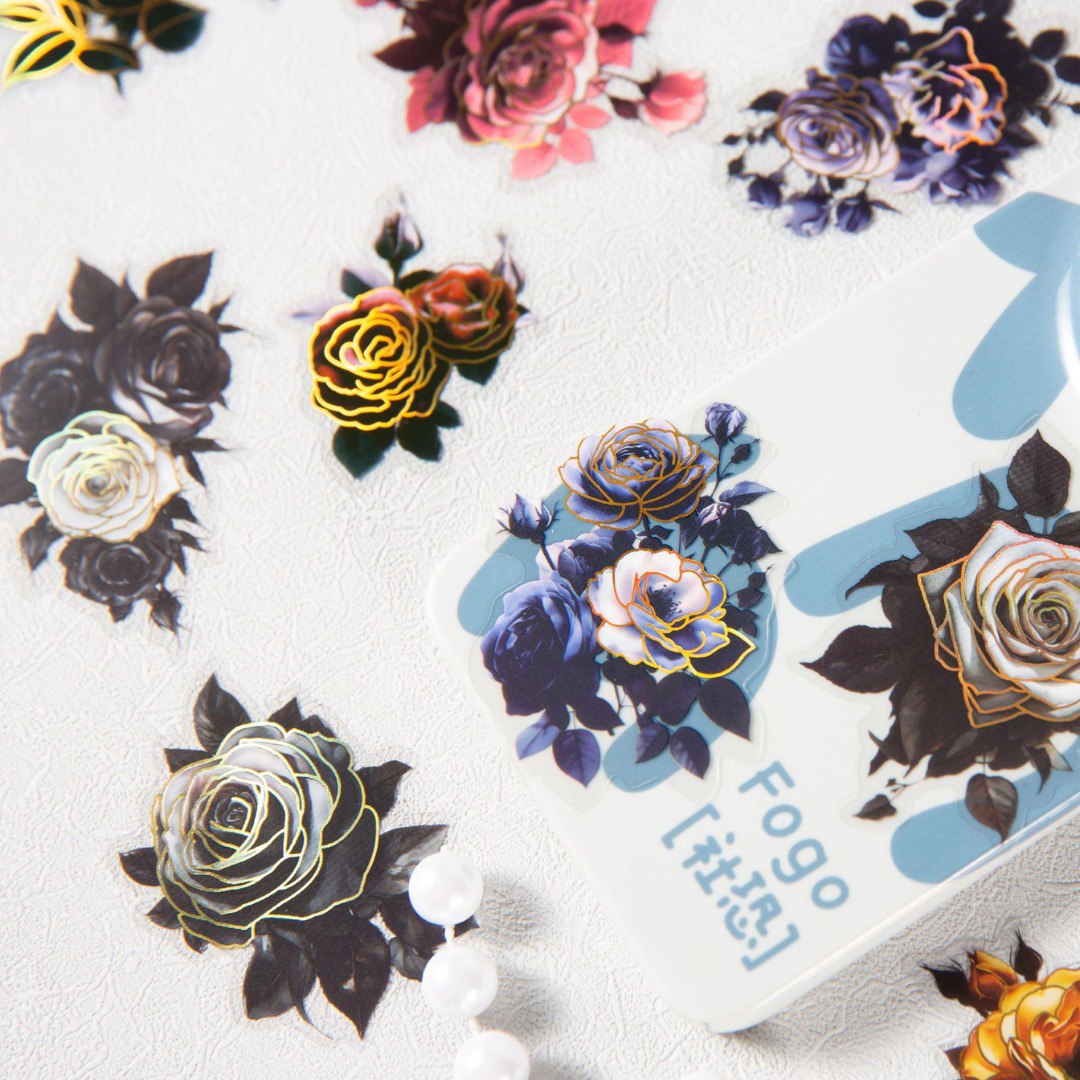 Descubre nuestro exclusivo Set de Stickers Flores Negras con Detalles Dorados. Estos elegantes stickers, con un tamaño de 7,5x9,5 cm, cuentan con un fondo negro que contrasta perfectamente con delicadas flores y sofisticados detalles en dorado, lo que los hace perfectos para personalizar tus cuadernos, agendas o cualquier objeto que desees destacar.