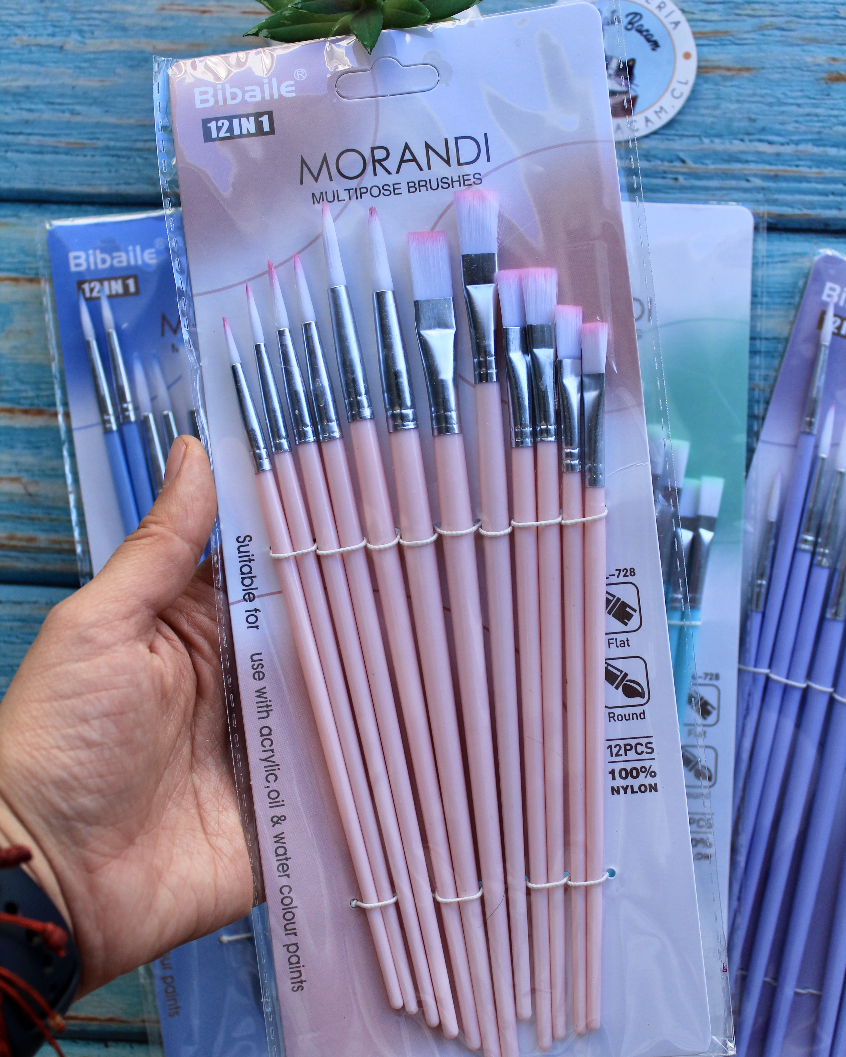 Set de Pinceles Pastel 12 piezas: kit práctico y aesthetic para pintura y manualidades. Ideal para colegio, talleres y proyectos creativos, combina diseño en tonos pastel con funcionalidad para lograr trazos y detalles variados.