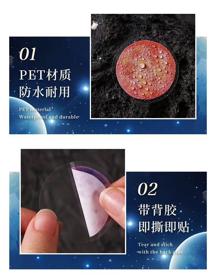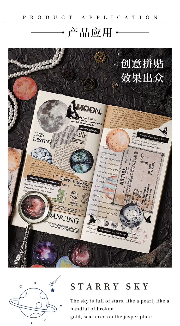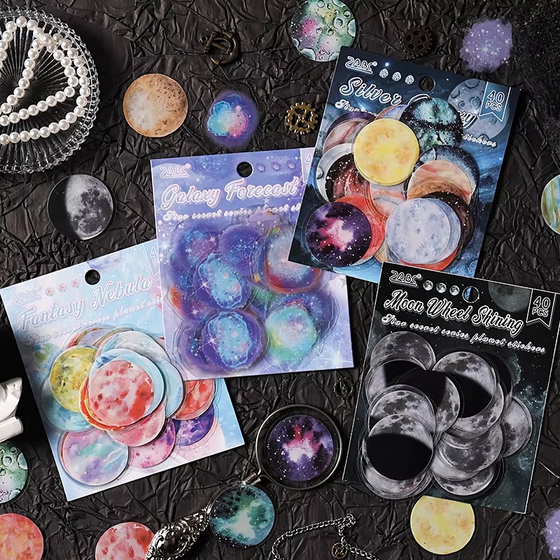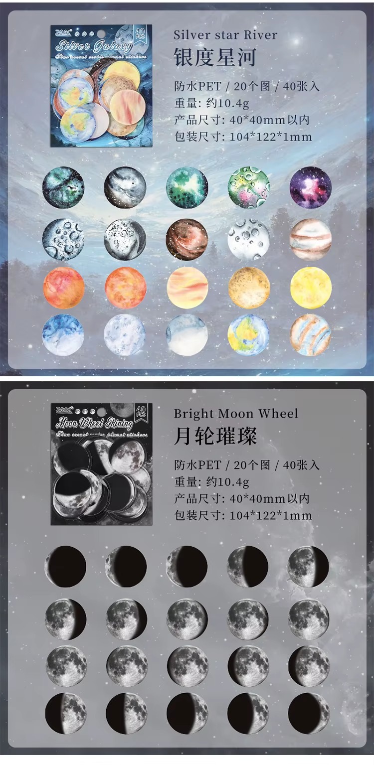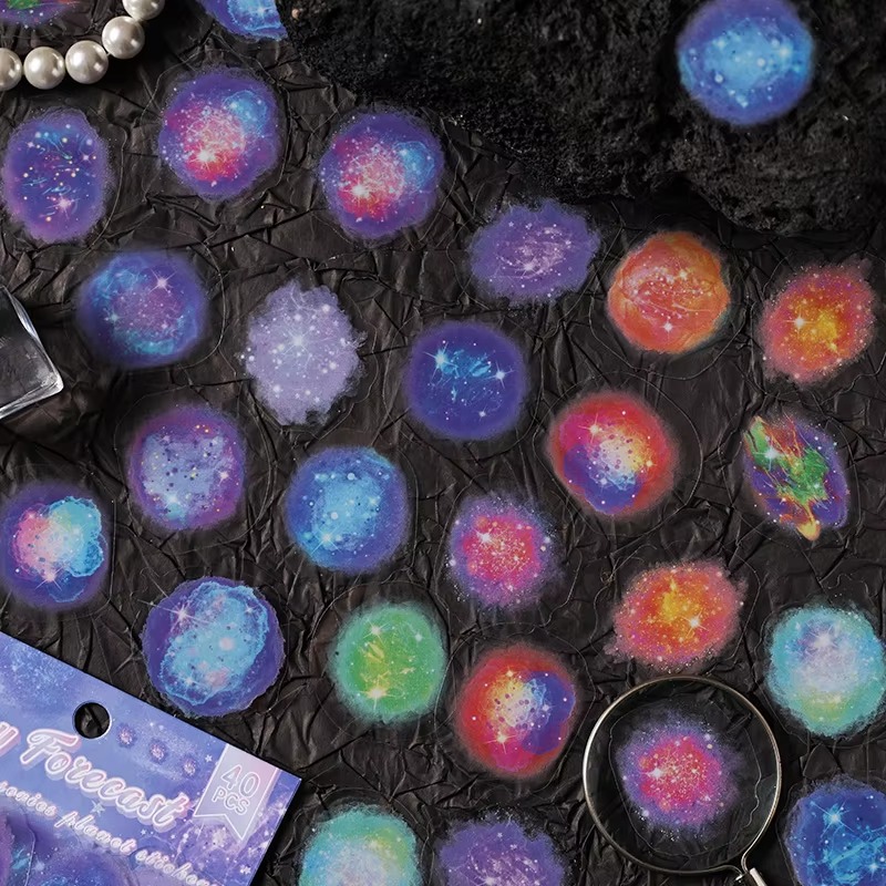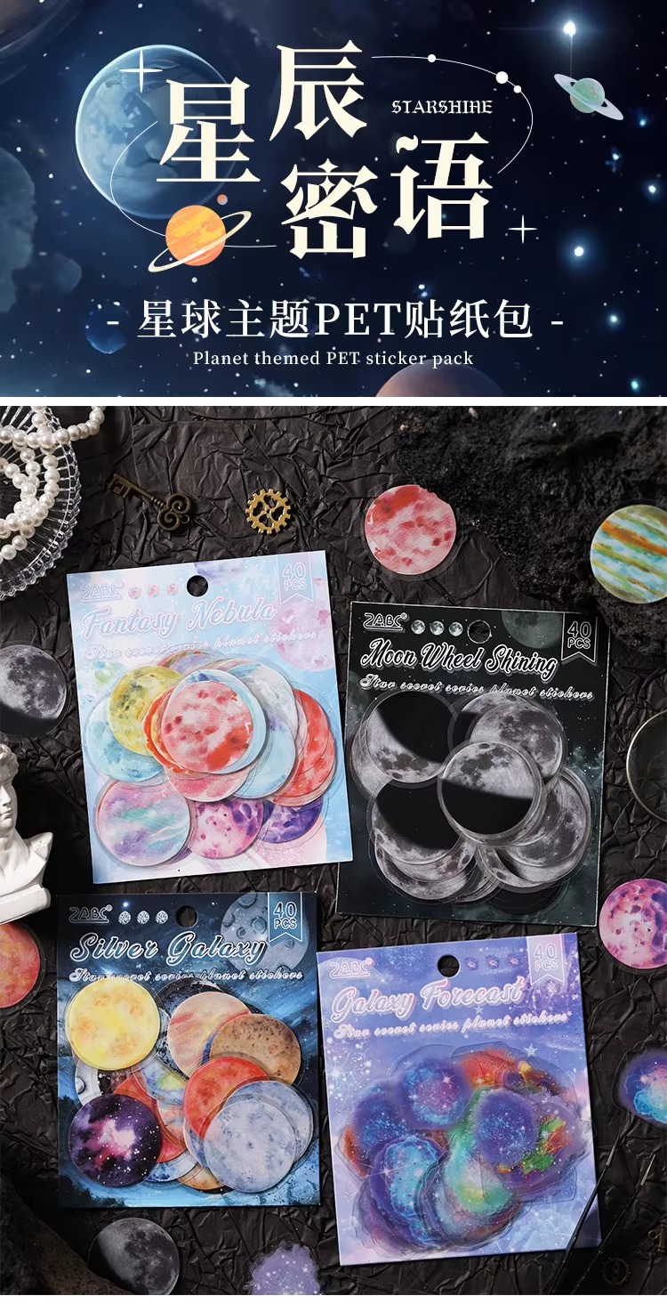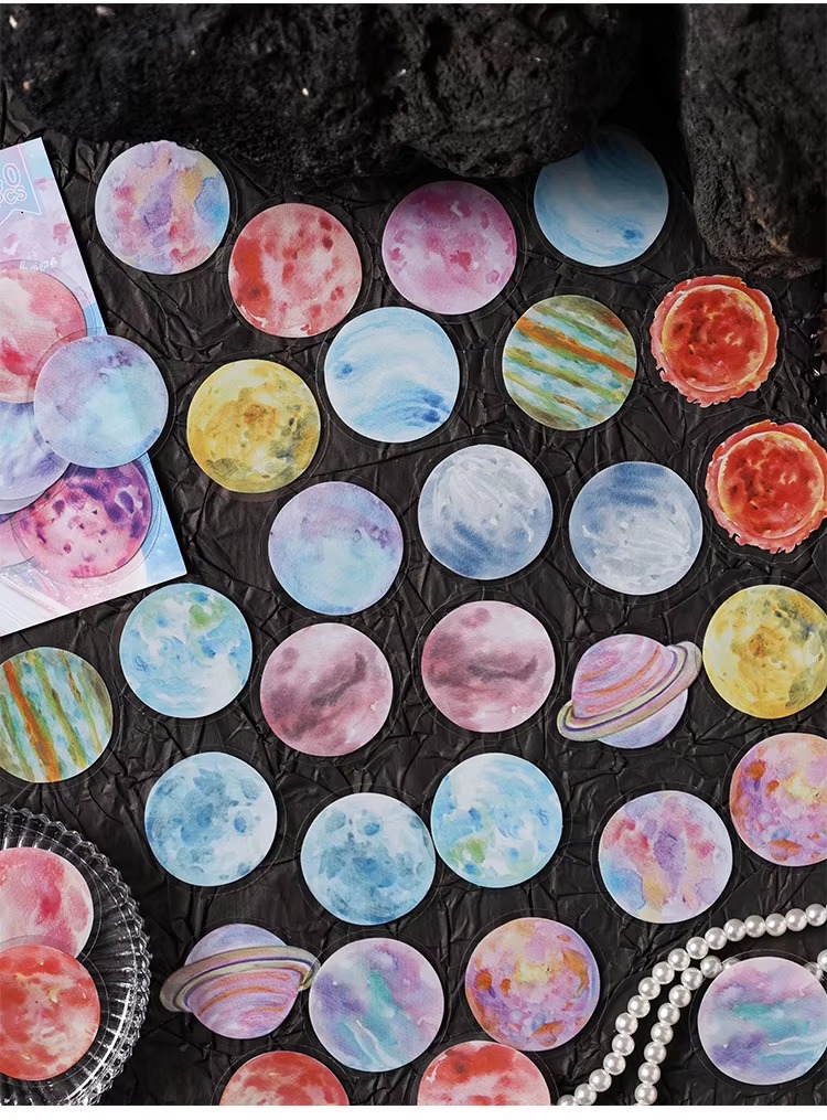 Incluye 40 stickers de hermosos planetas y galaxias