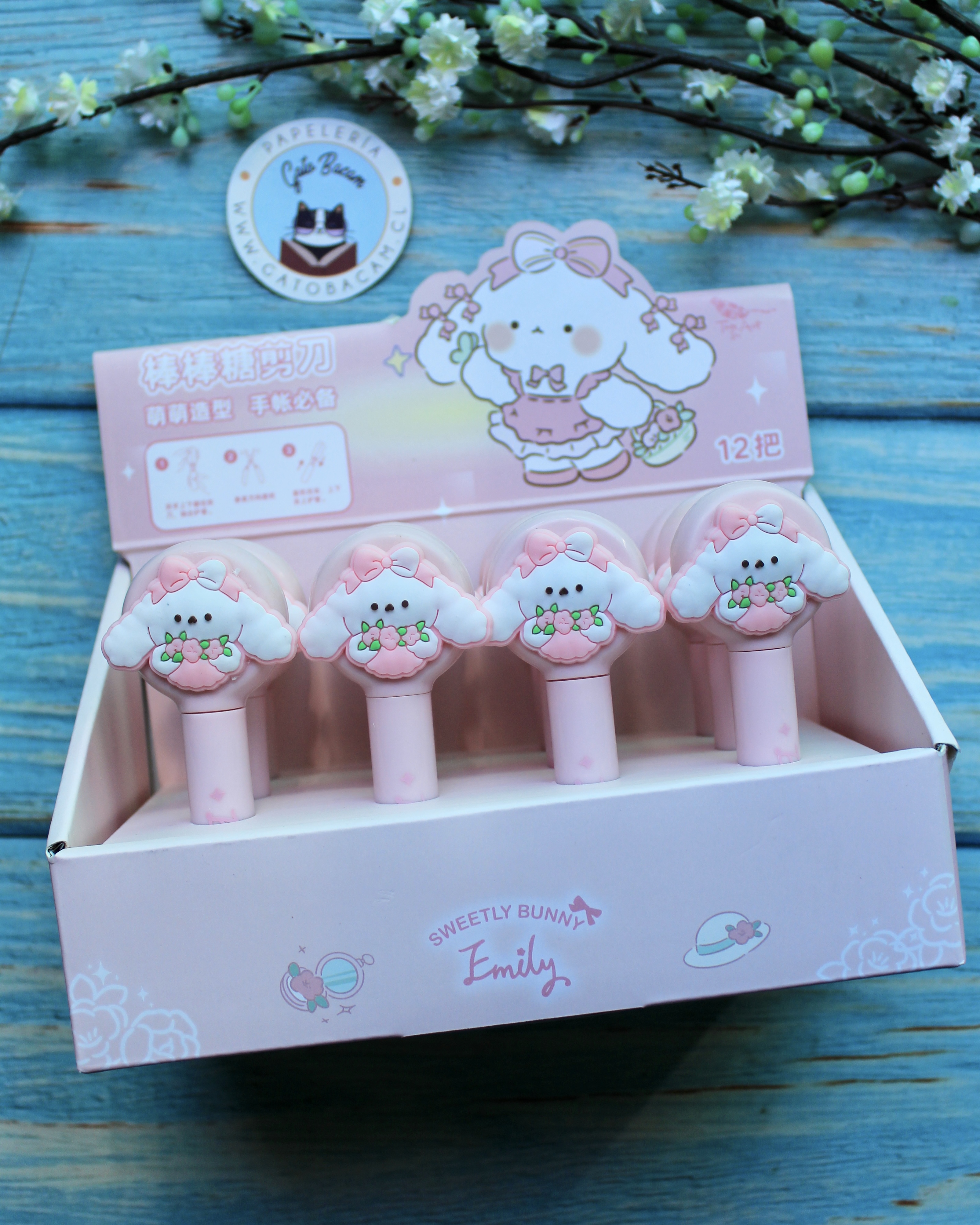 Bella tijera tipo lapiz, en diseño kawaii, ideal para llevar en tu cartera o estuche.-